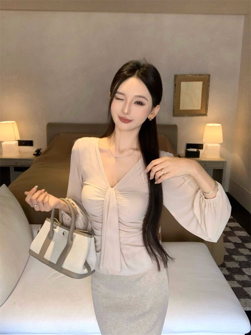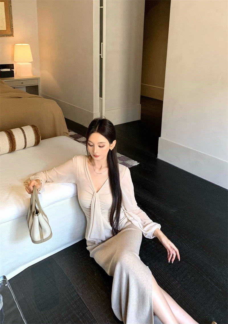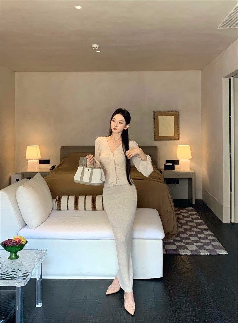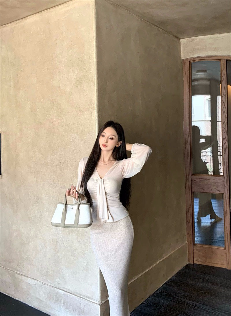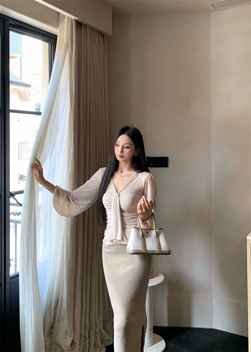 25Nov. 溫柔褶皺V領純欲天花板上衣 針織裙