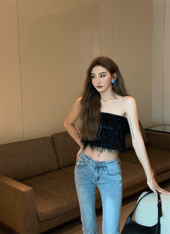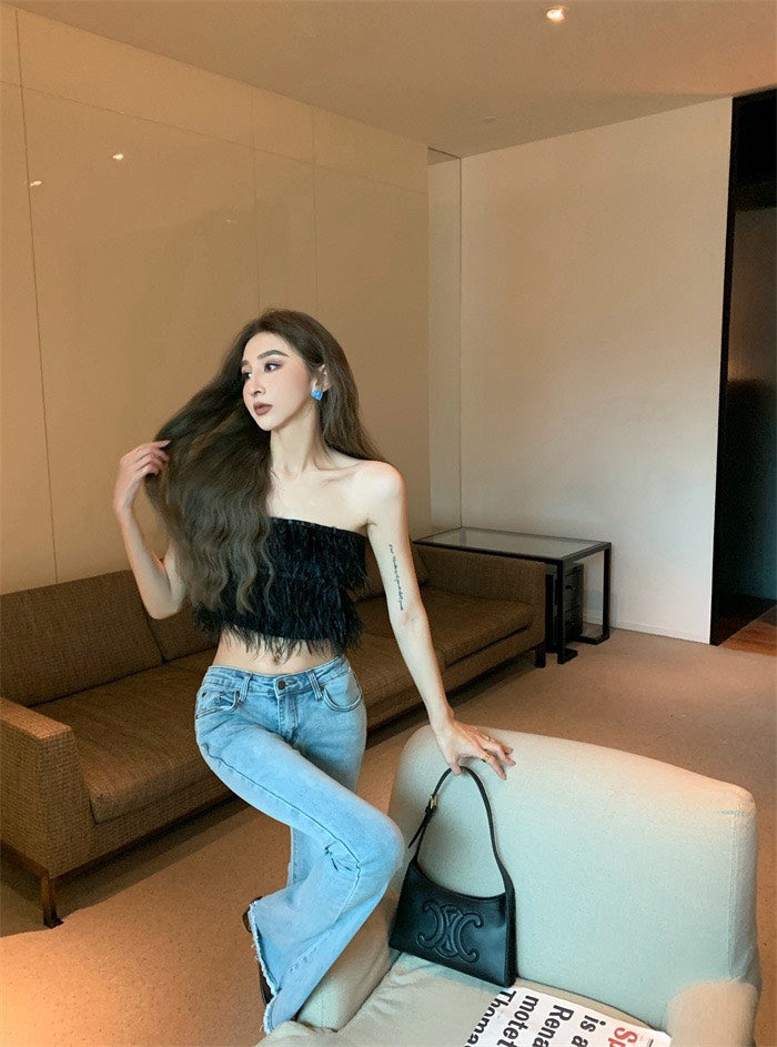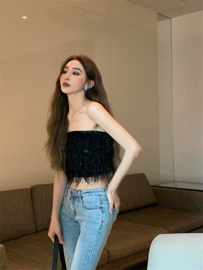 25Nov. 辣妹流蘇短款抹胸上衣 白/黑