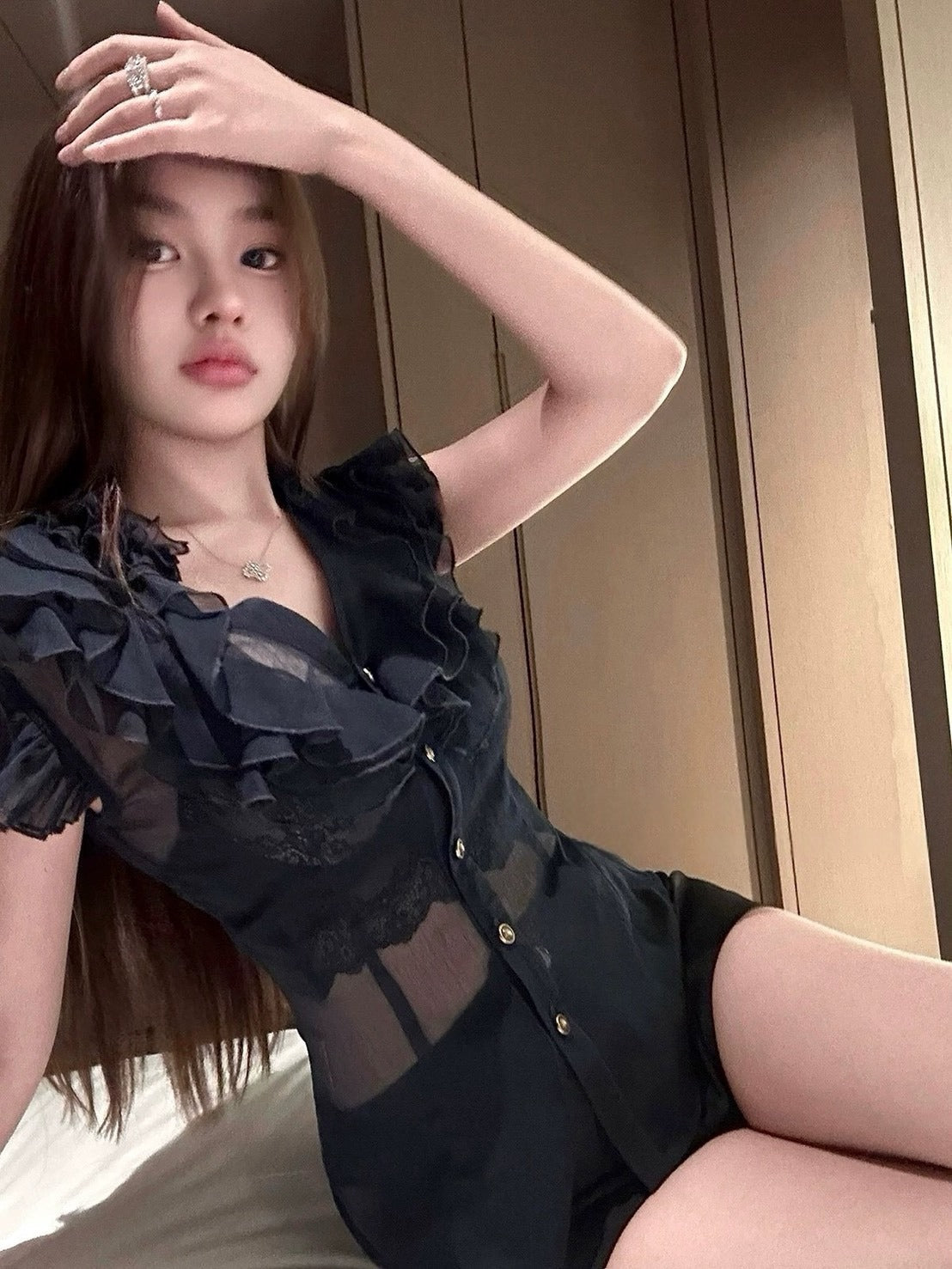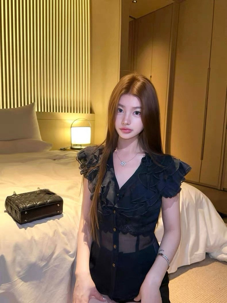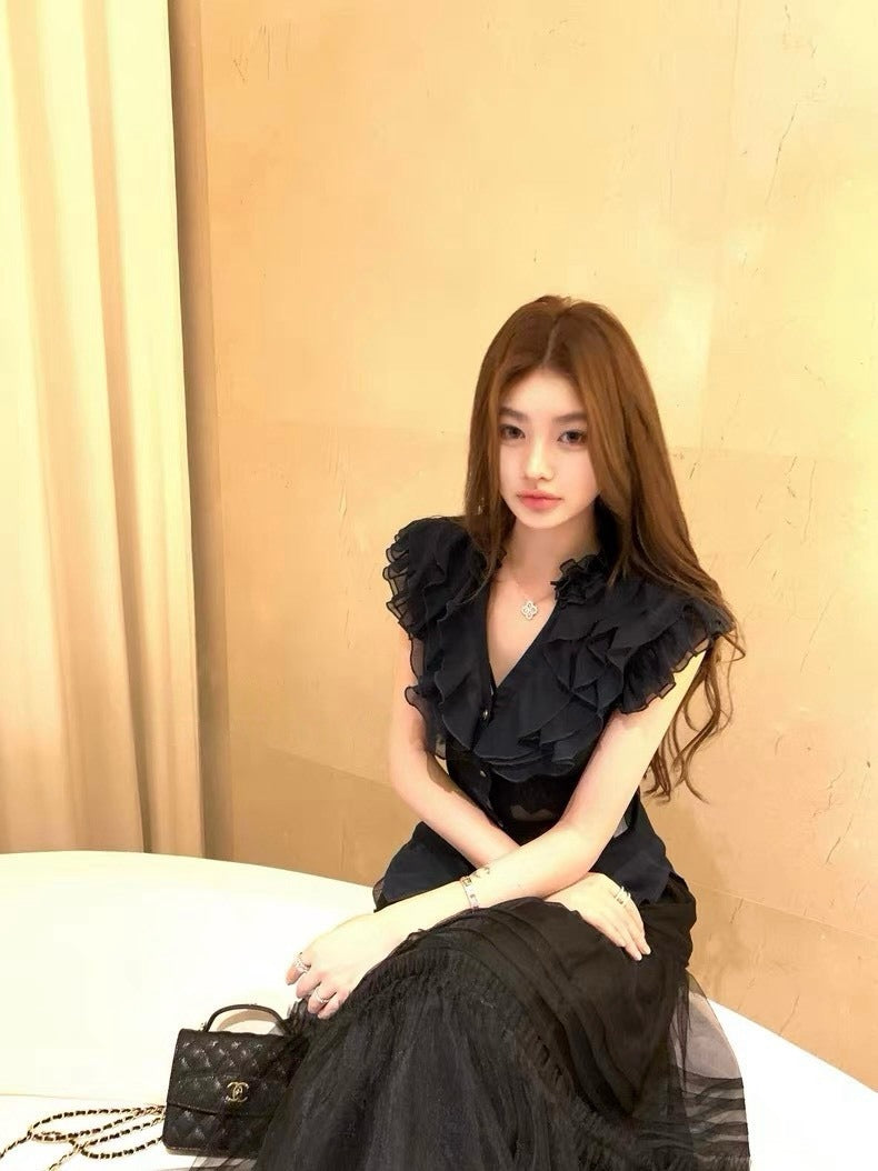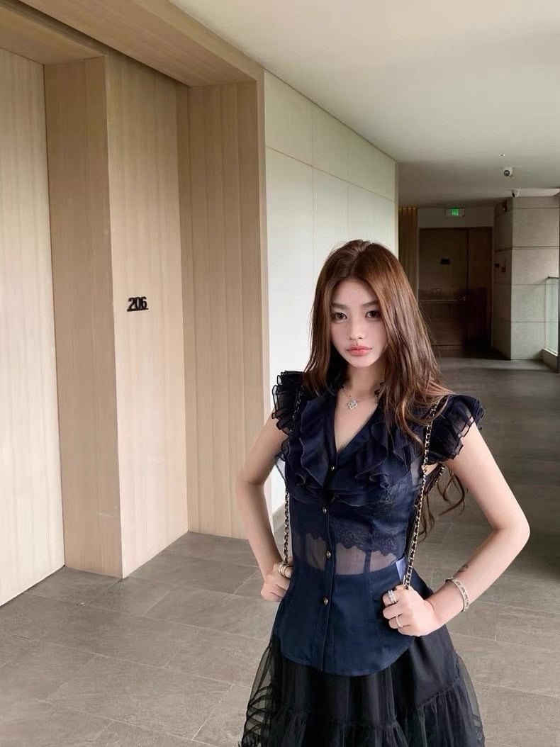 25Oct. 世家赫本法式氣質雪紡透視衫 藍
