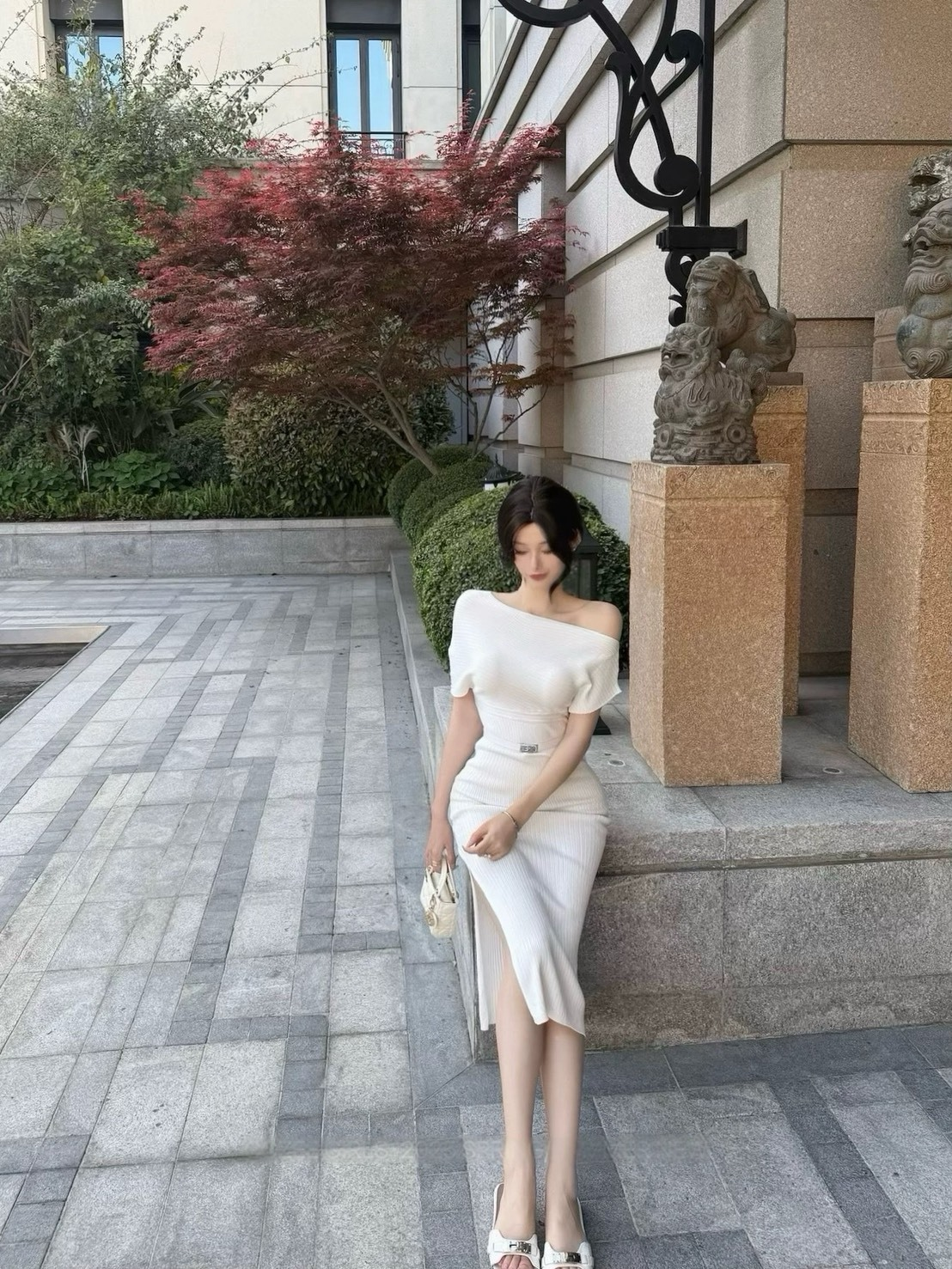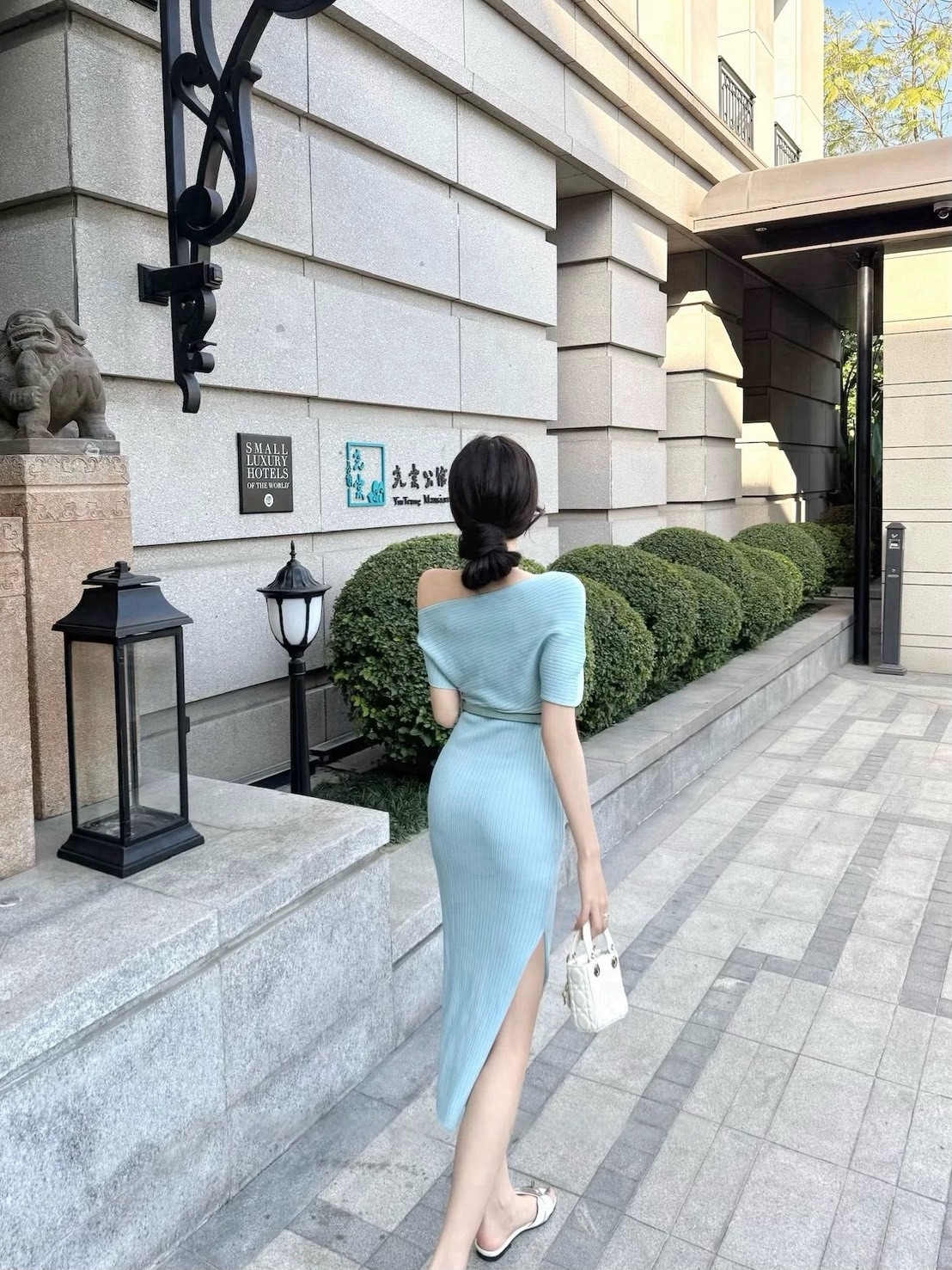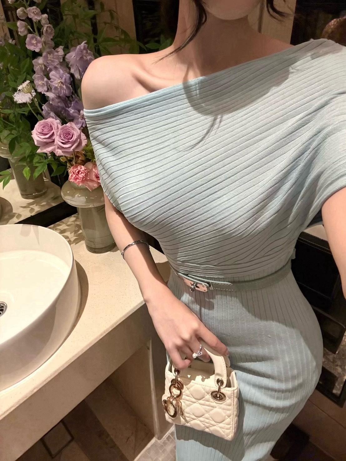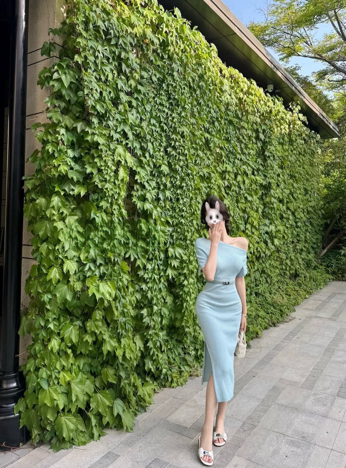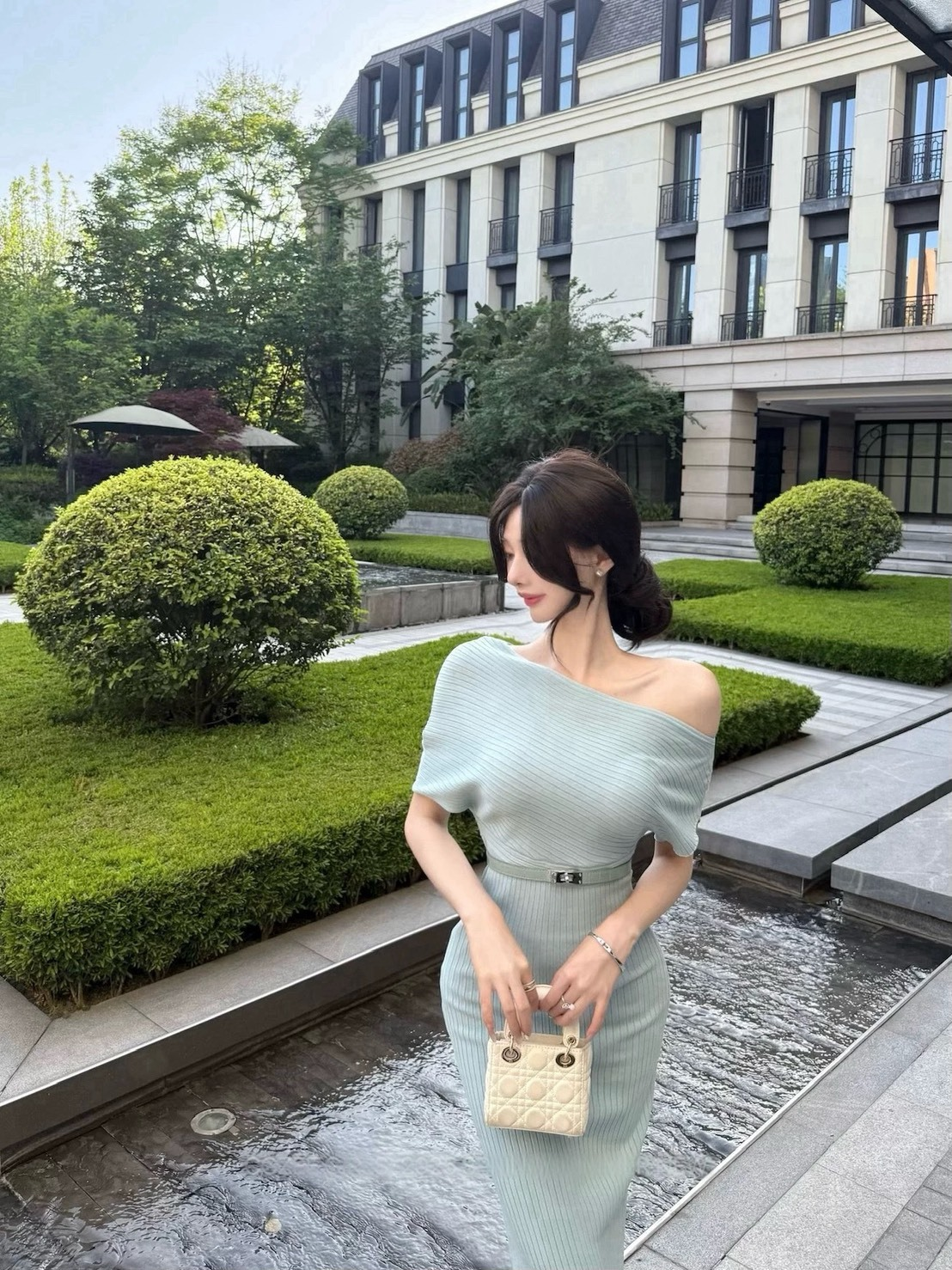 25Oct. 人間夢露氣質收腰法式紙片裙 湖水綠/白