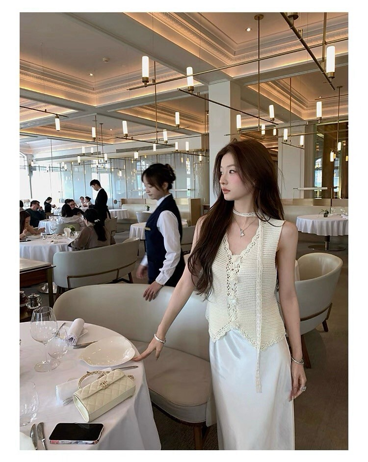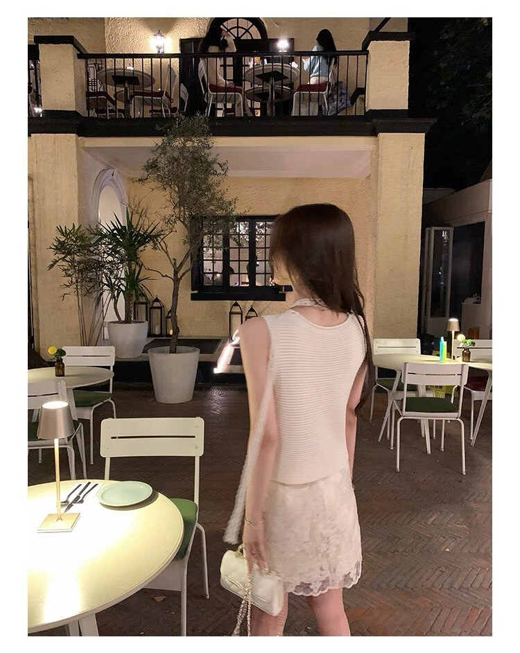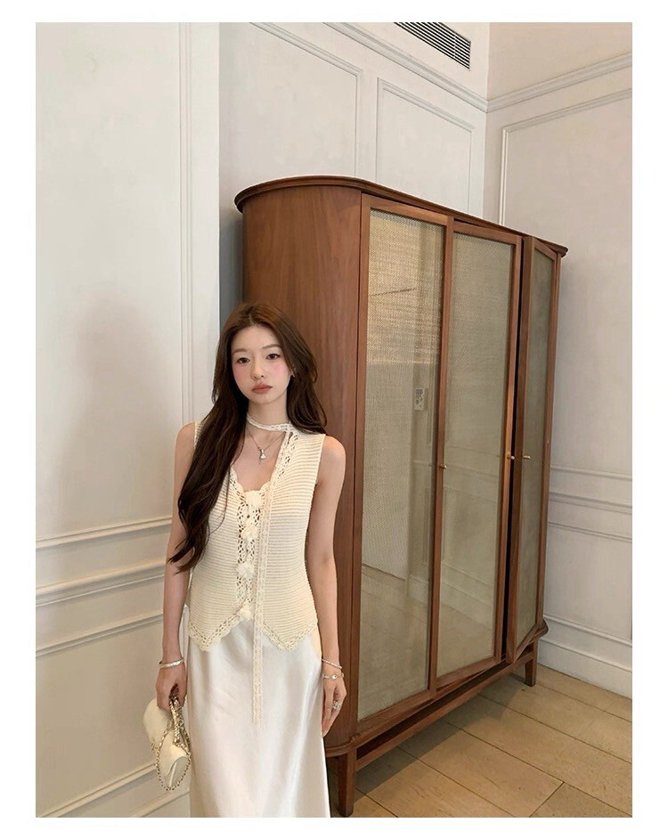 25Oct. 回頭率密碼韓系薄款針織飄帶背心 杏