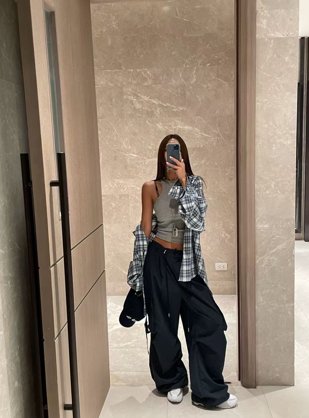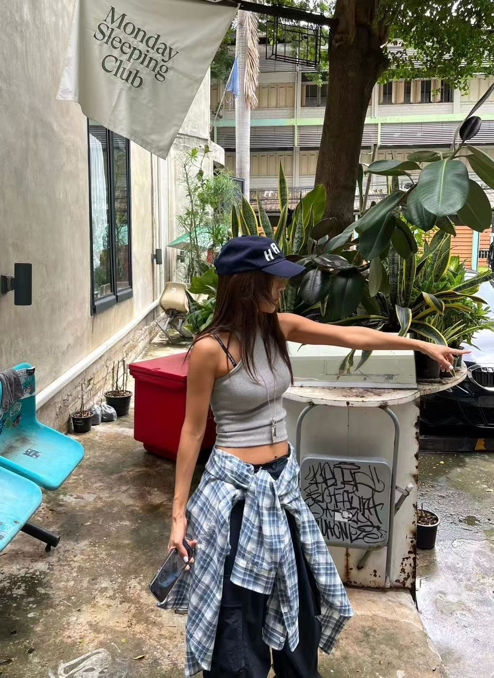 25Oct. 寬鬆休閒通勤格紋襯衫 藍/黑灰