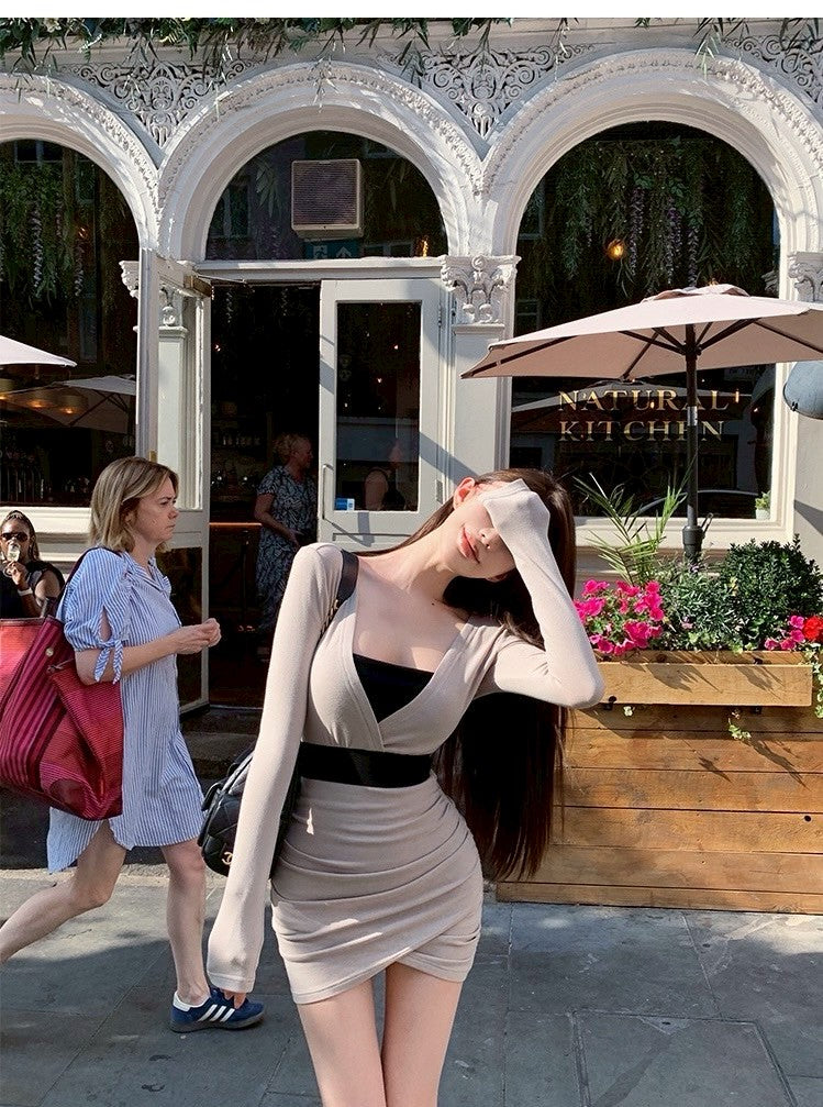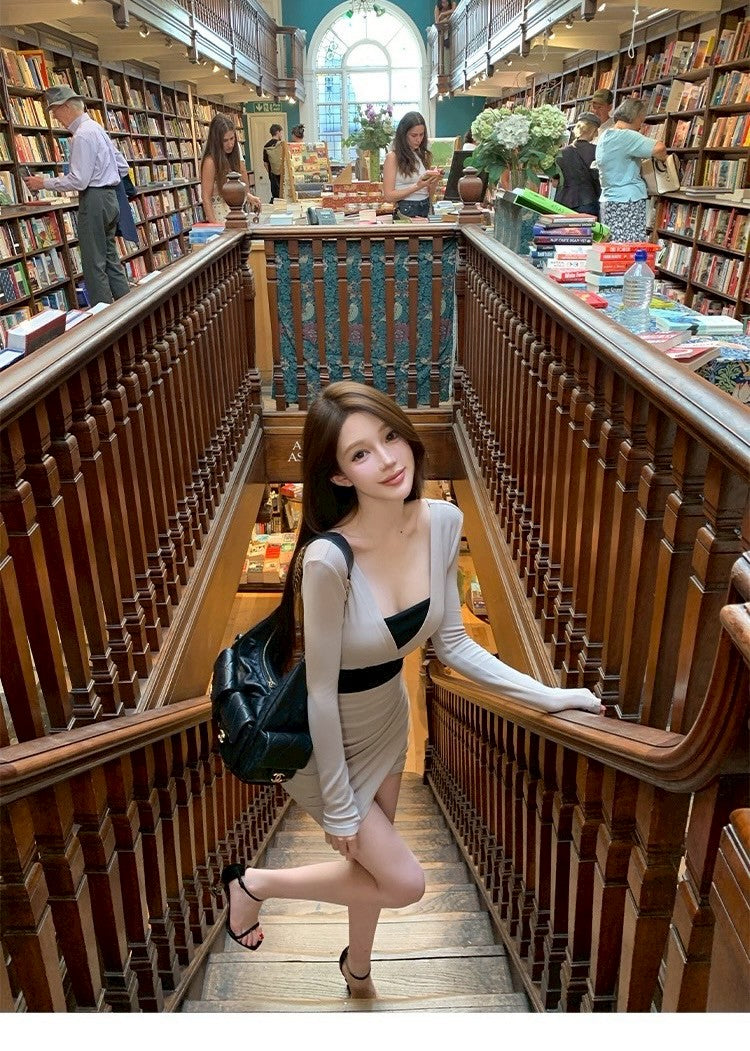 25Oct. 層次美學氣質撞色收腰連身裙