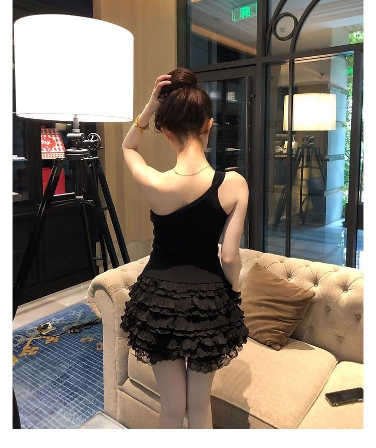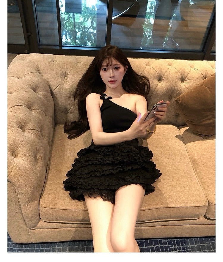 25Oct. 撩係甜心不對稱單肩蝴蝶結針織背心 黑