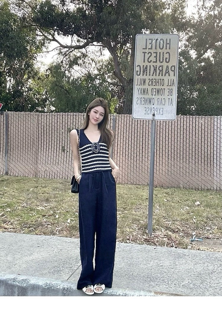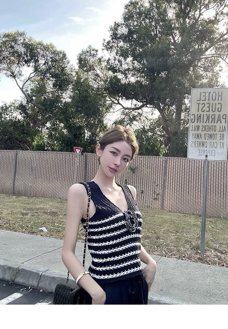 25Oct. 春和織雨 冰特紗線手鉤花針織背心 白/藏藍
