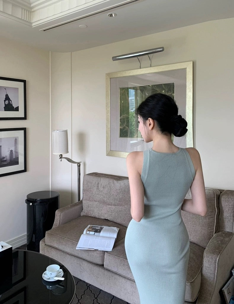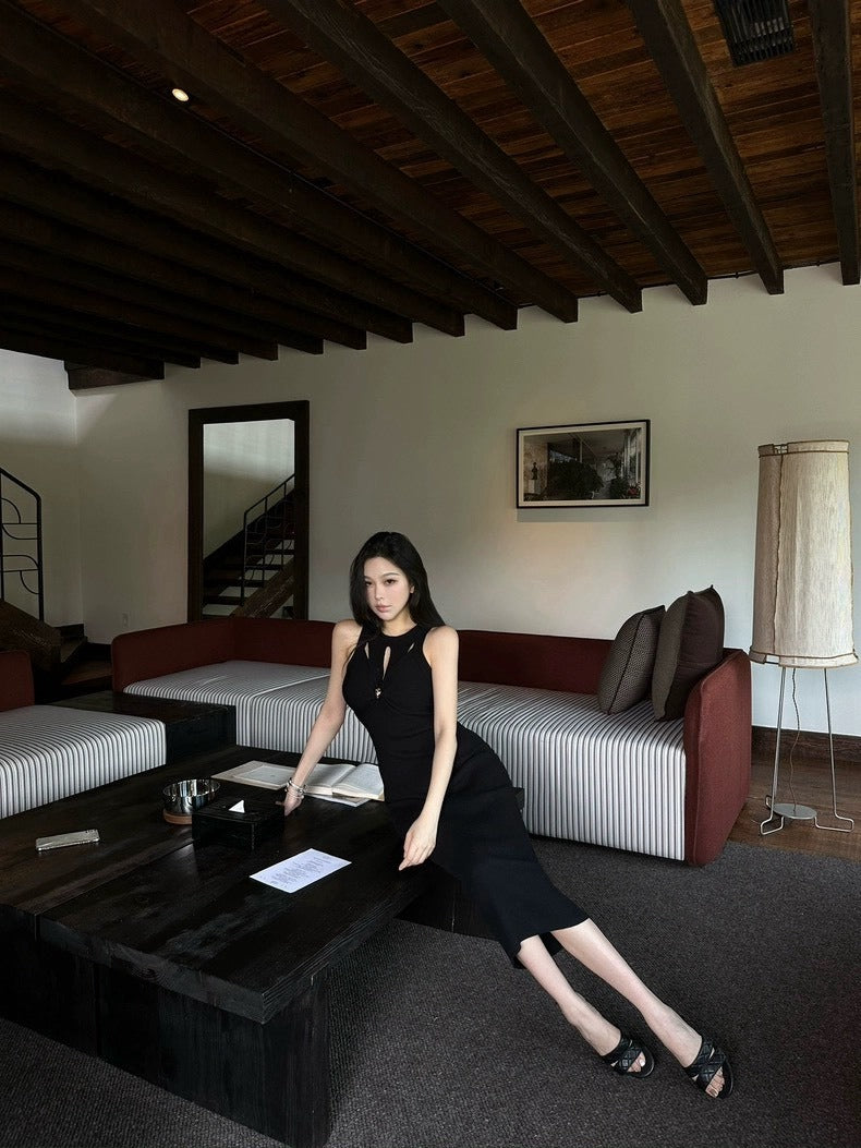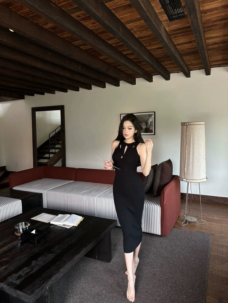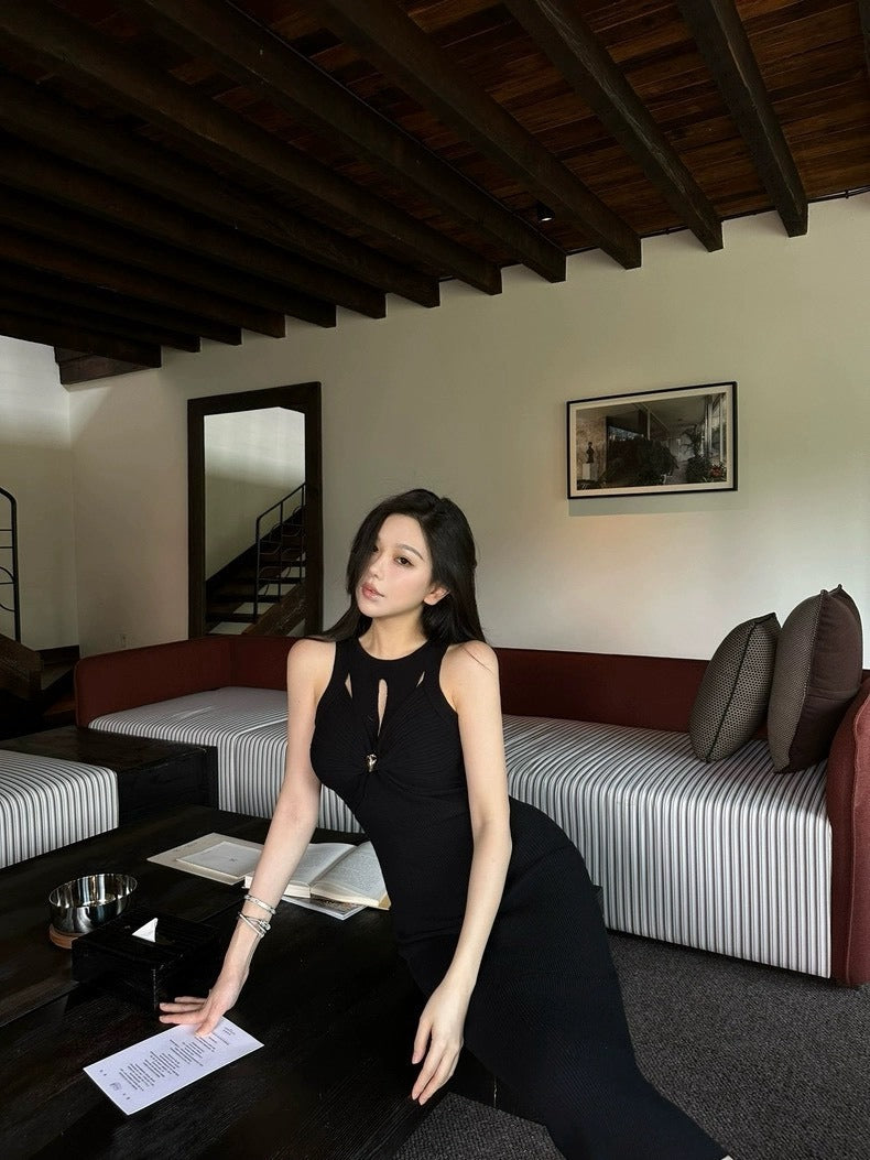 25Oct. 曲線主義-小巴色系 金釦縷空針織連身裙 湖水藍/黑
