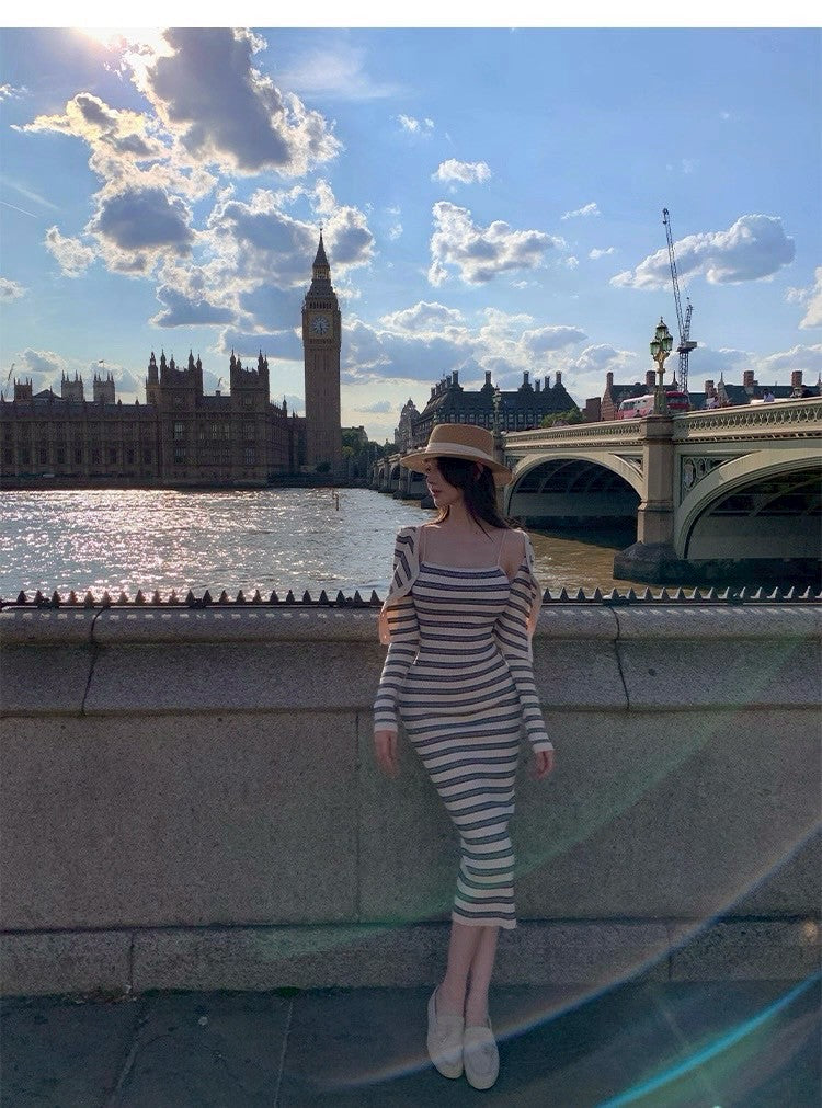 25Oct. 條紋公式溫柔高彈針織連身裙套裝