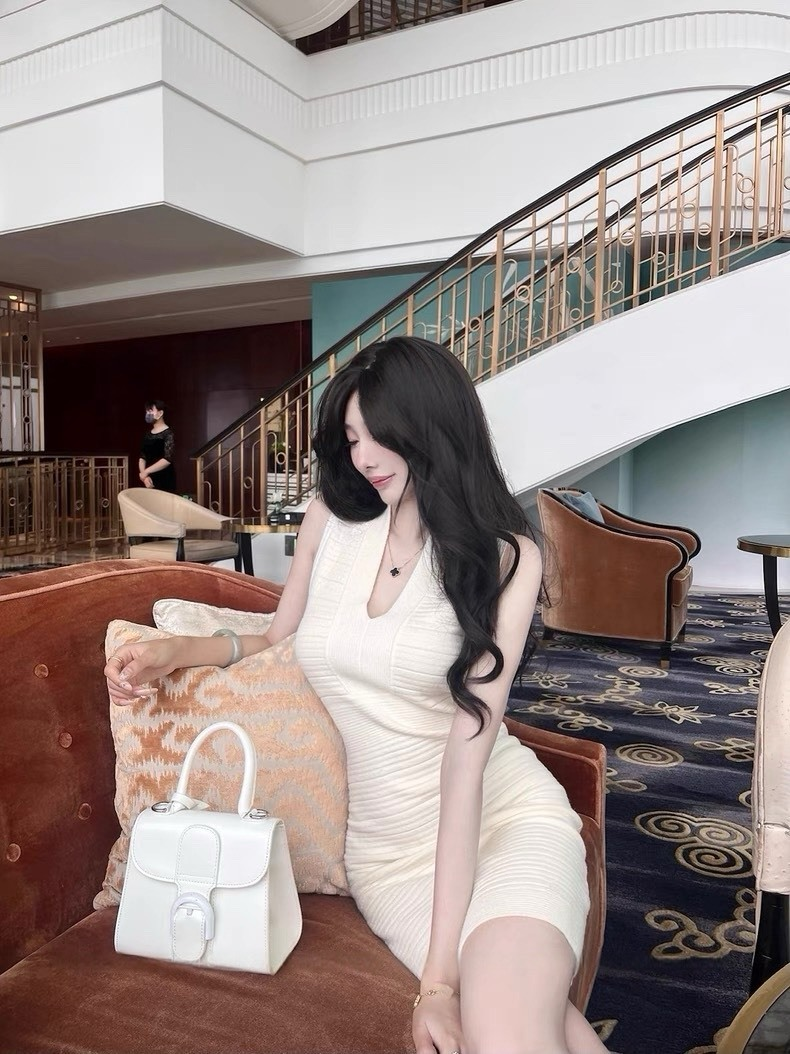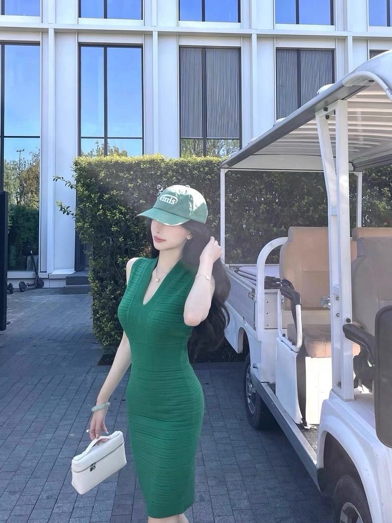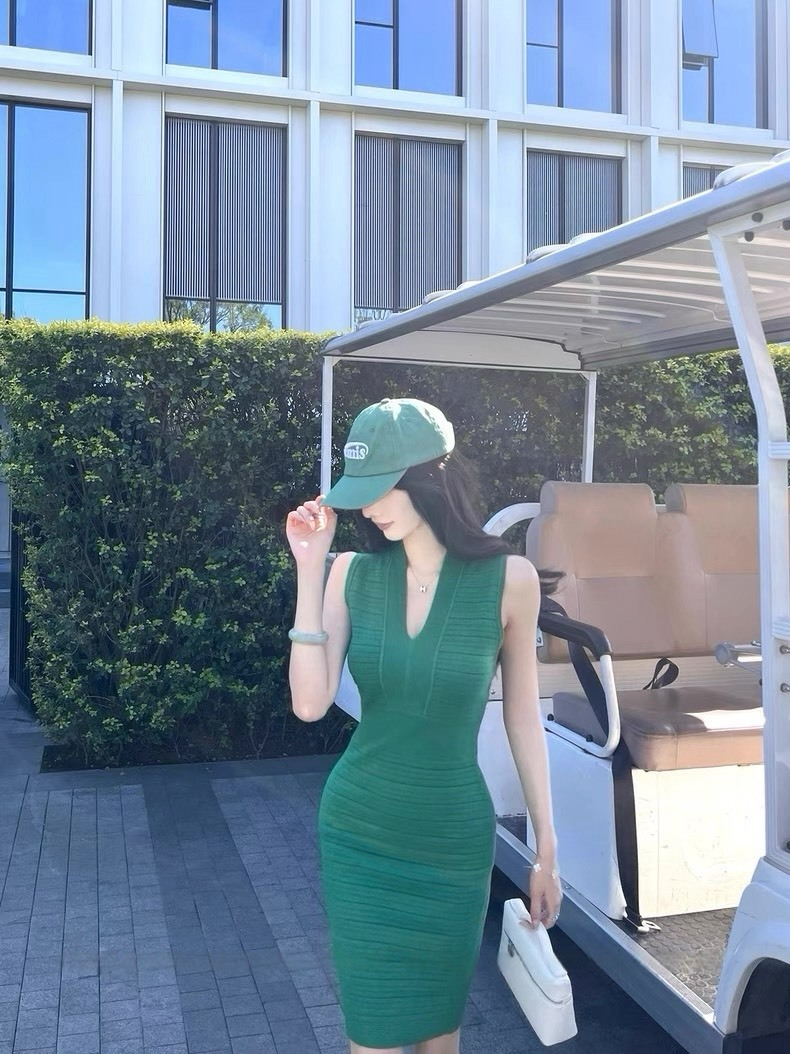 25Oct. 氣質歐膩針織V領肌理紋連身裙 祖母綠/氣質白