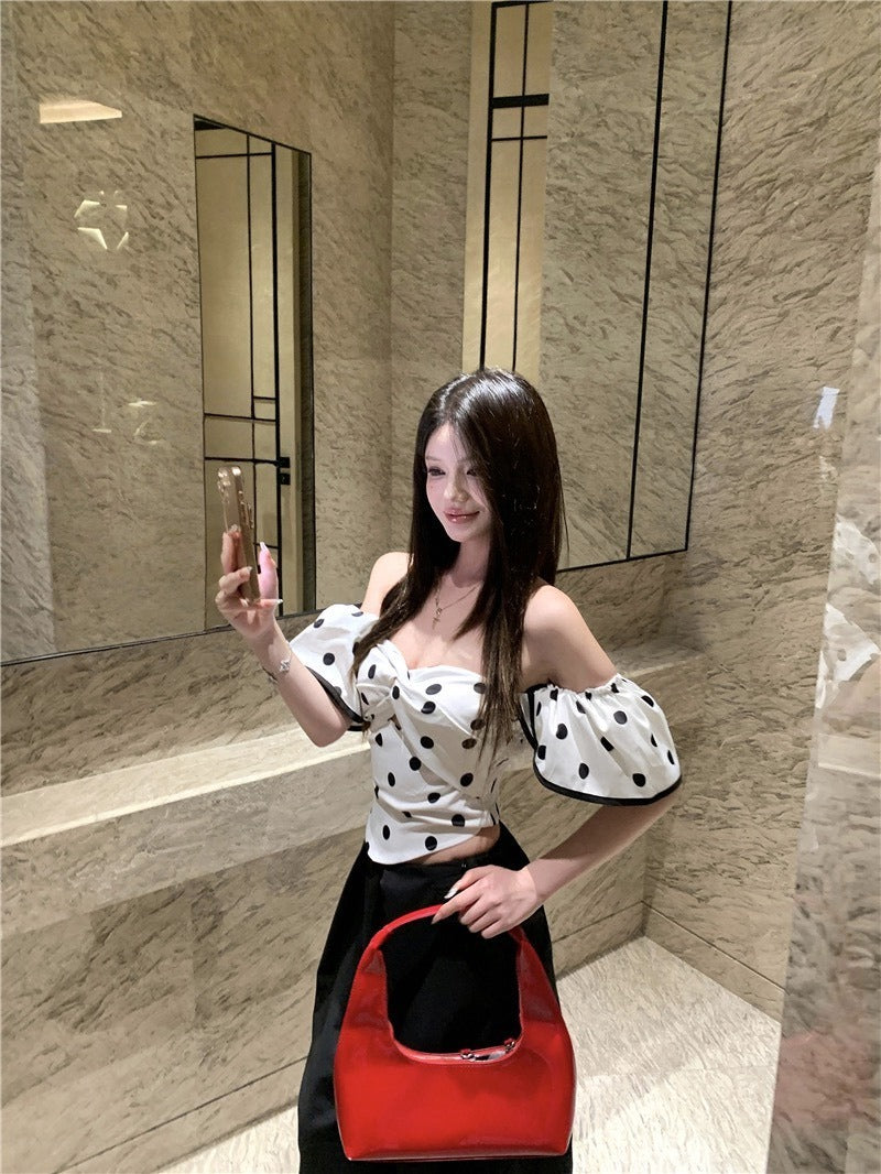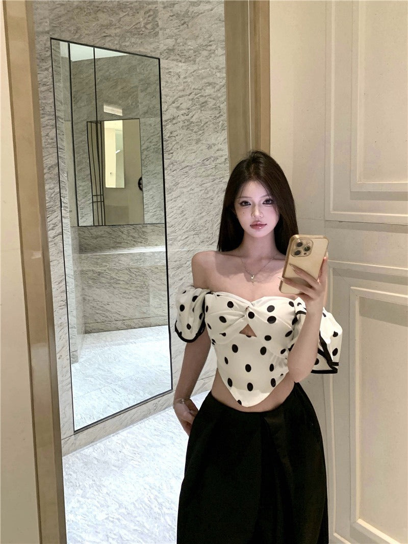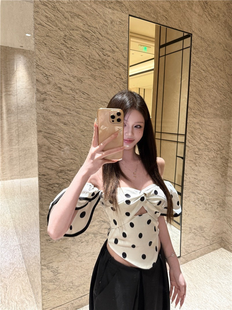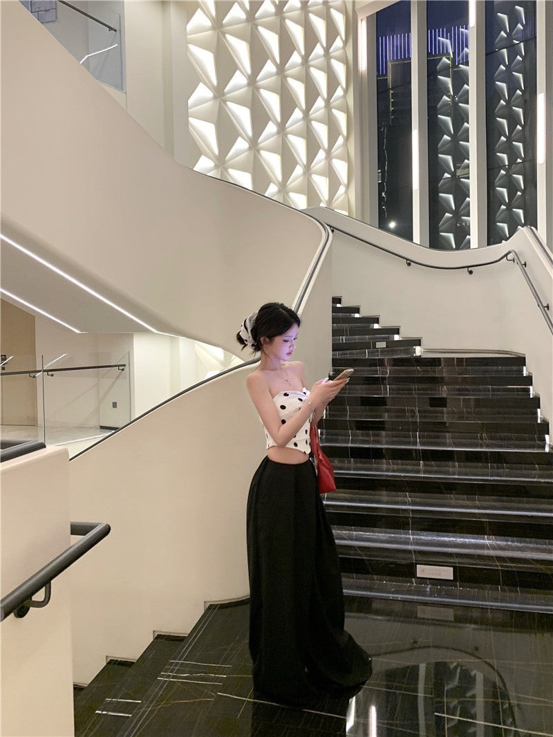 25Oct. 氣質波點多穿可拆抹胸上衣/寬鬆休閒黑色闊腿褲
