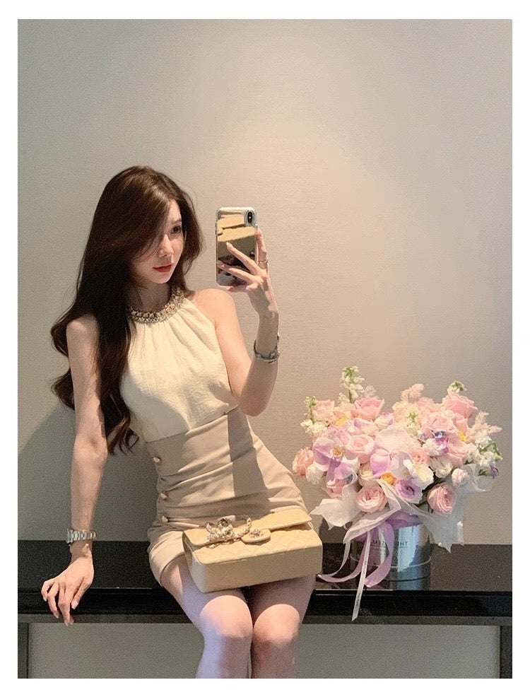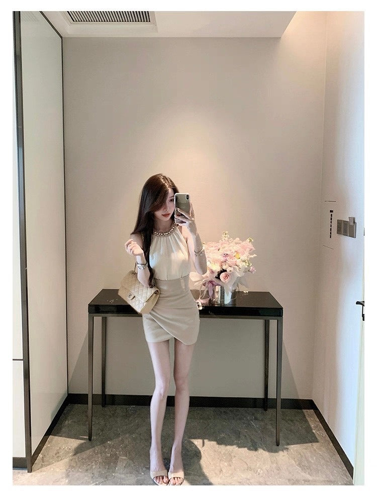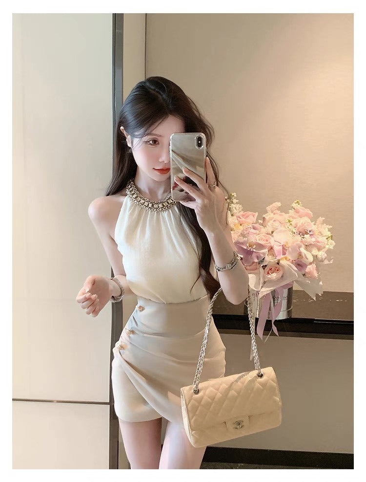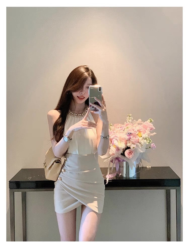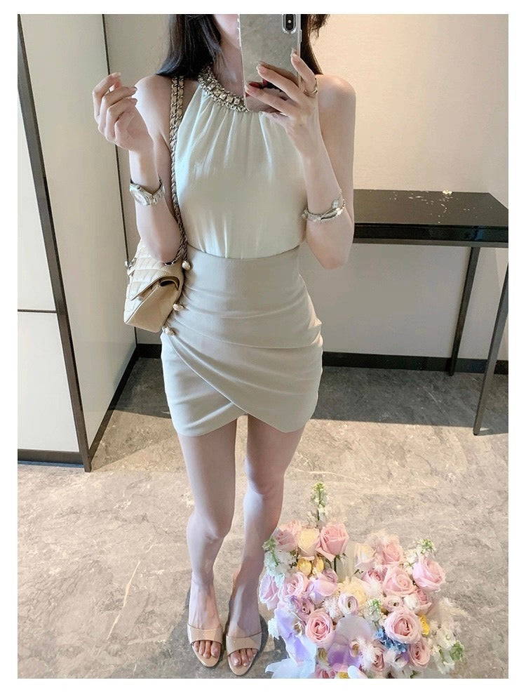 25Oct. 氣質金秘書法則鑽黏雪紡上衣高腰交錯半身裙套裝