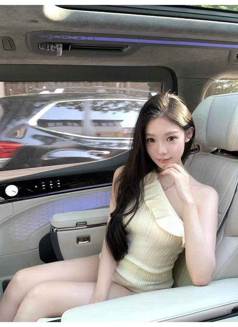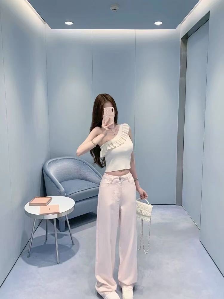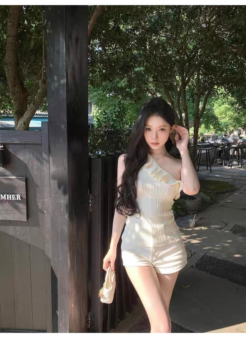 25Oct. 浪漫至上 心動荷葉斜肩針織上衣 米白
