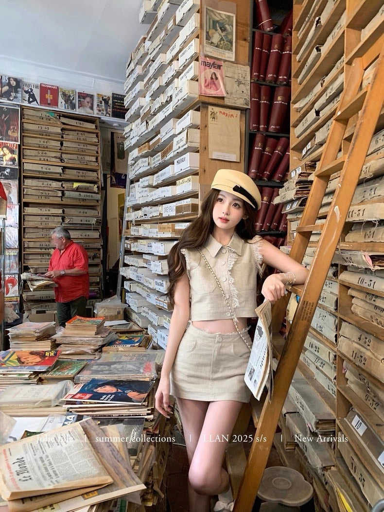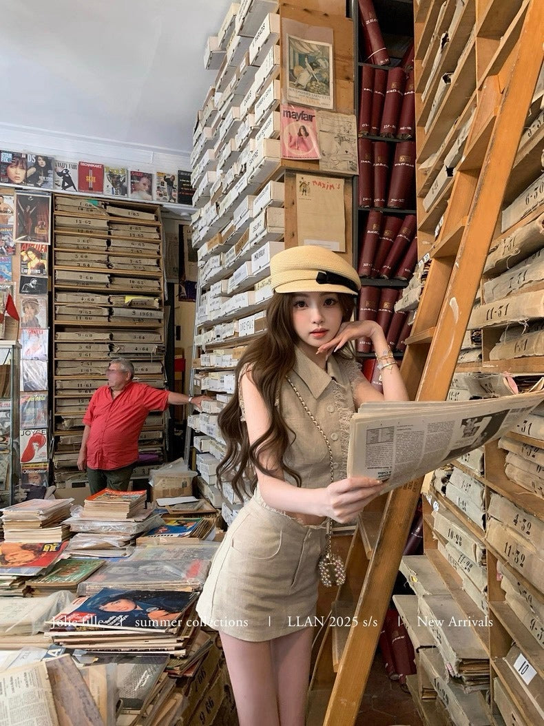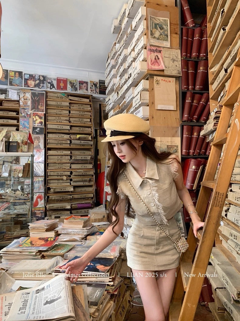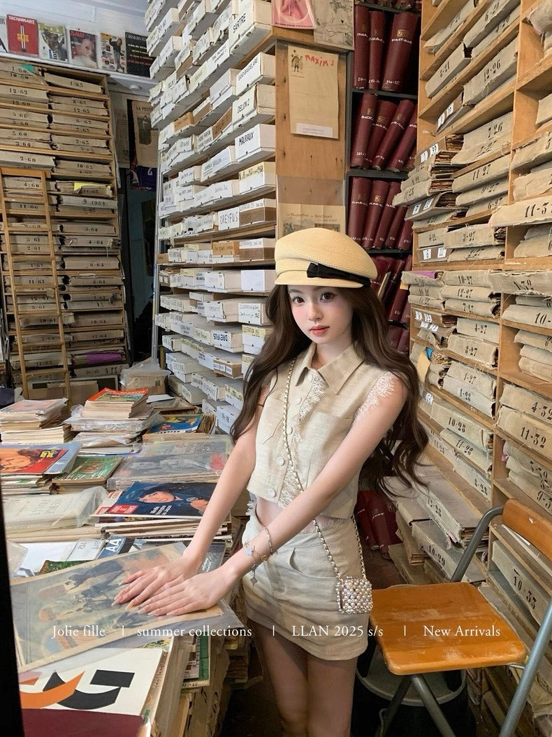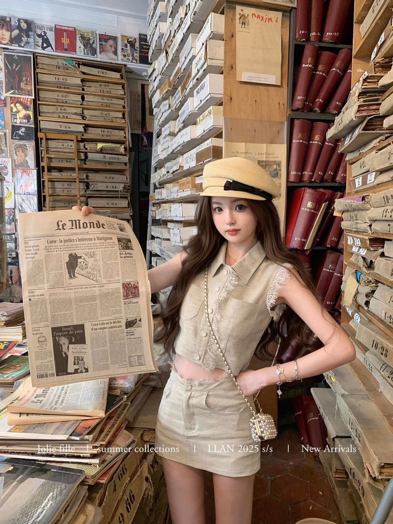 25Oct. 甜心香香VTG 復古蕾絲拼接亞麻套裝 亞麻原色