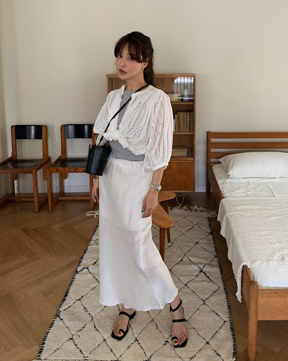 25Oct. 甜美縷空燈籠袖圓領排扣上衣