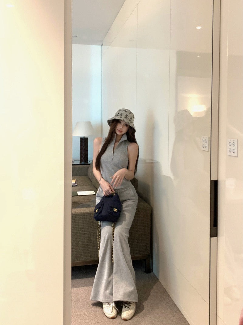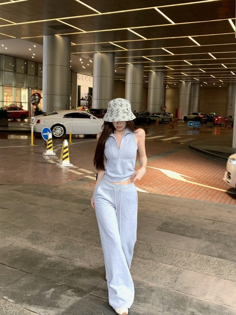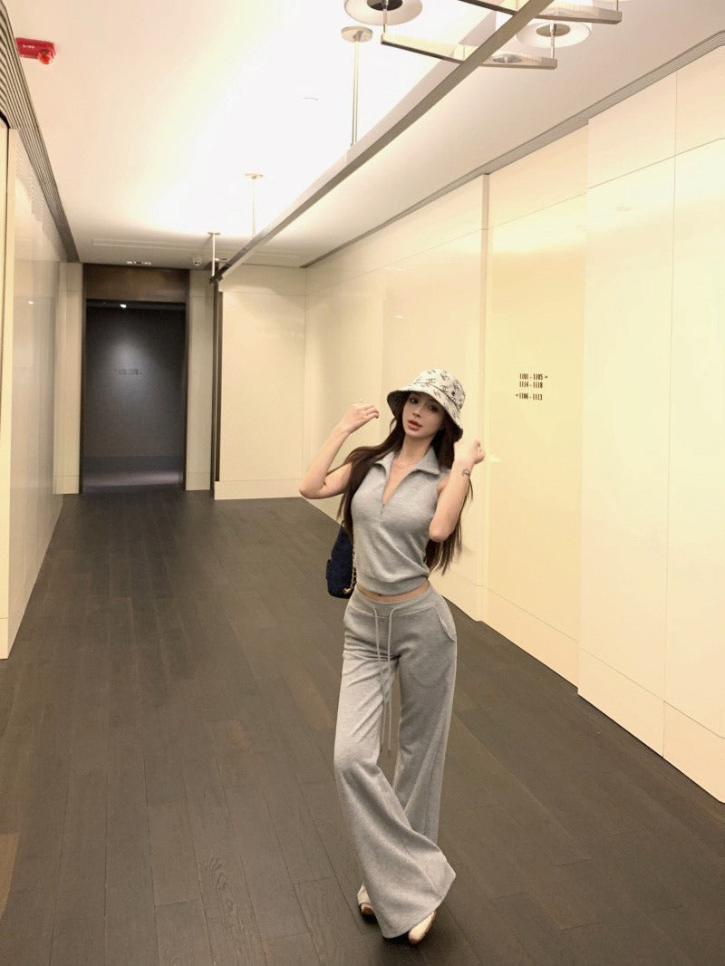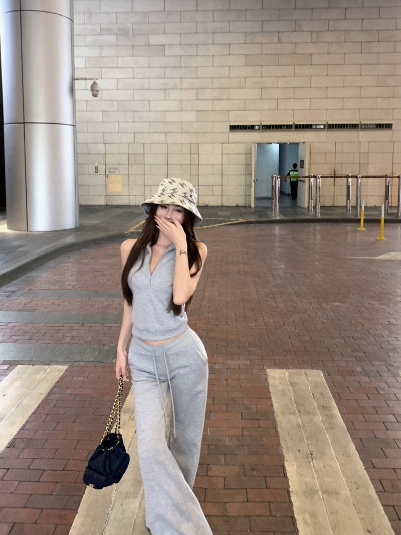 25Oct. 美式日常空氣棉袖襯立領背心/抽繩休閒褲 灰色