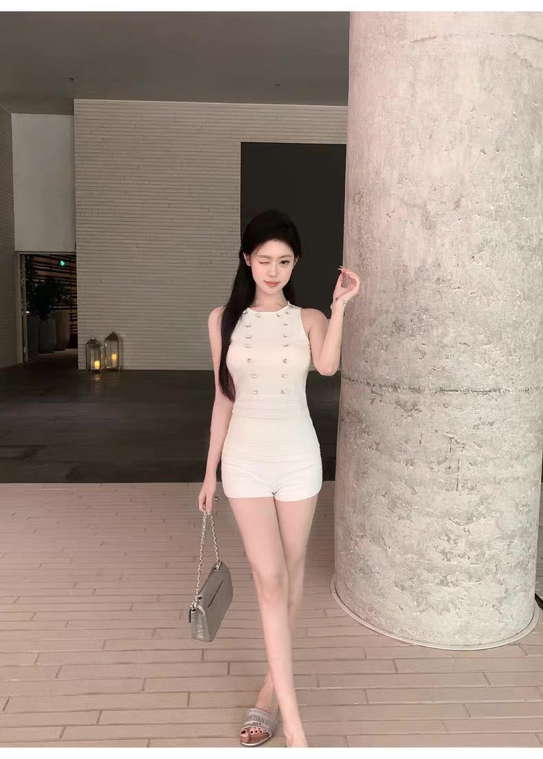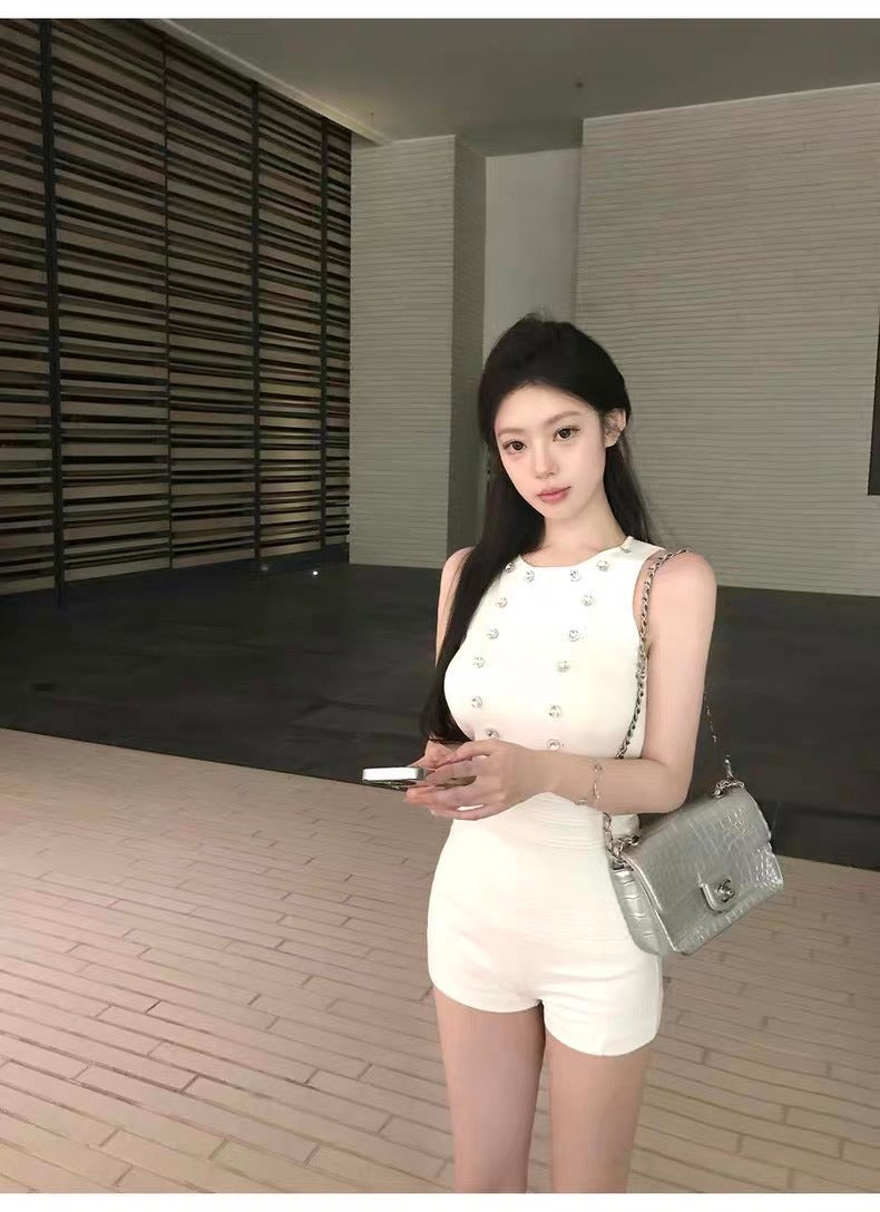 25Oct. 老錢格調 貴氣水鑽圓領針織背心 白
