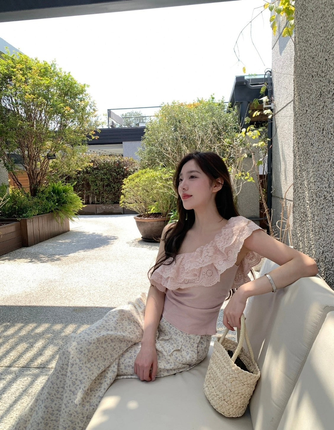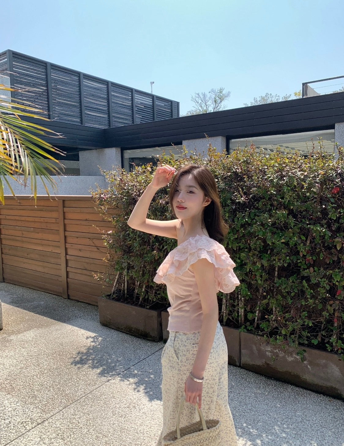 25Oct. 蕾絲布朗 嗲系女友蕾絲荷葉單肩上衣 粉