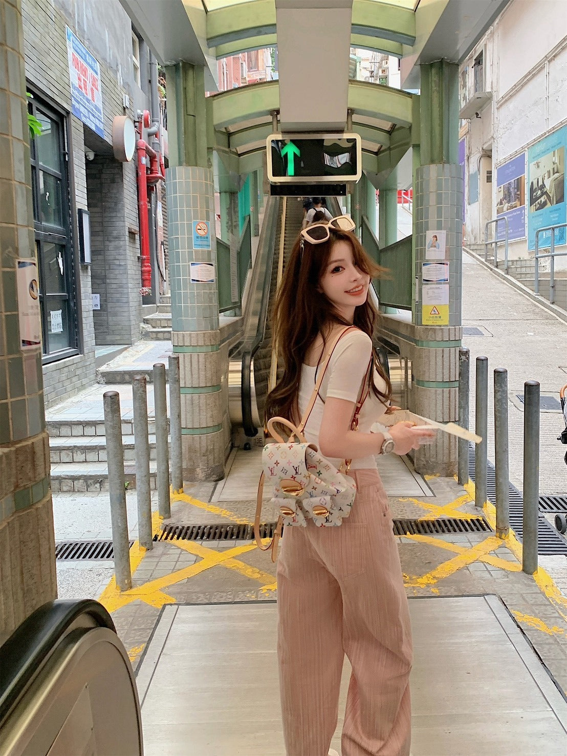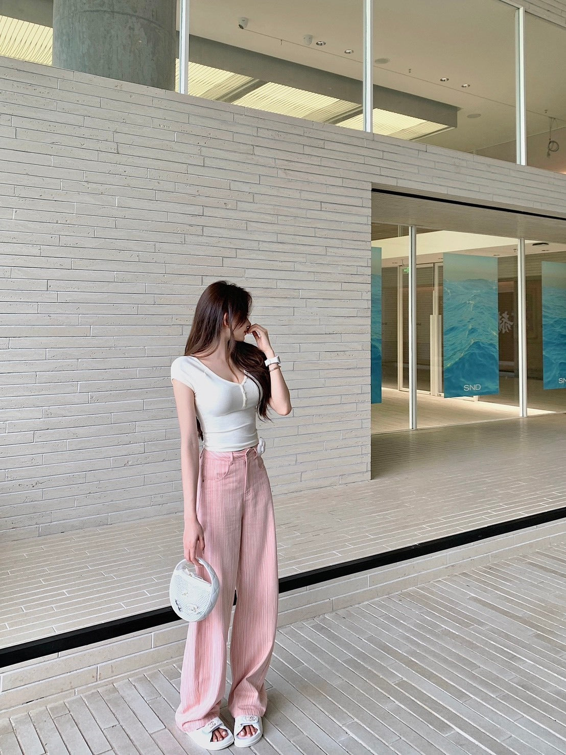 25Oct. 限量櫻花粉柔軟牛仔pink summer肌理彎刀褲