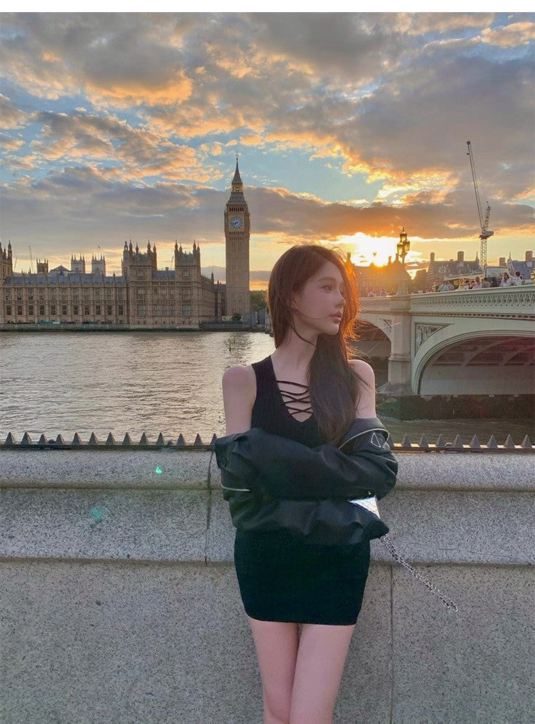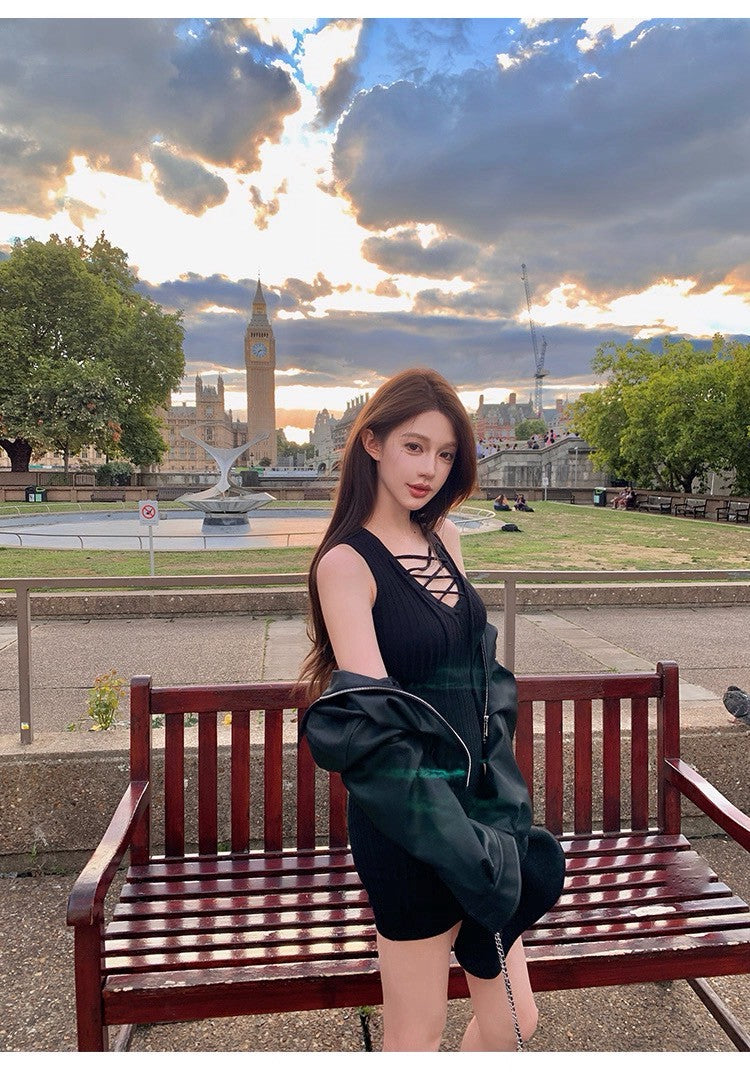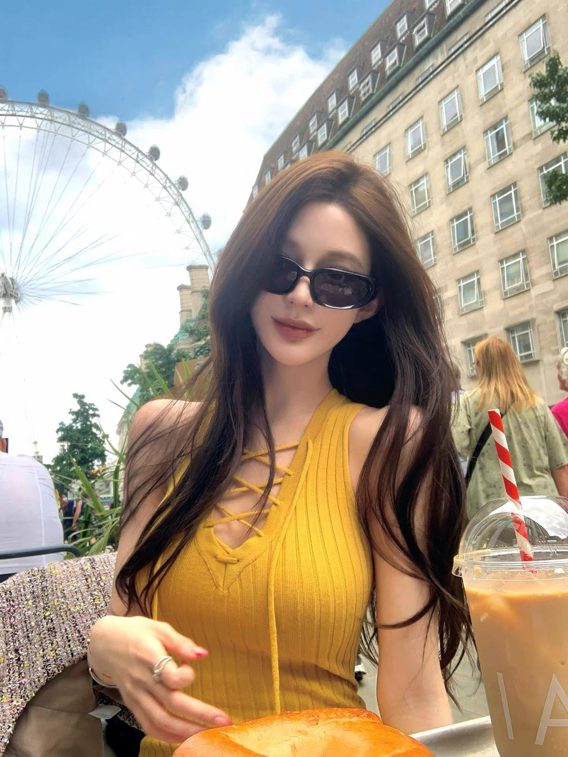 25Oct. 預設性感 綁帶純慾修身針織裙 黃/黑