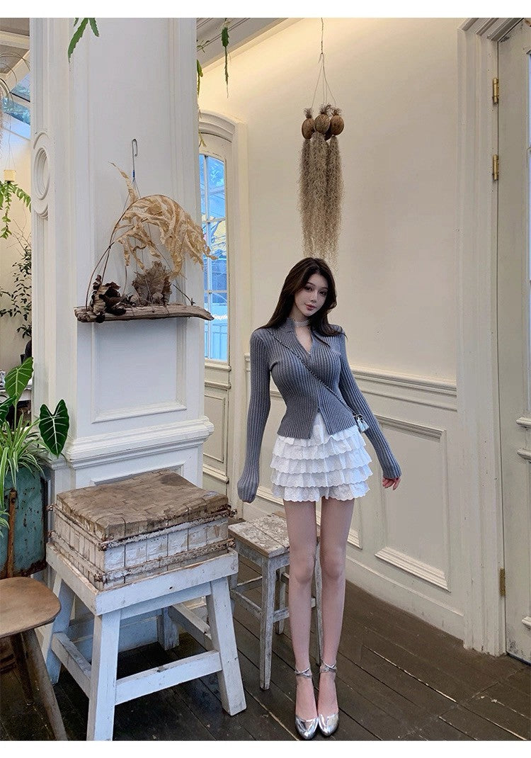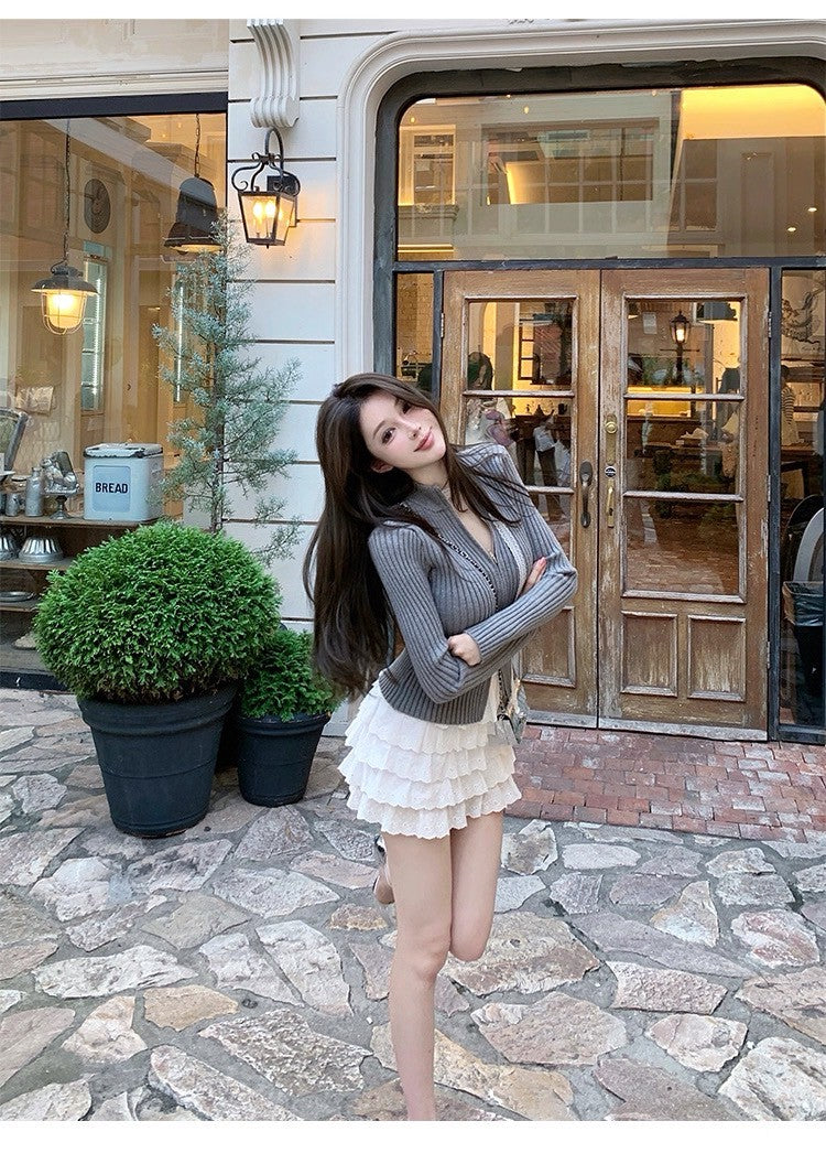 25Oct. 高智灰色立領拉鍊修身針織外套