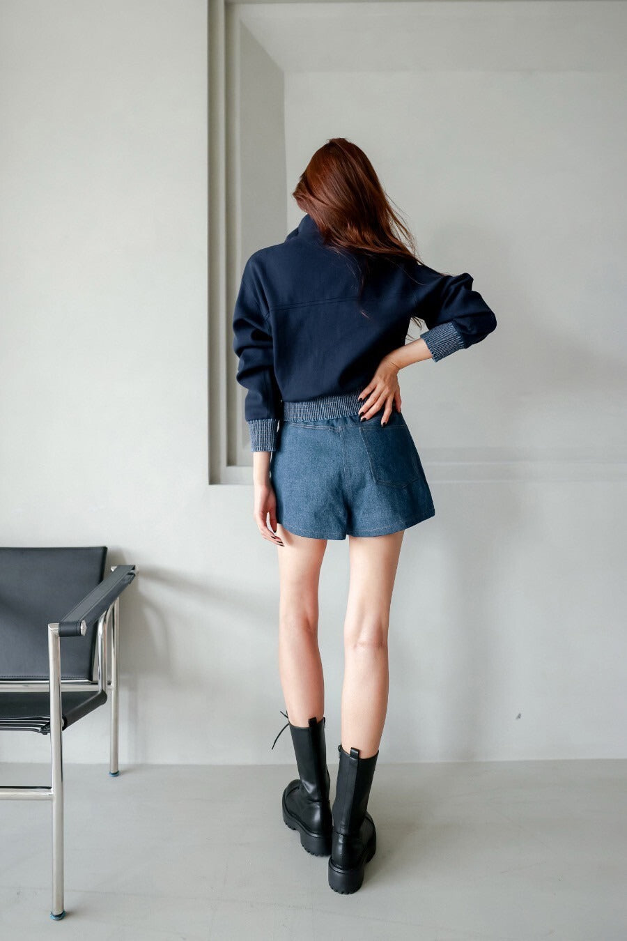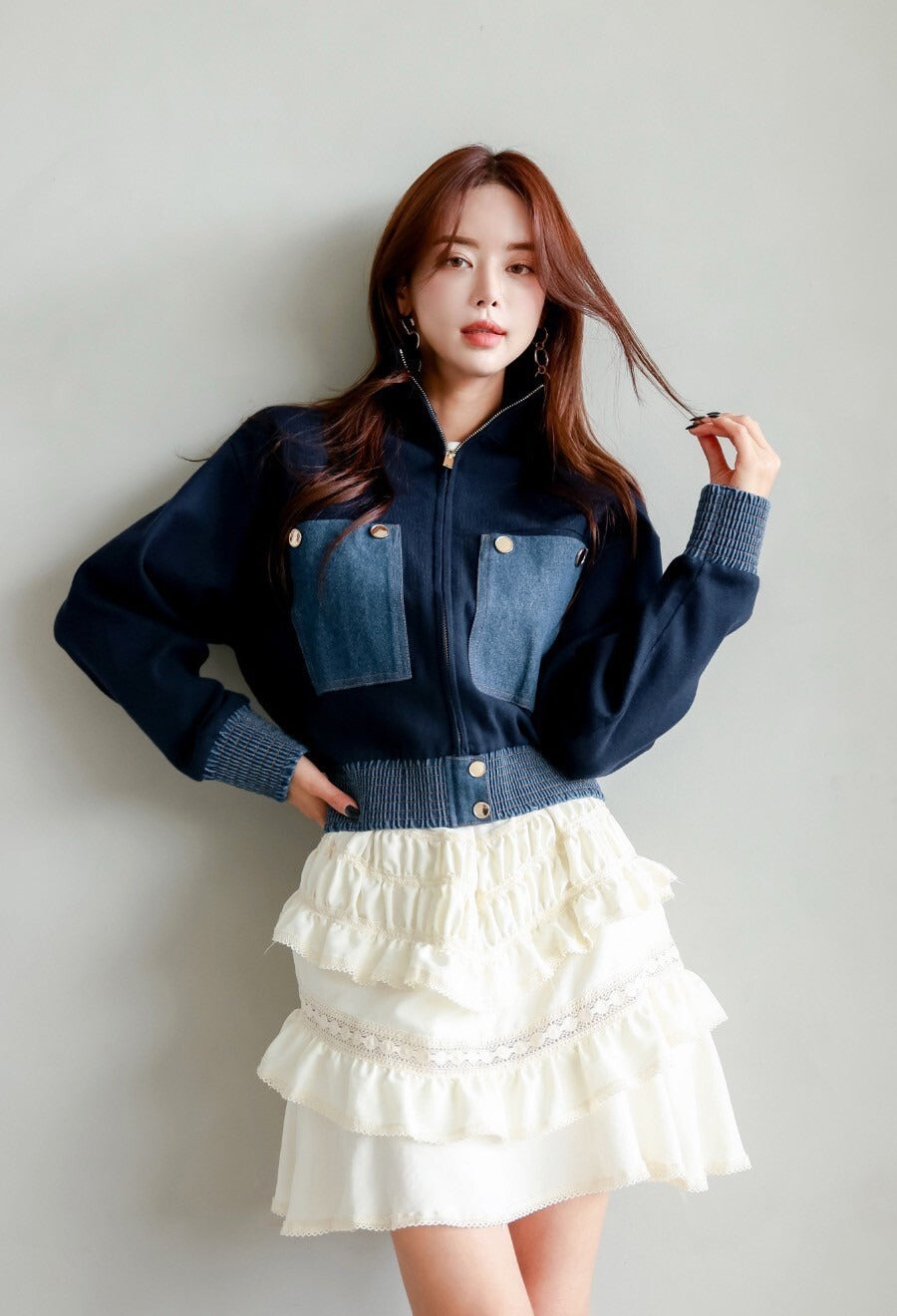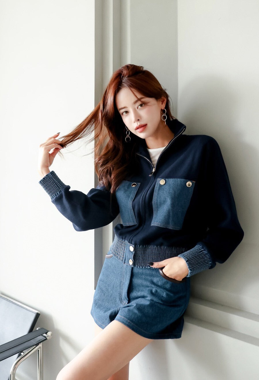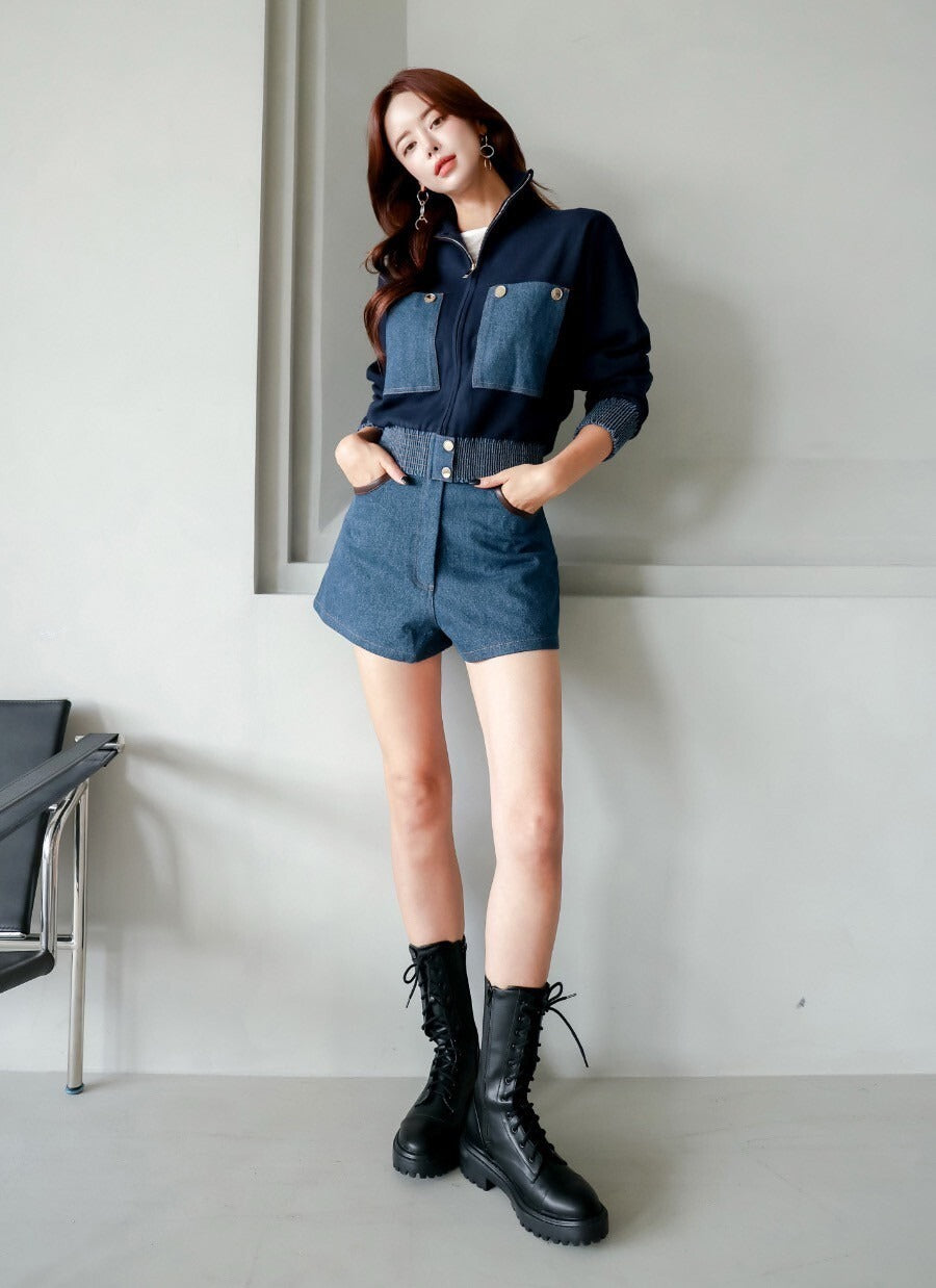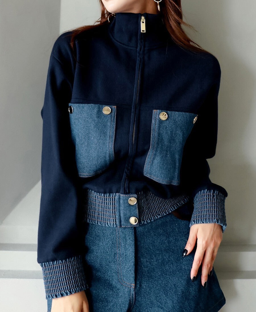 25Sep. 休閒打欖牛仔拼色雙口袋棒球外套