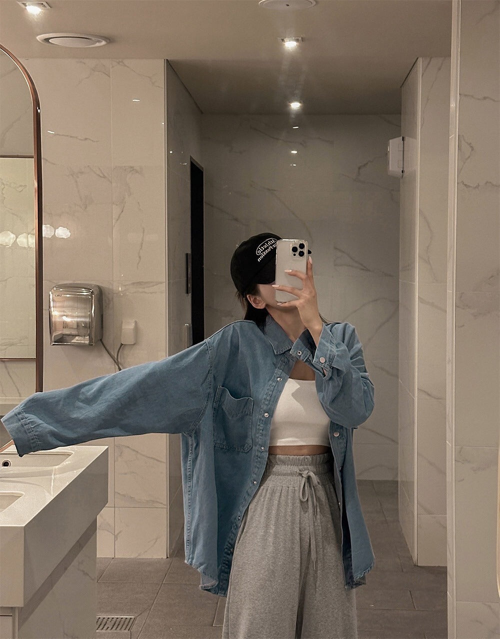 25Sep. 寬鬆休閒白搭男友牛仔襯衫 藍