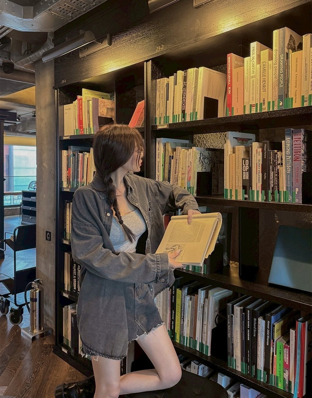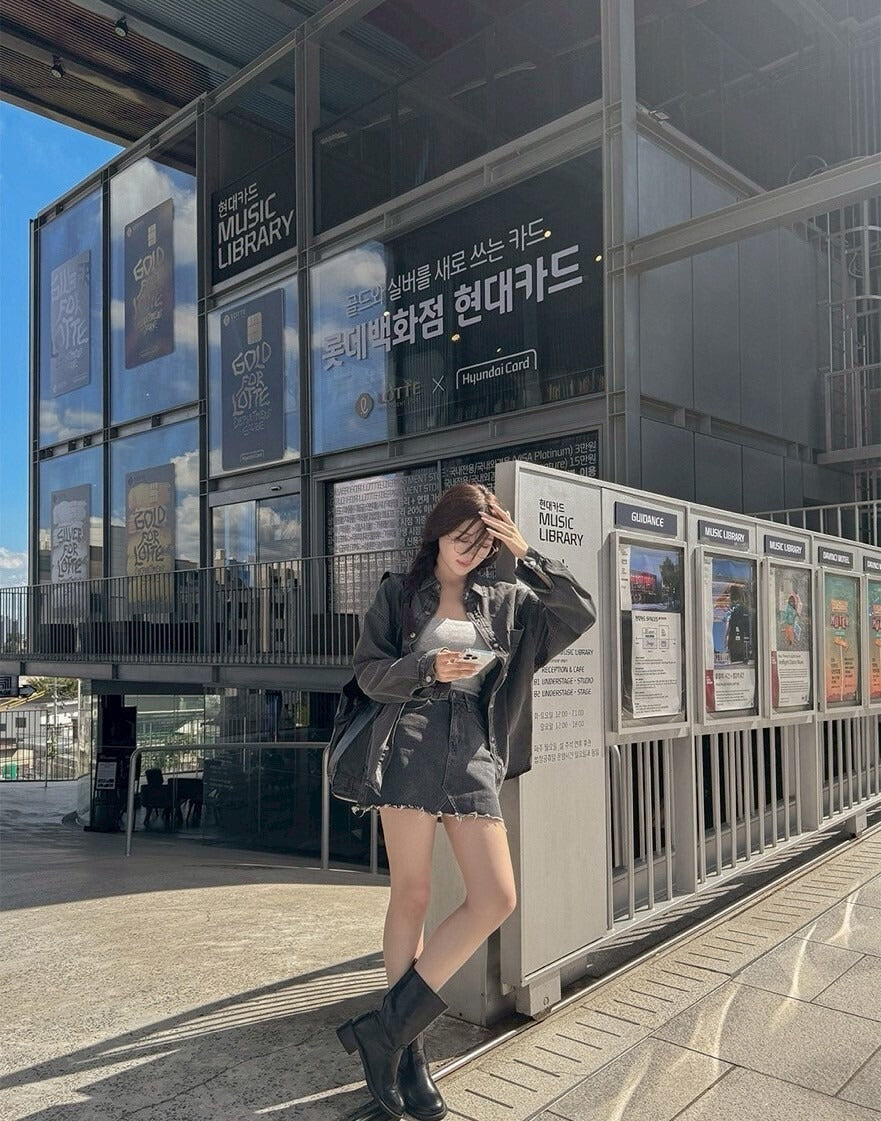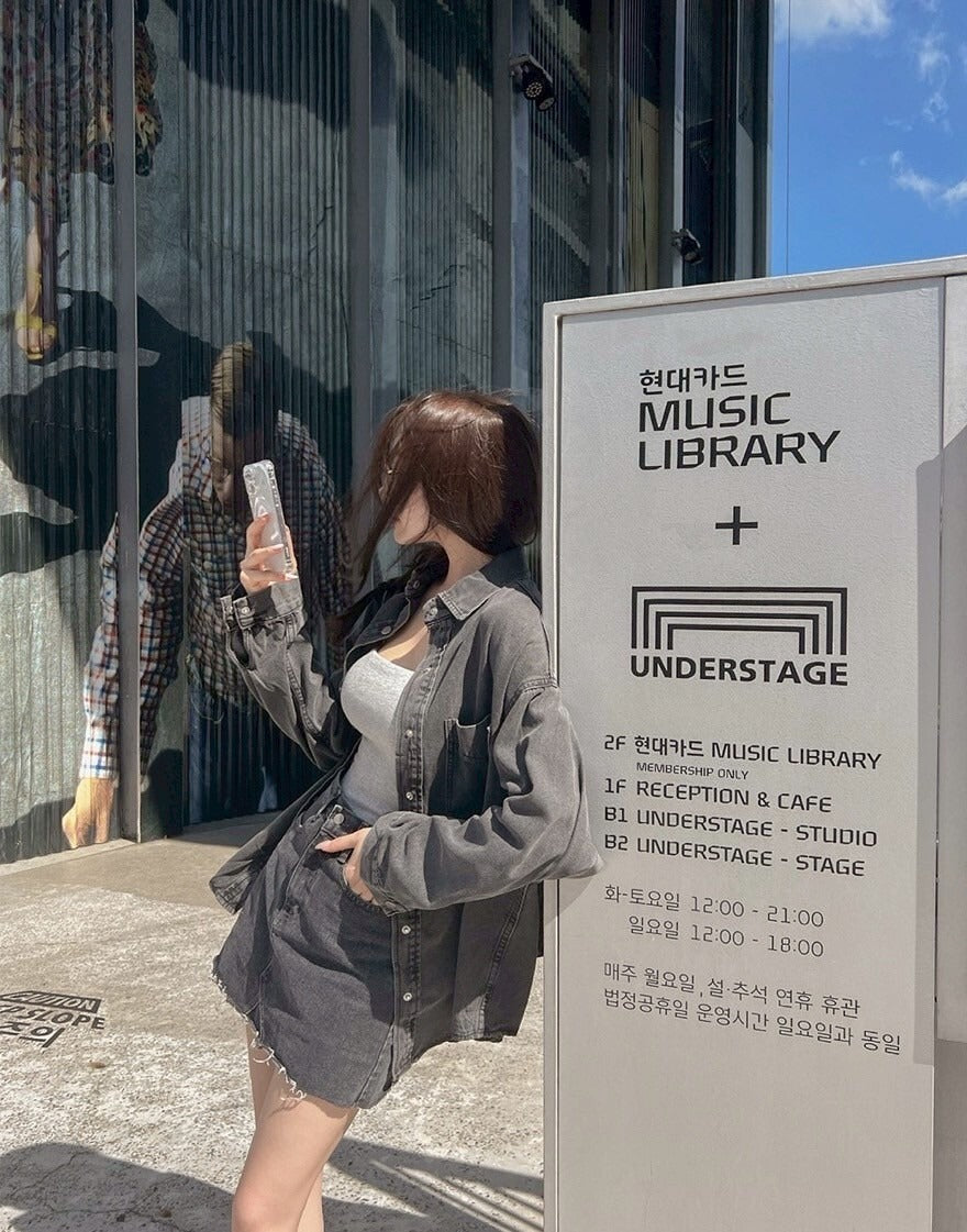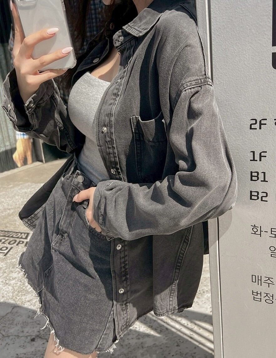 25Sep. 寬鬆休閒白搭男友牛仔襯衫 黑灰