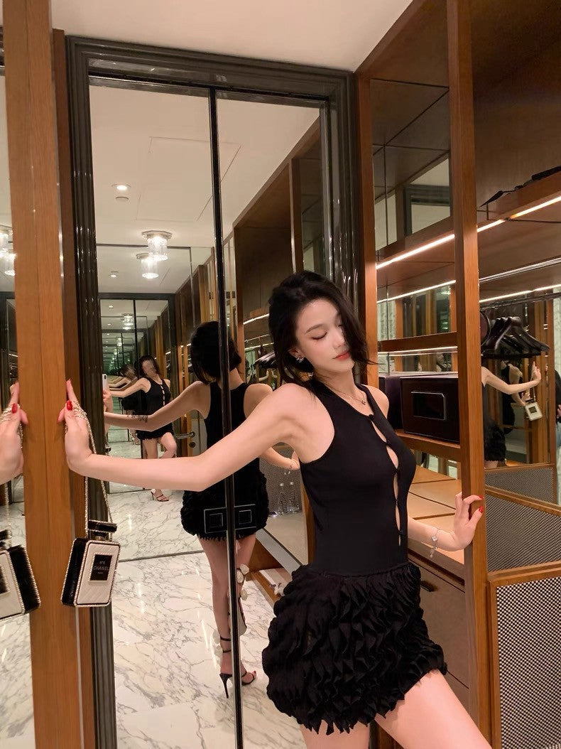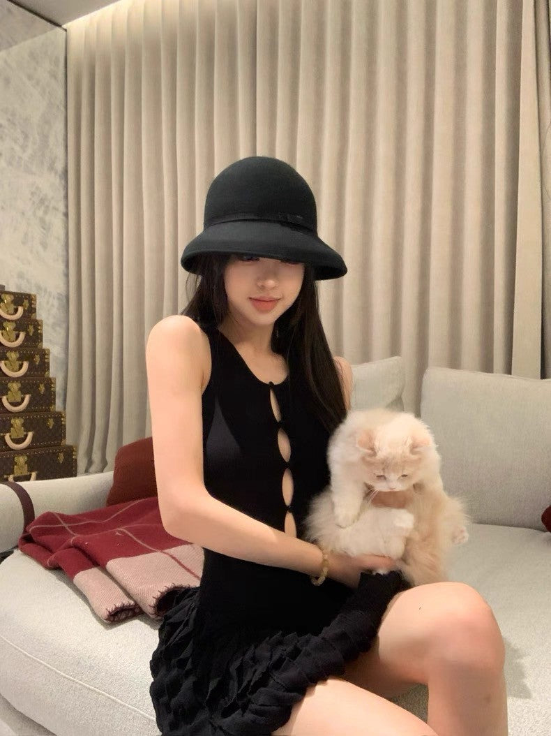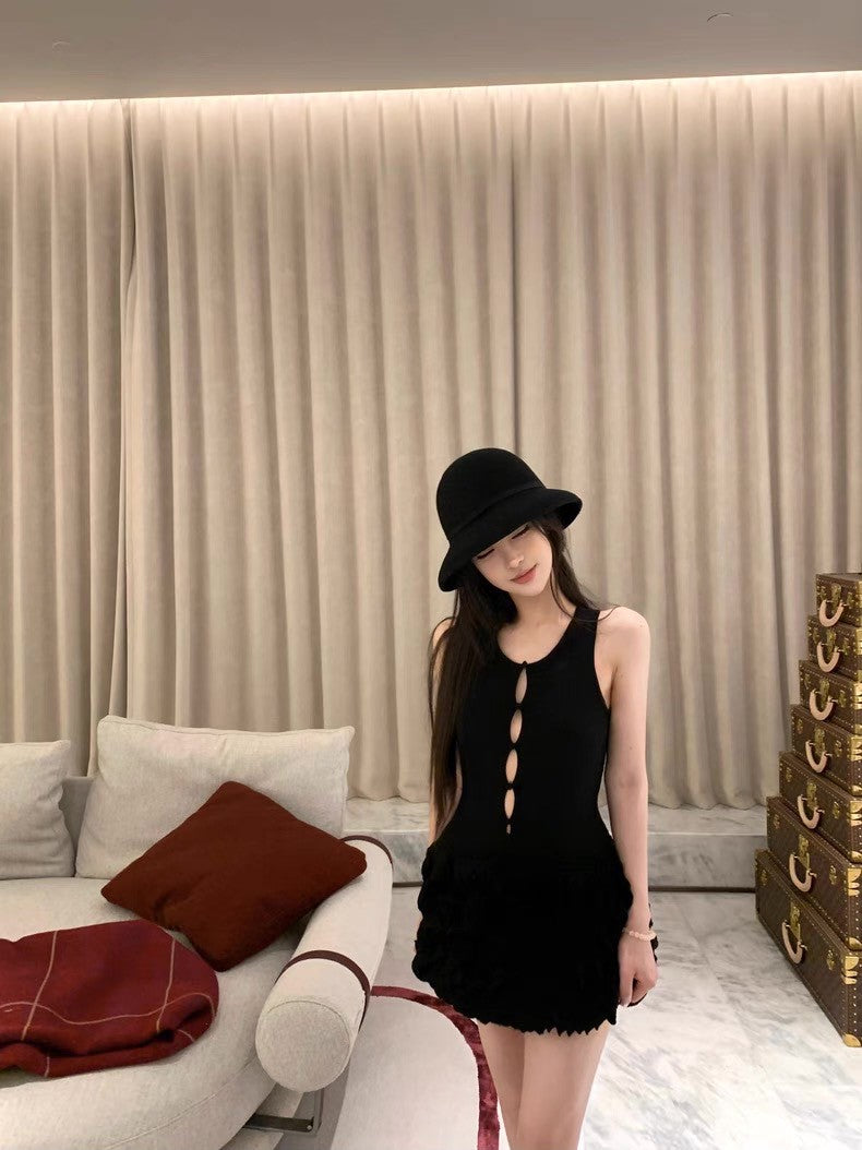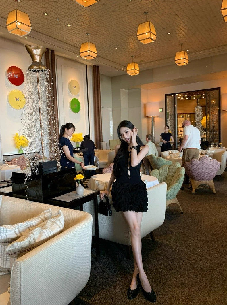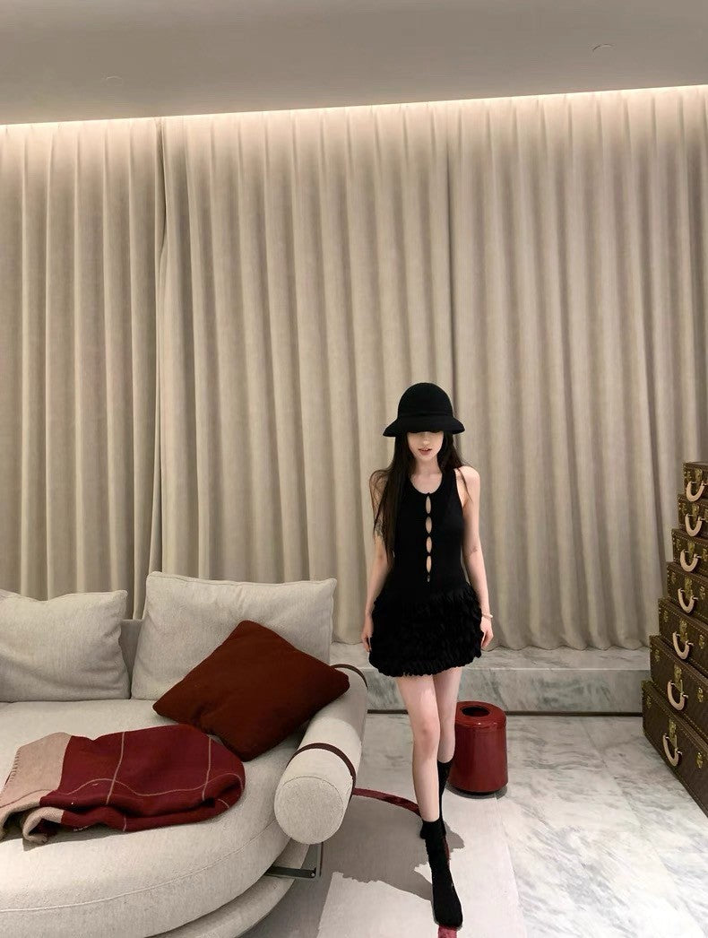 25Sep. 氣質千金經典黑拼接針織蛋糕連身裙
