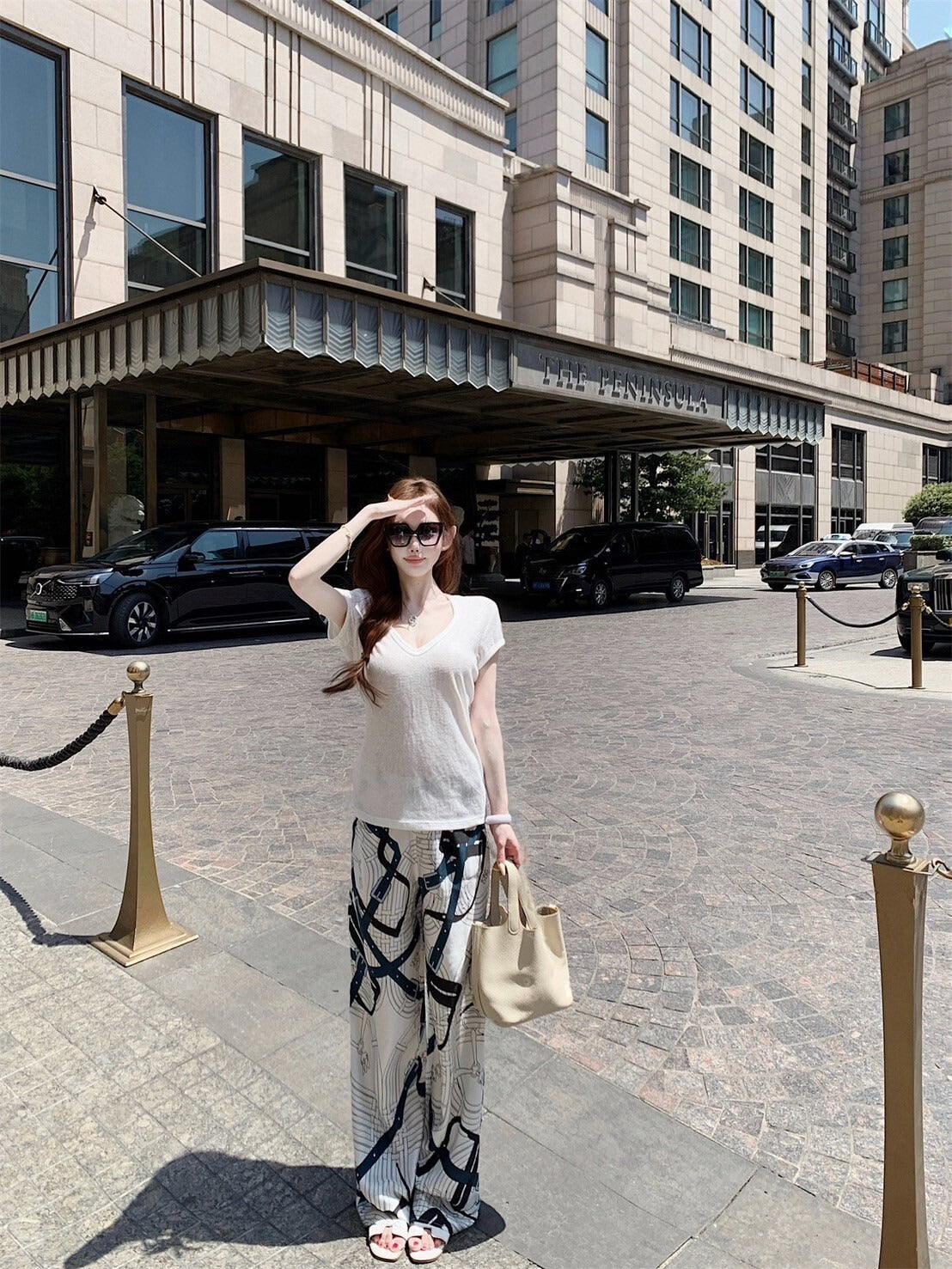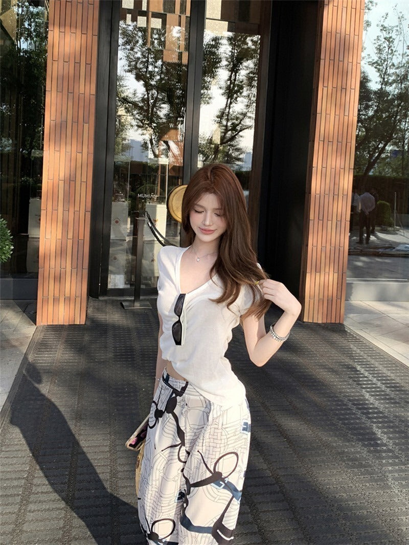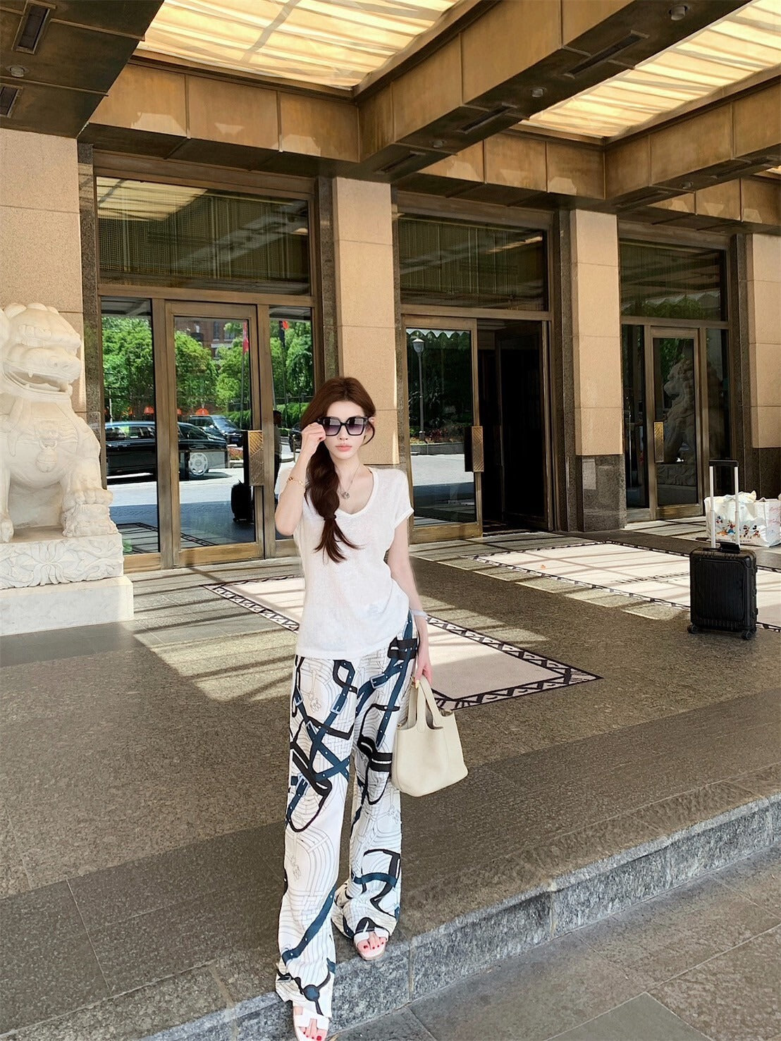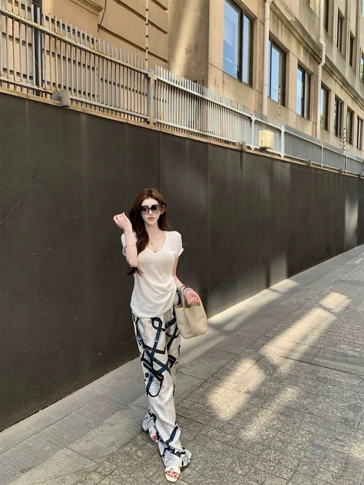 25Sep. 淡人ToF*極簡亞麻棉上衣 白色/冰絲緞面老花休閒褲