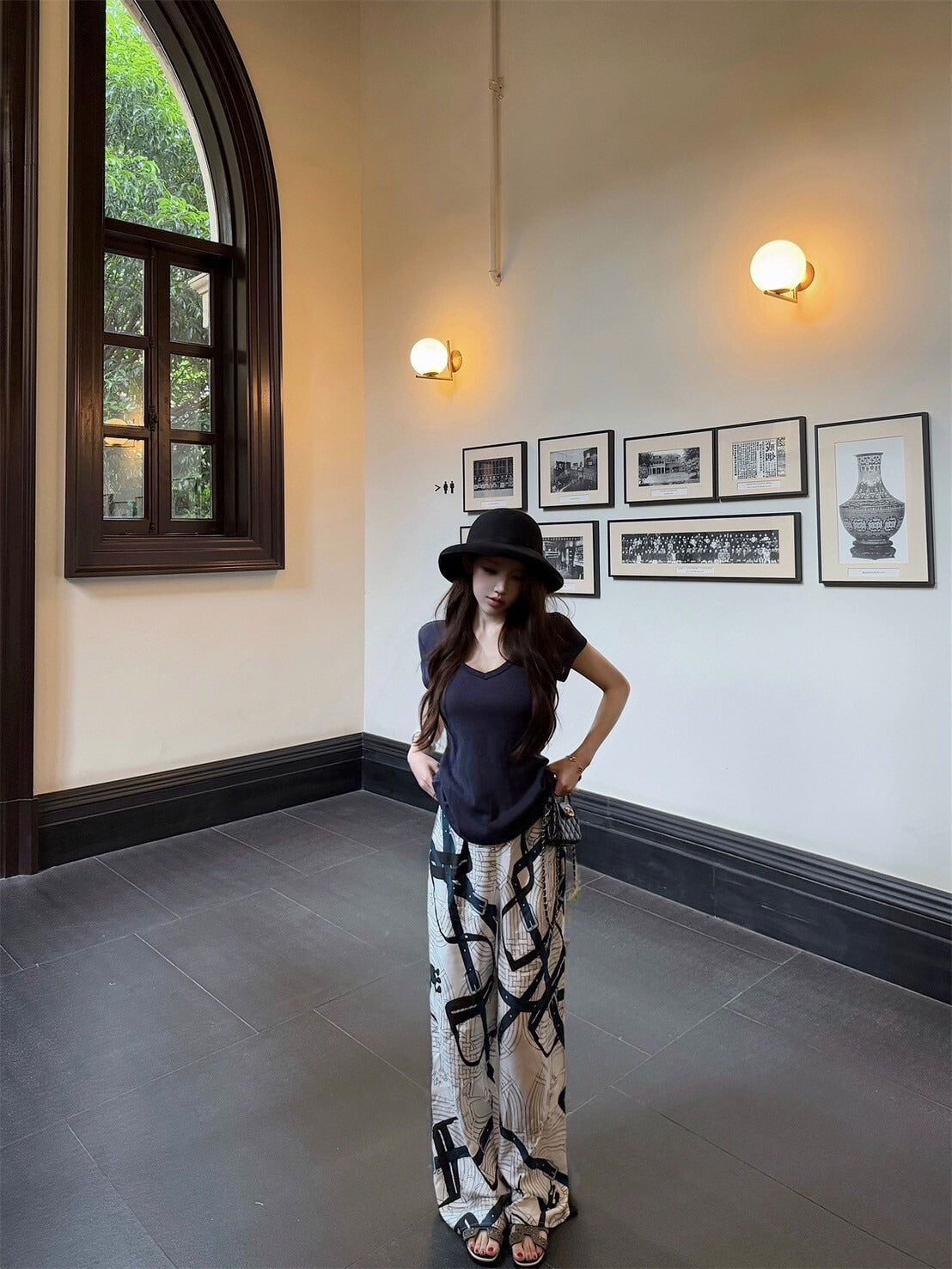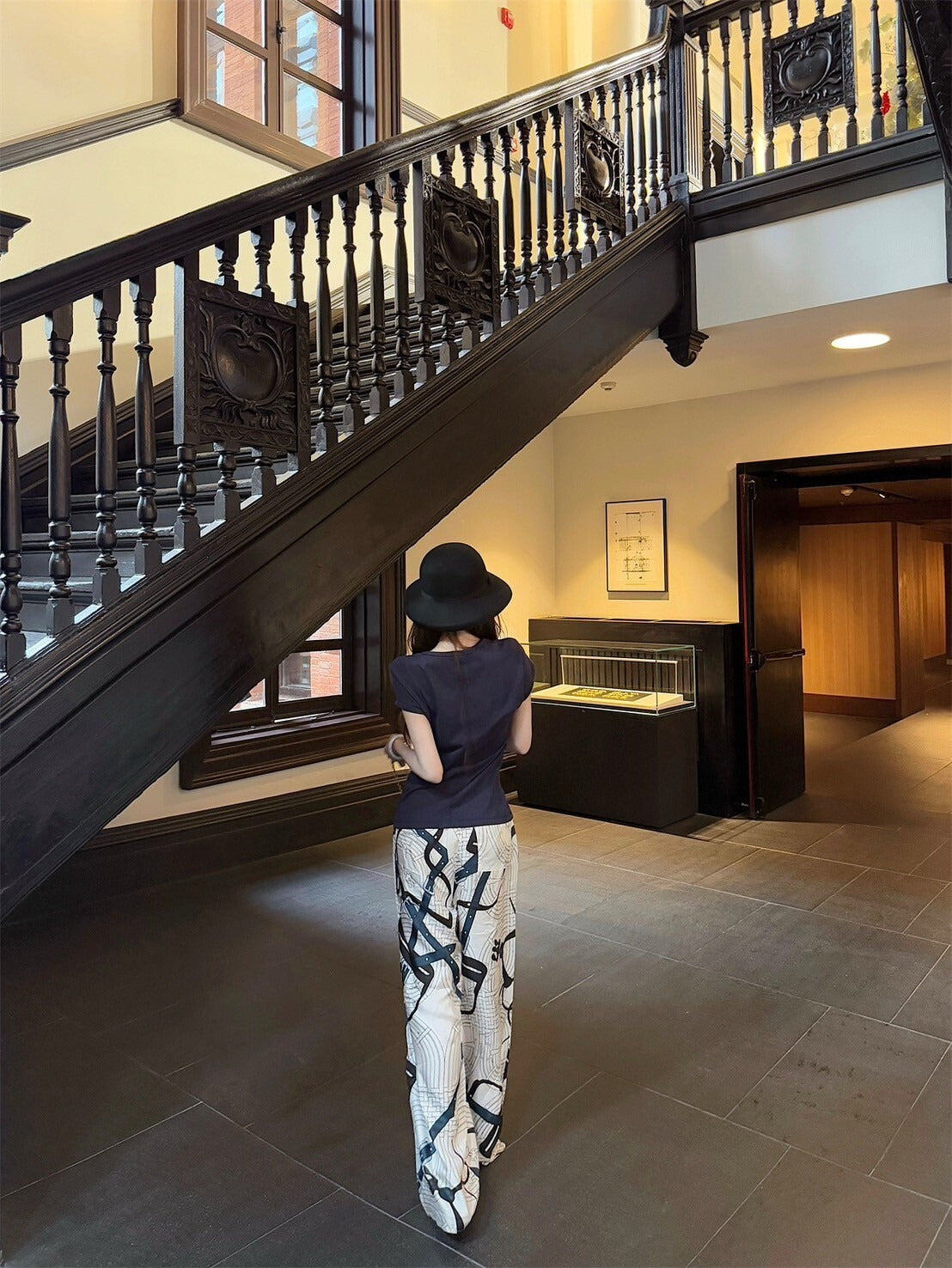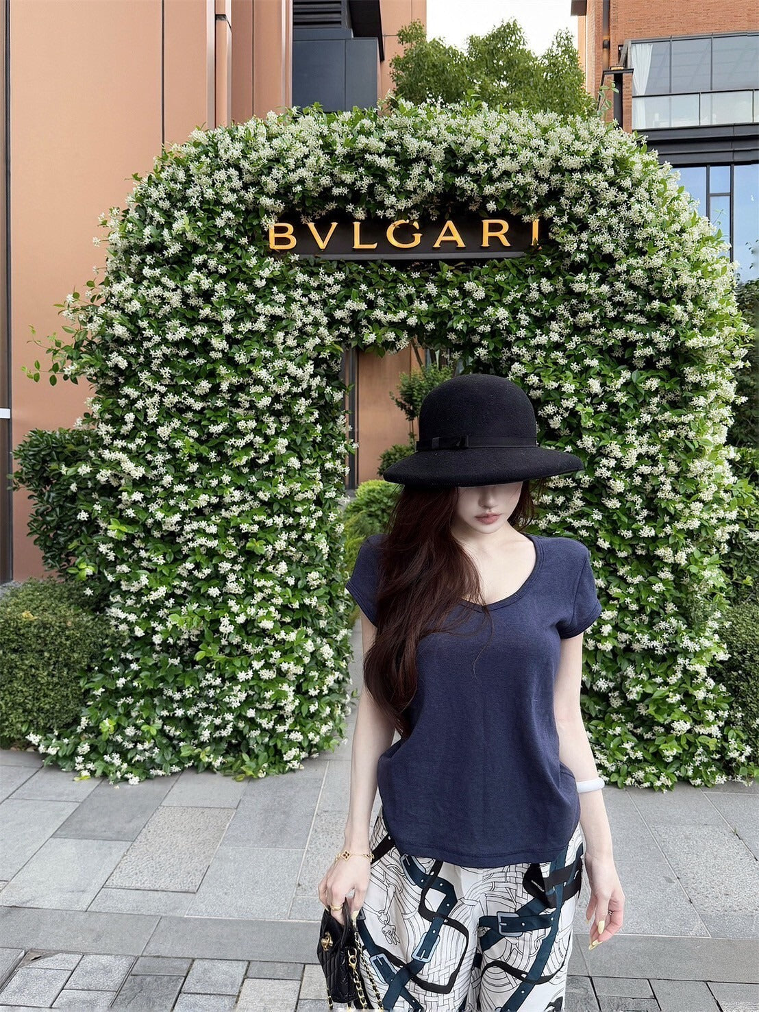 25Sep. 淡人ToF*極簡亞麻棉上衣 藏藍/冰絲緞面老花休閒褲
