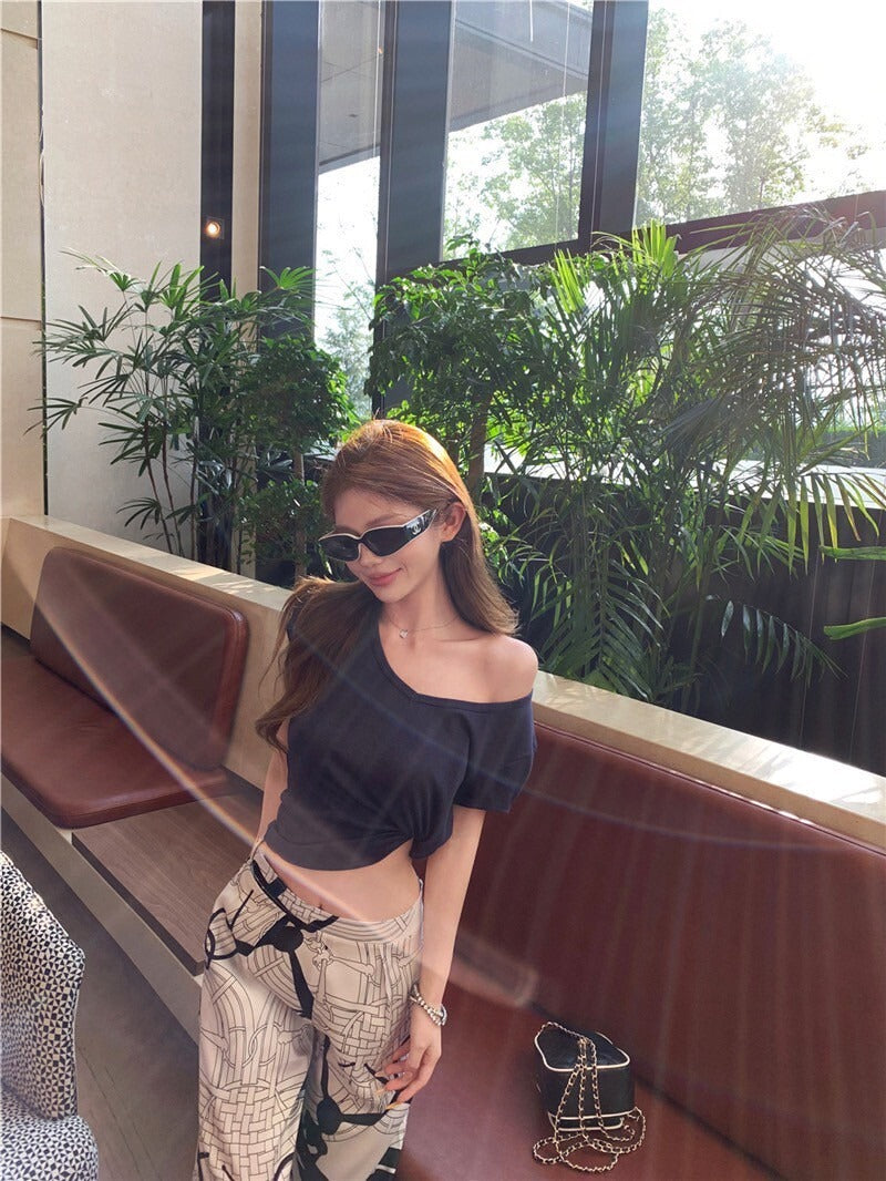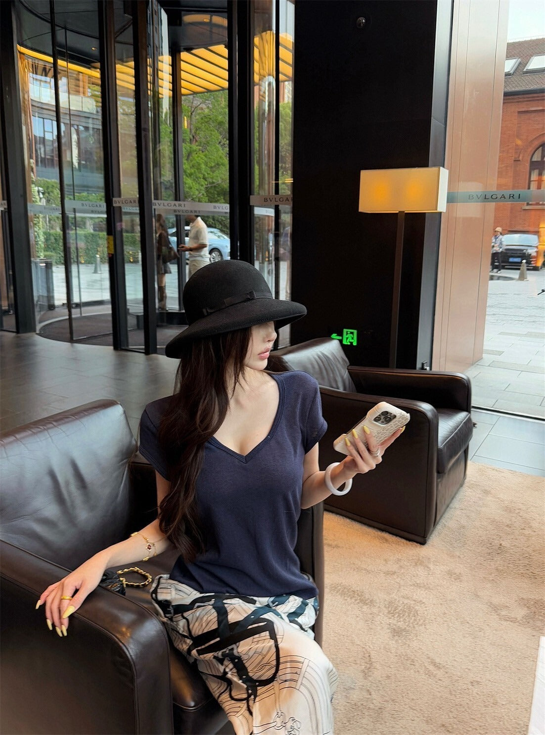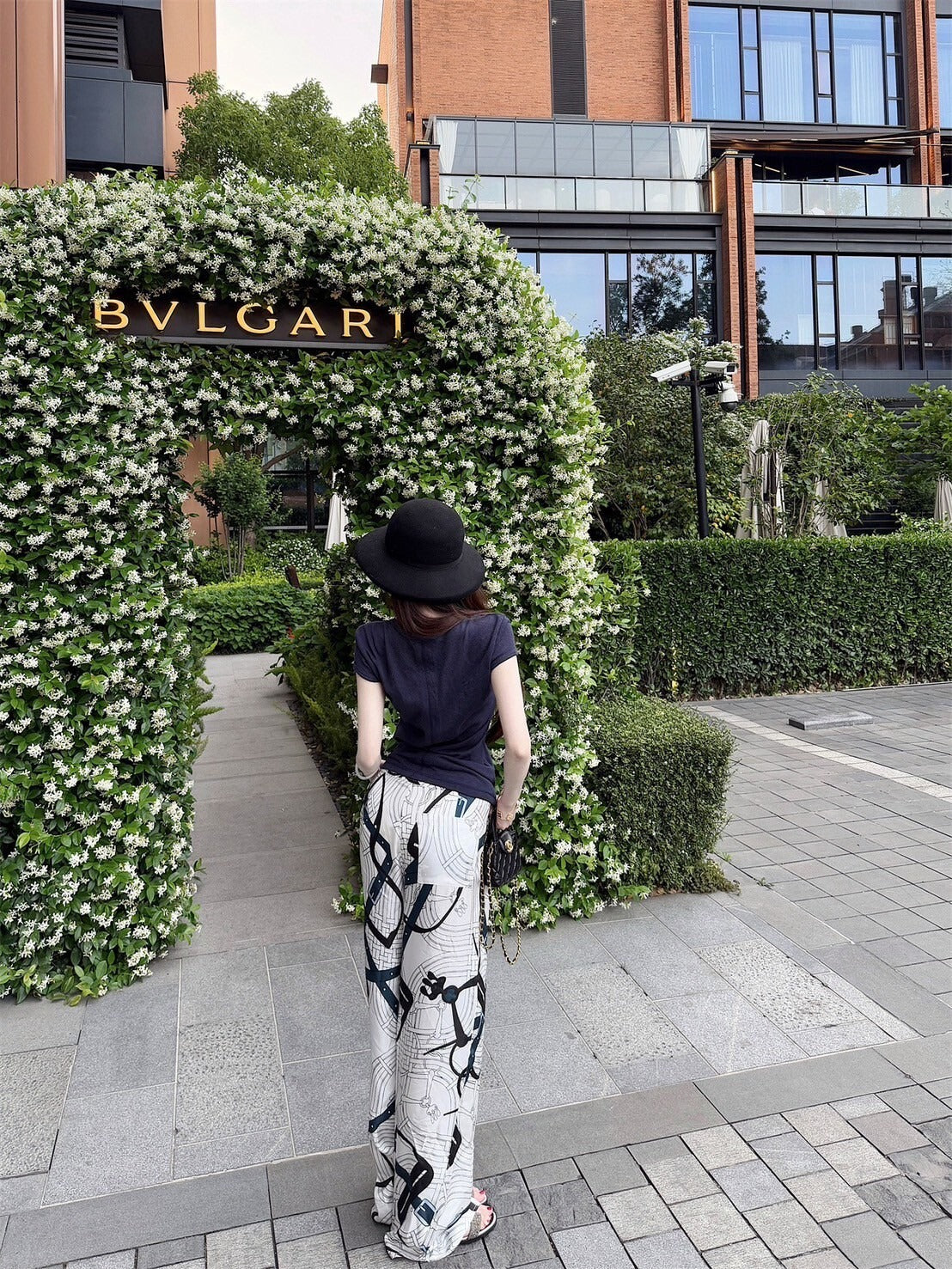 25Sep. 淡人ToF*極簡亞麻棉上衣 藏藍/冰絲緞面老花休閒褲