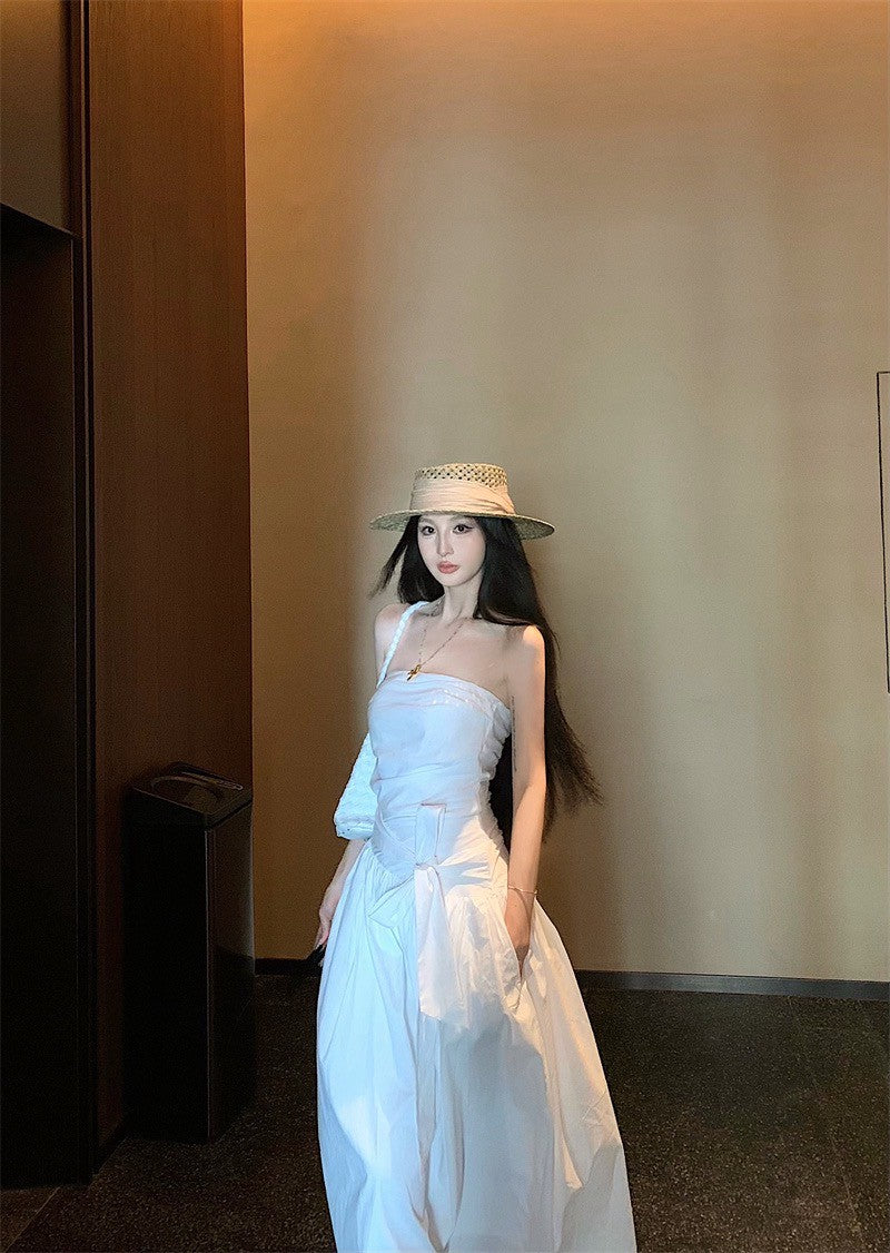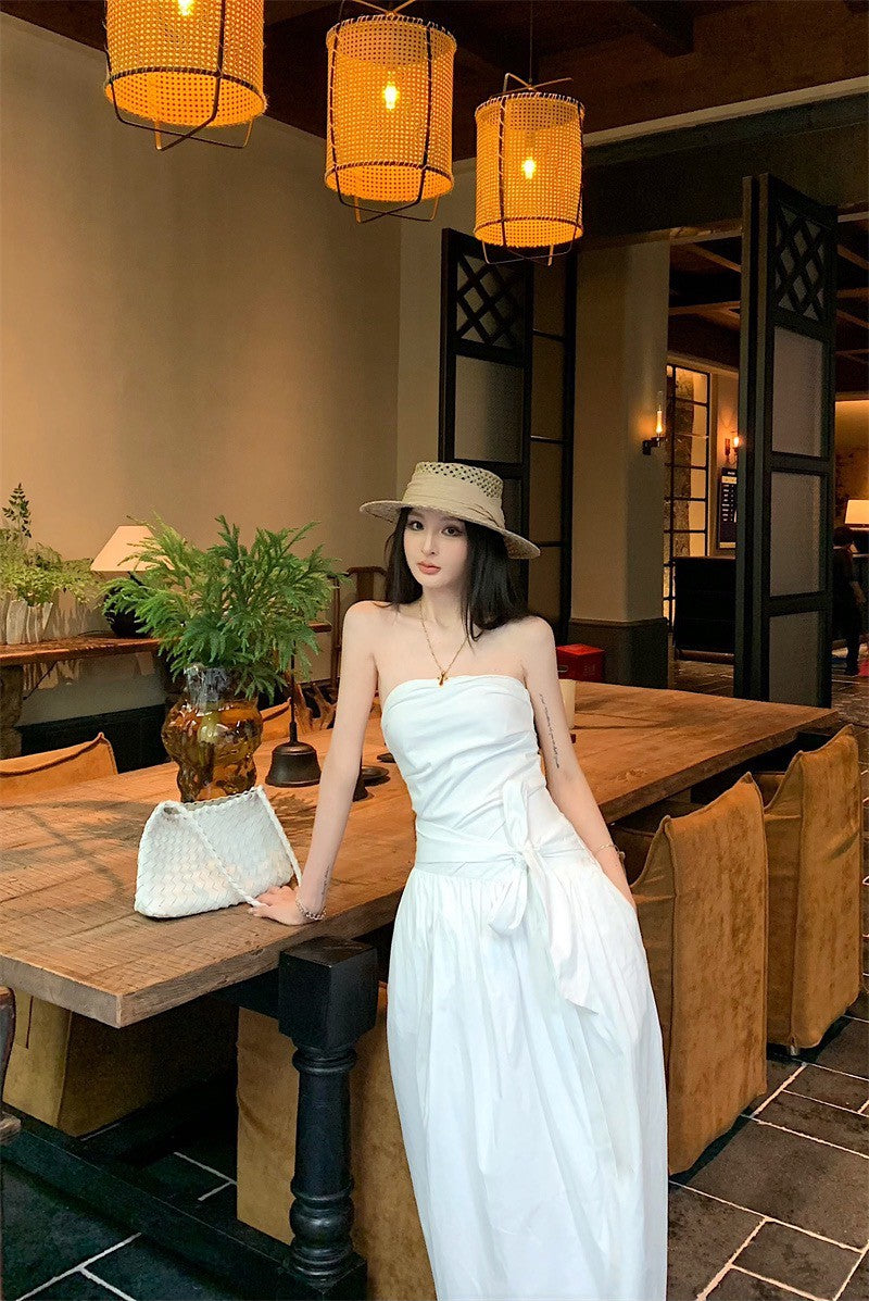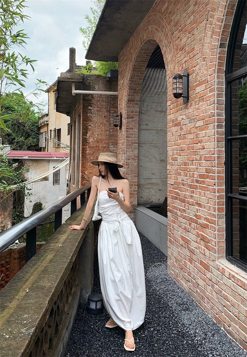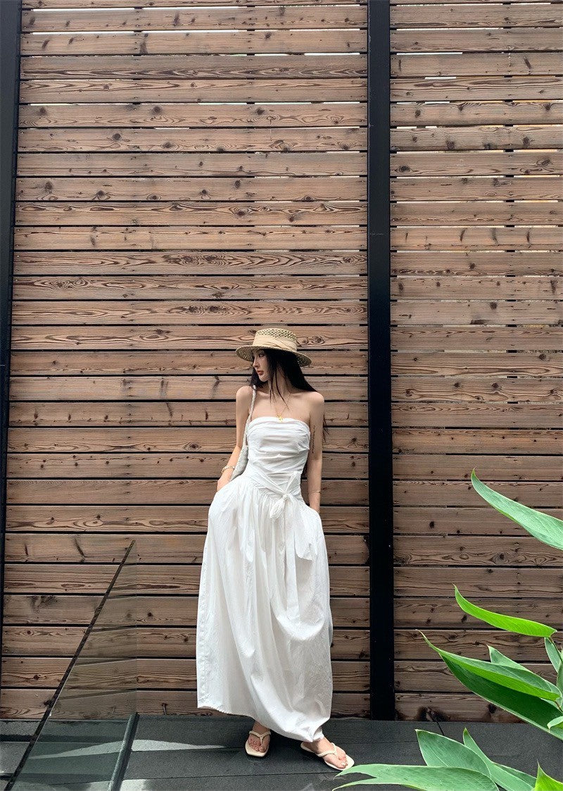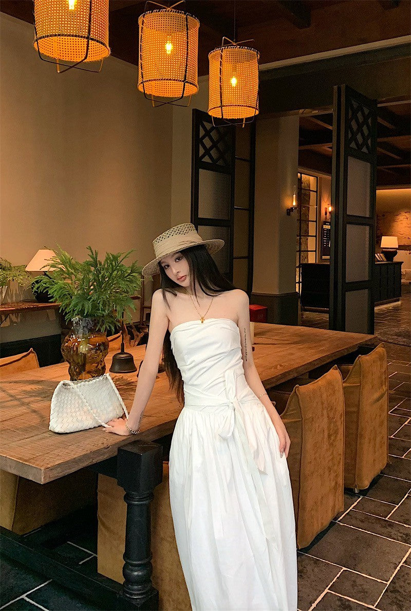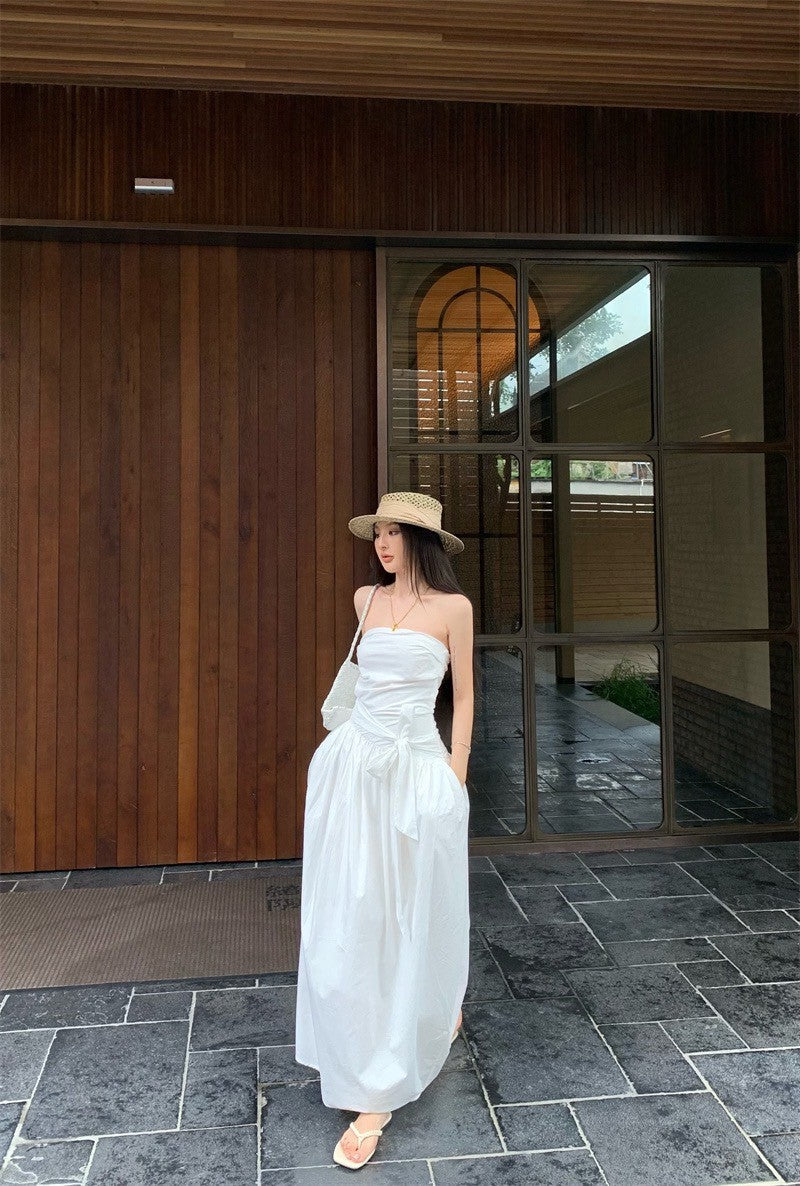 25Sep. 知性哲學抹胸襯衫料繫帶連身裙 白