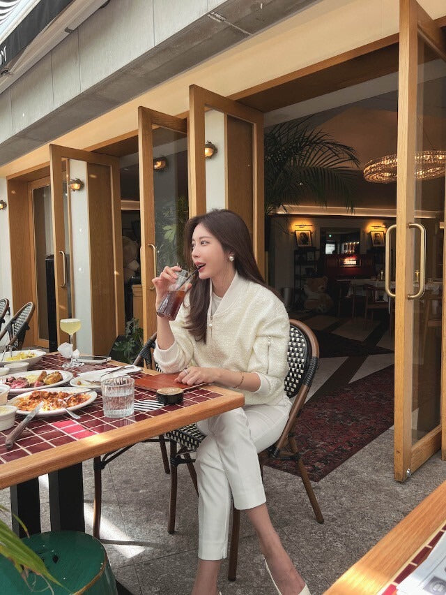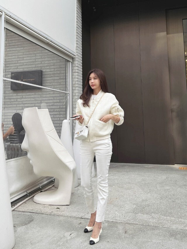 25Sep. 簡約理念百搭短款修身粗呢棒球外套 白