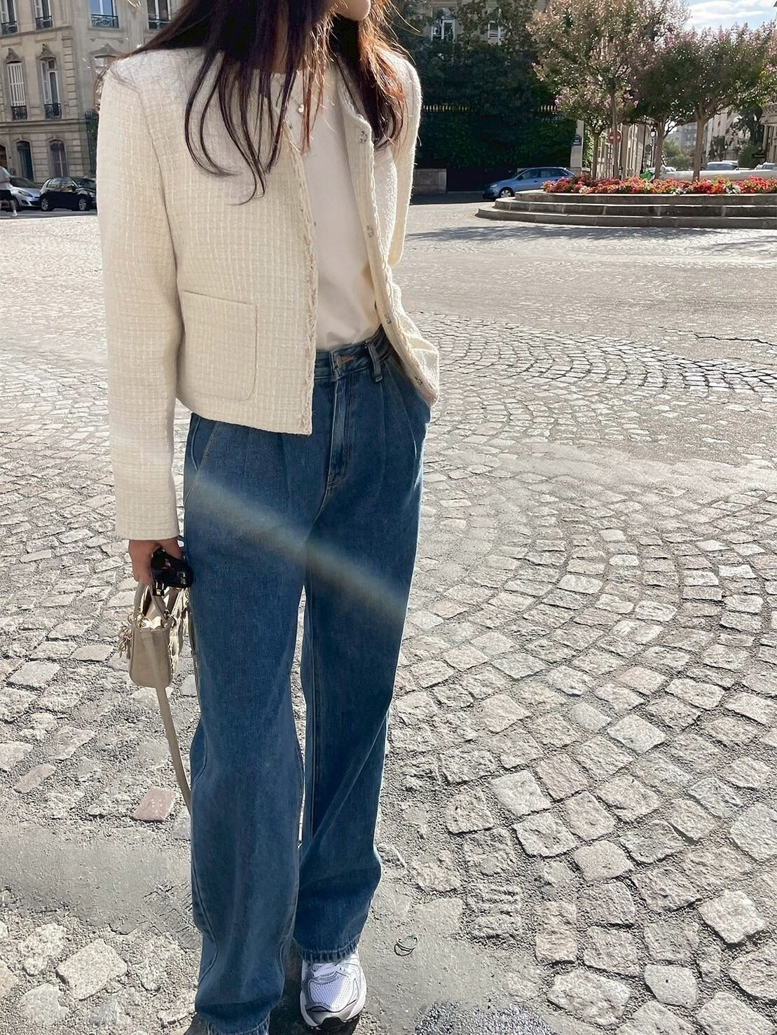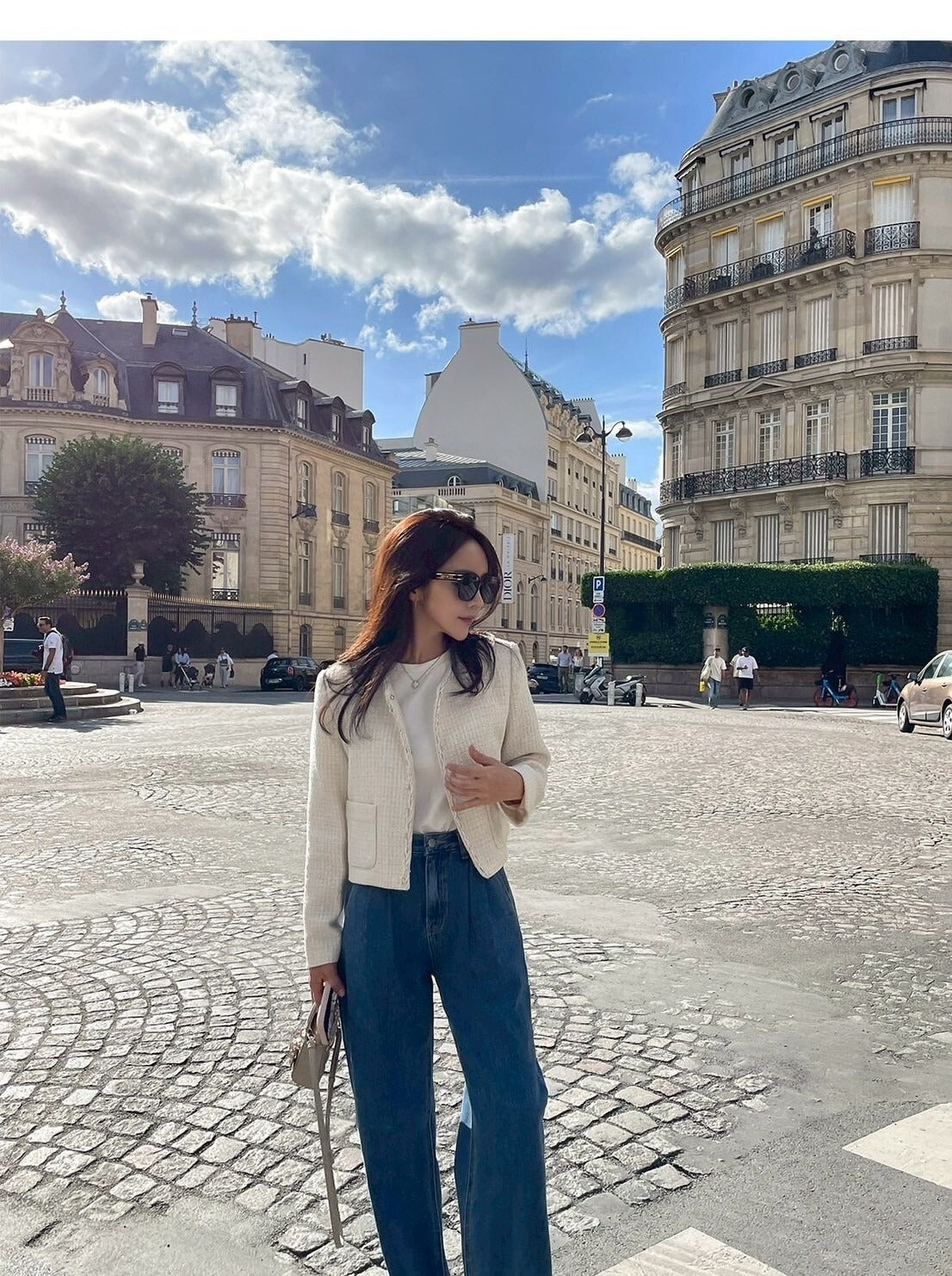 25Sep. 精緻香女孩 粗呢羊毛修身短外套 白