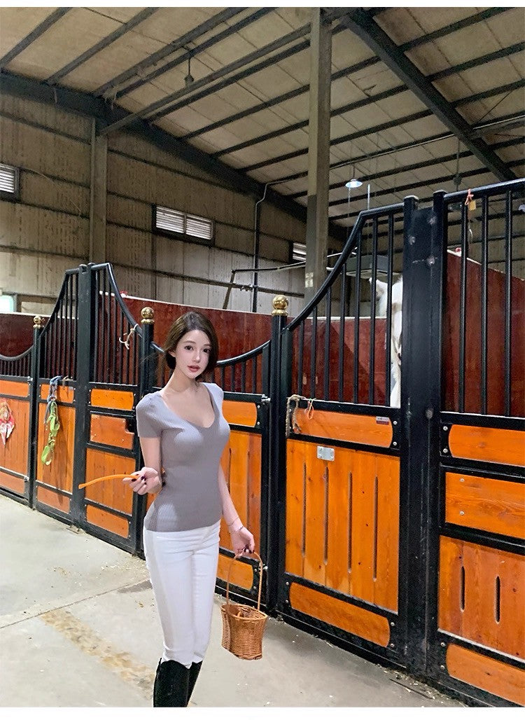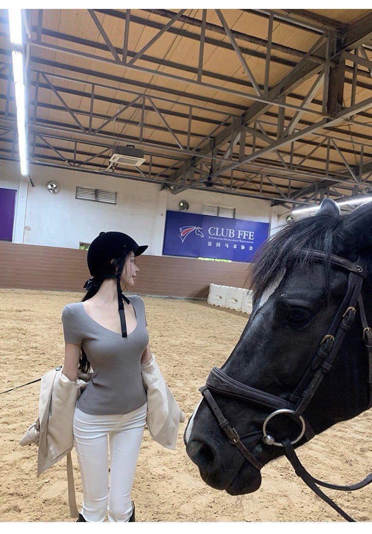25Sep. 蠻腰慕斯V領豎坑針織上衣 灰