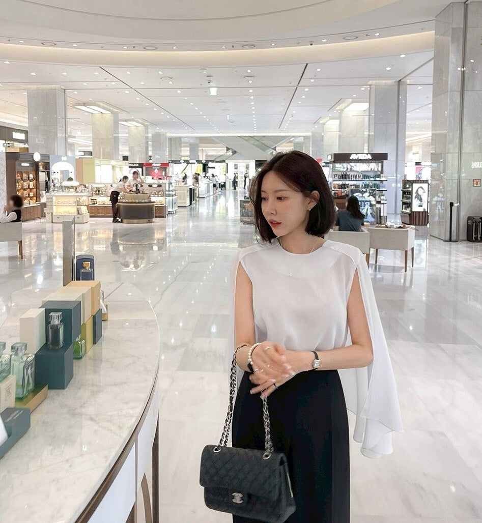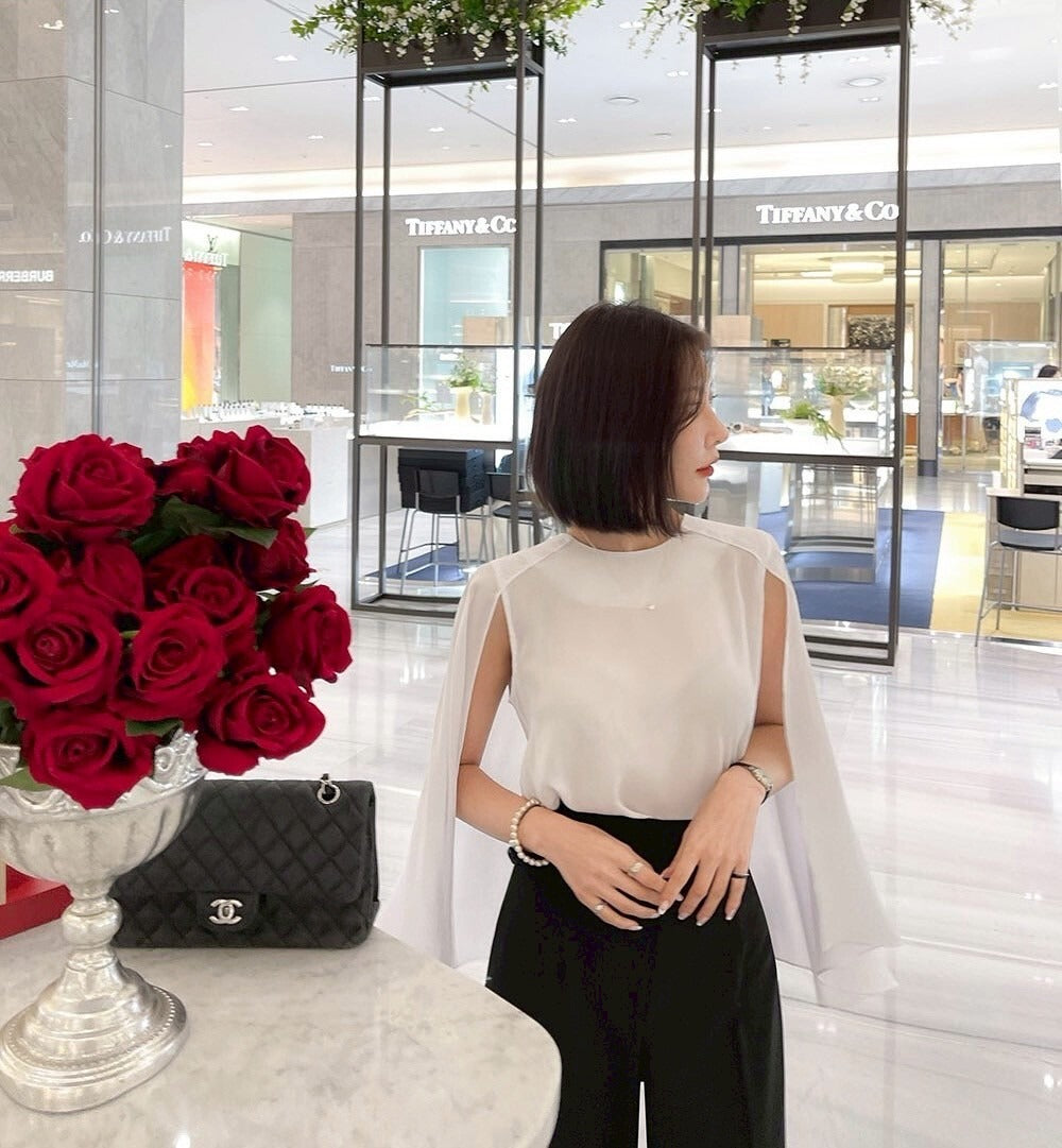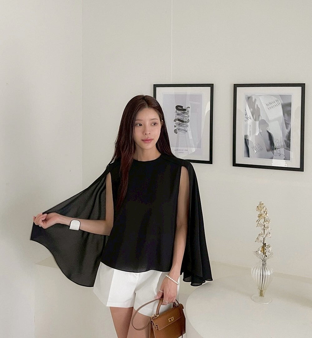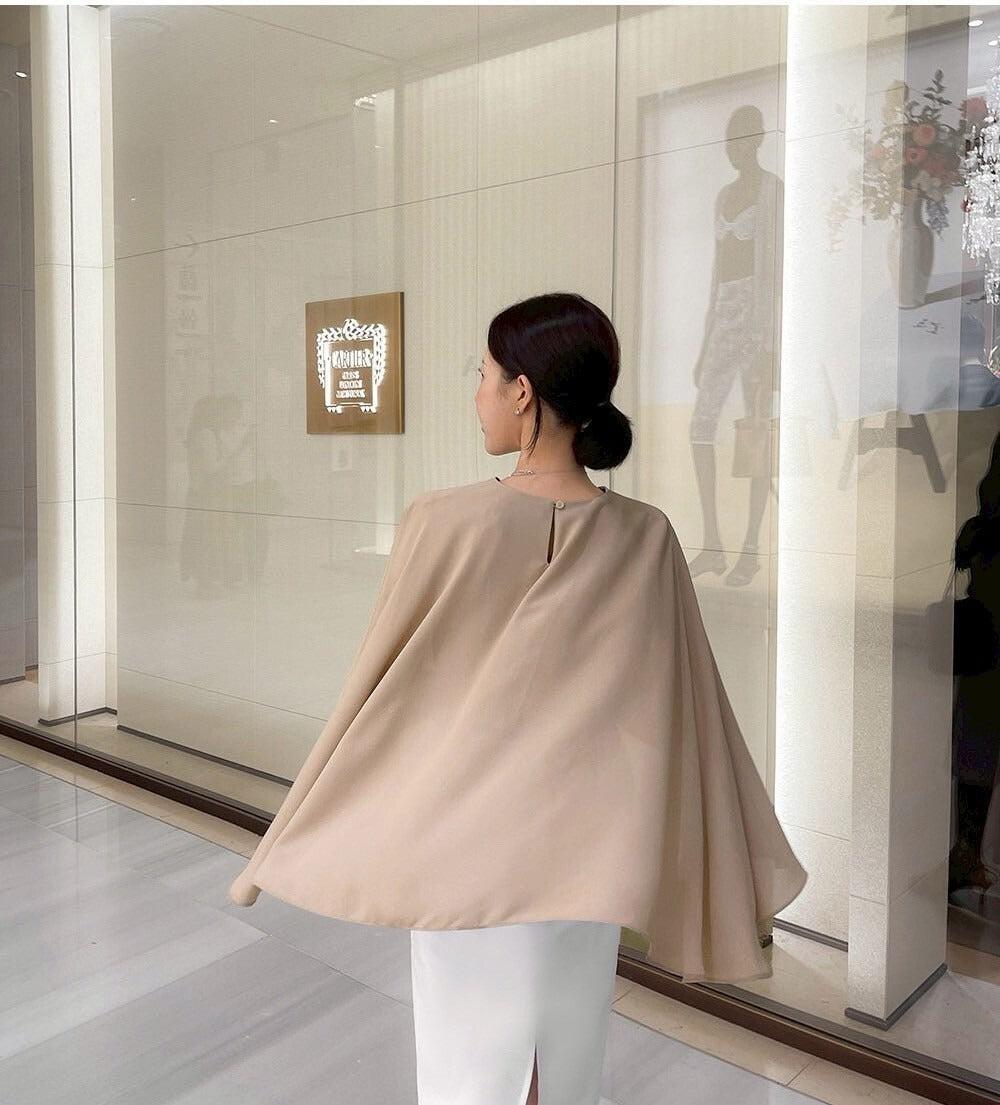 25Sep. 韓chic披風式斗篷襯衫 杏/白/黑