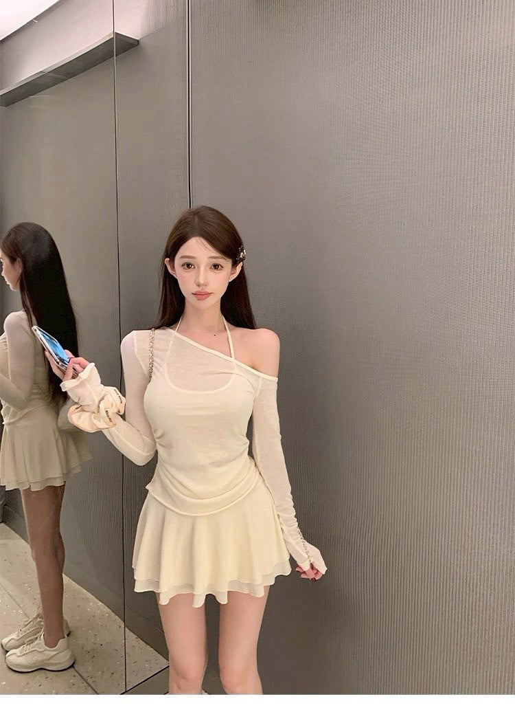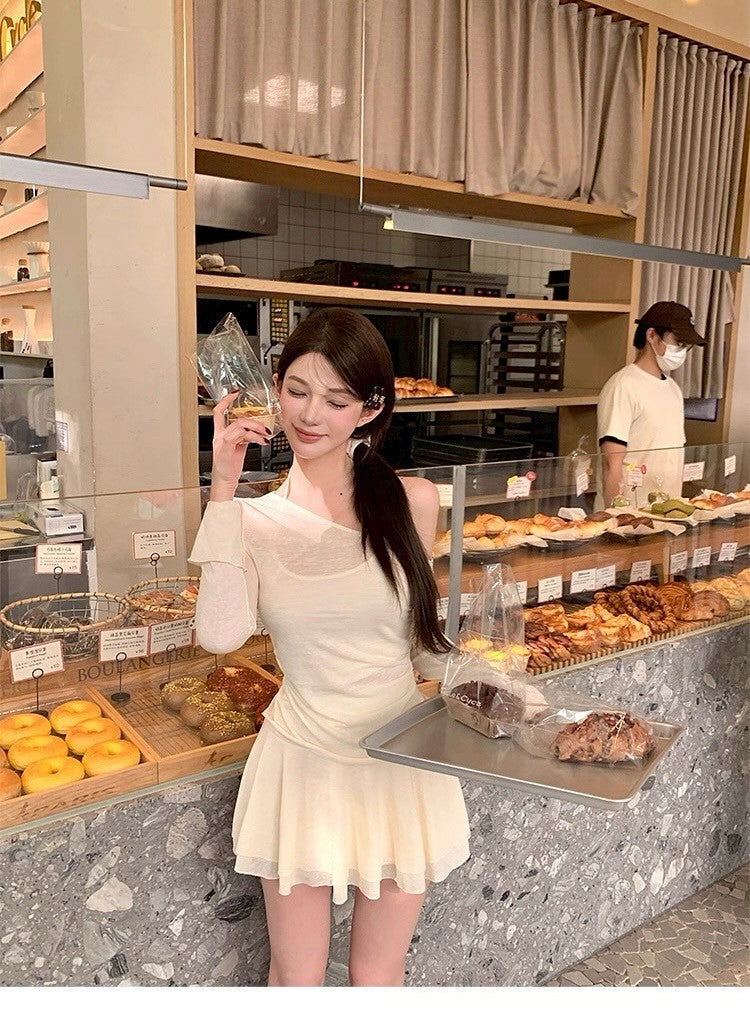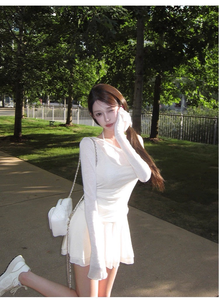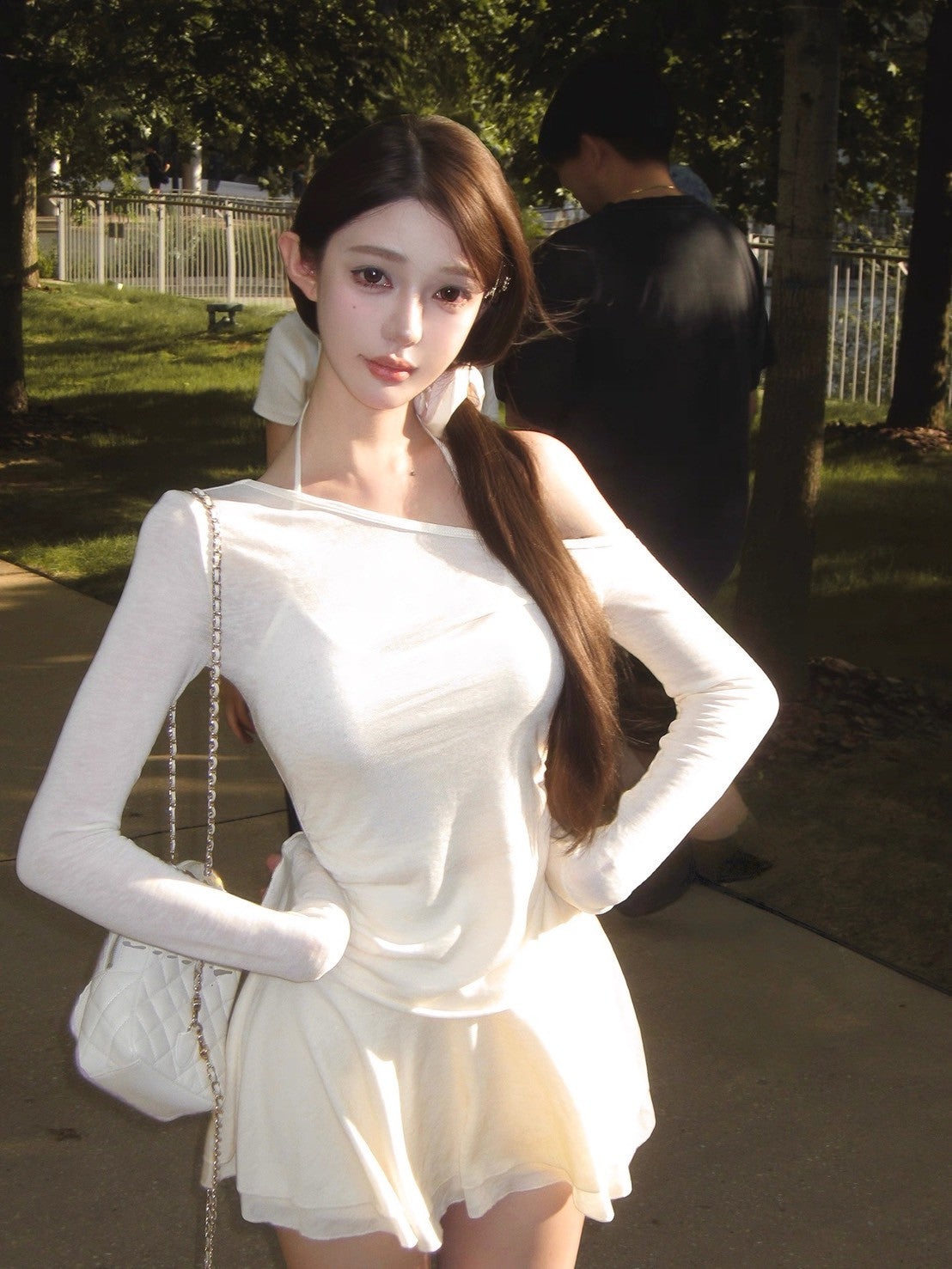 25Sep. 香霧白茶純欲掛脖上衣短裙3件套
