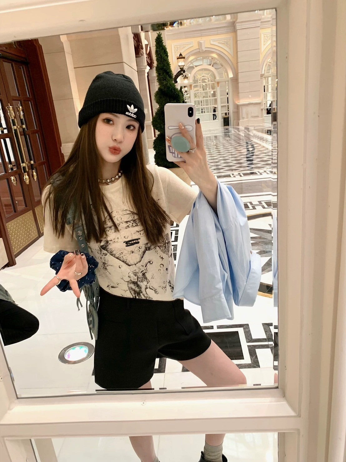 Aug. 私服 雪花棉親膚柔軟Di*r圖案印花上衣