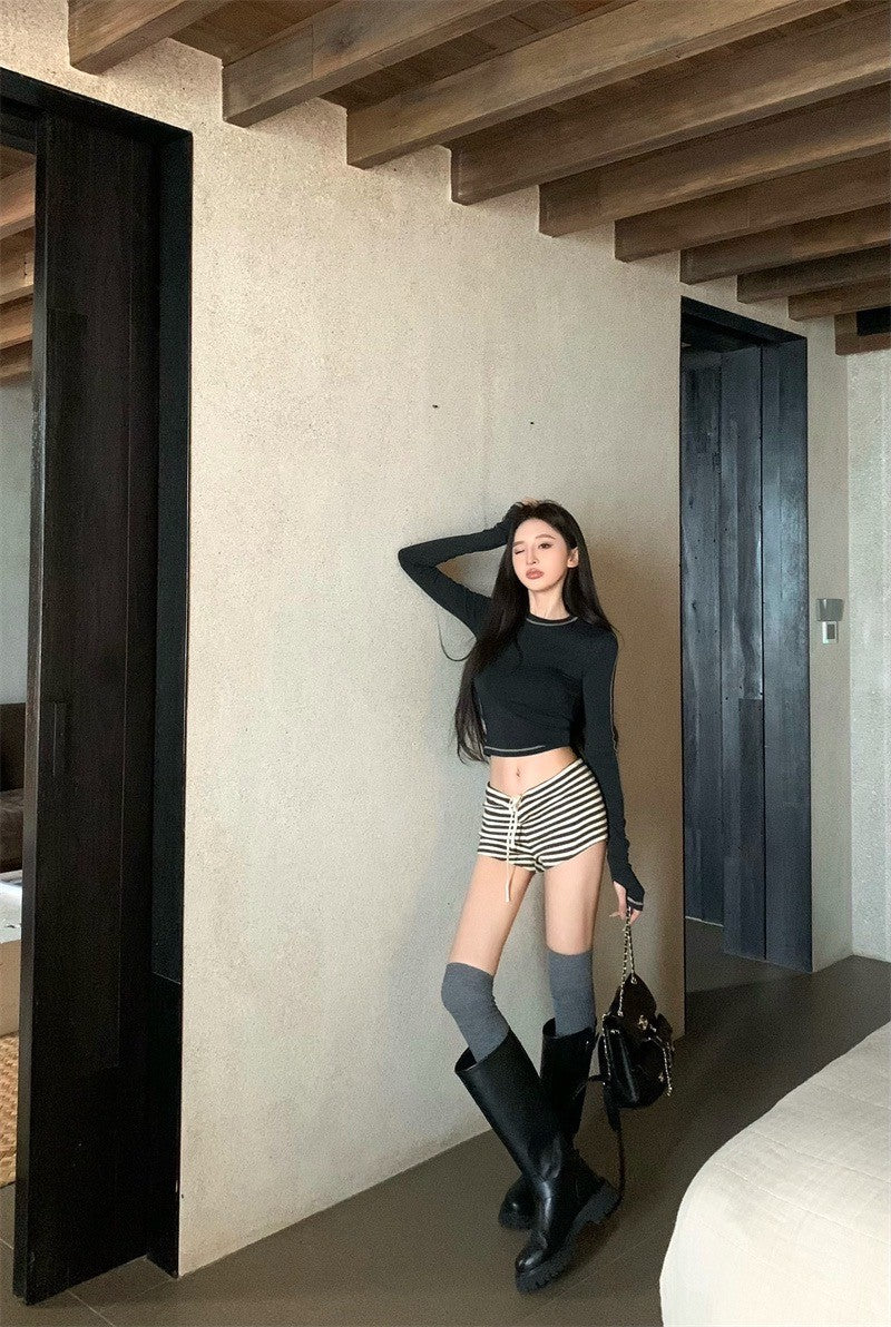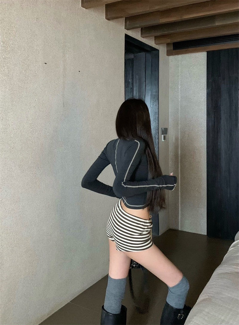 Jan. 休閒高圓領彈力明線設計感上衣 灰