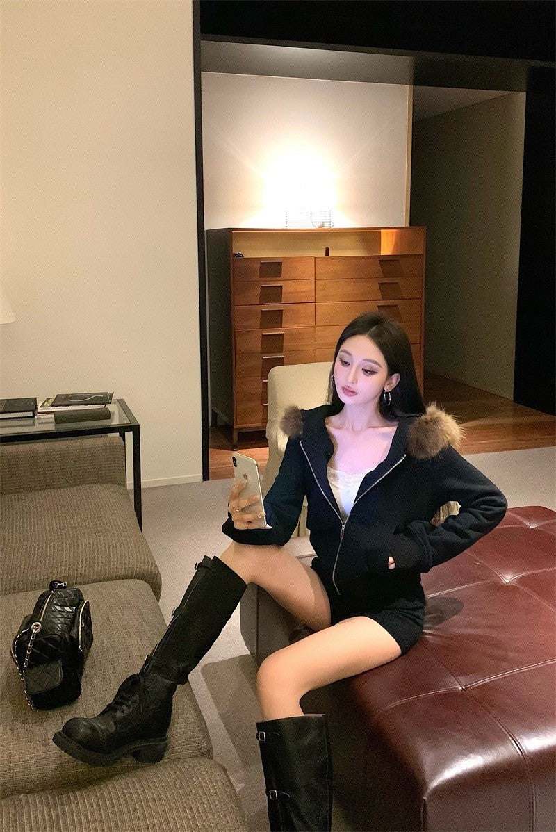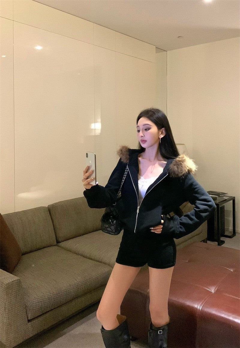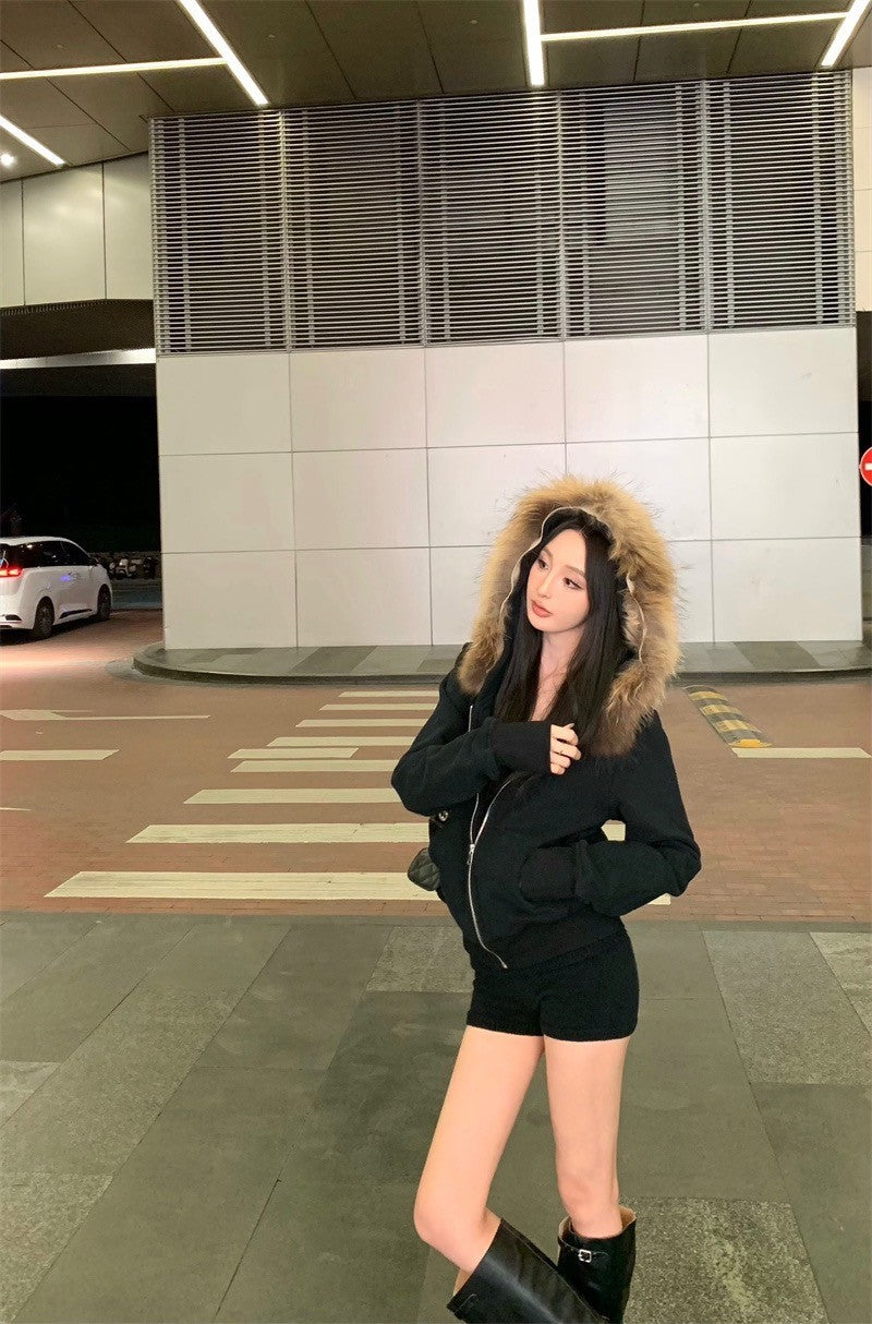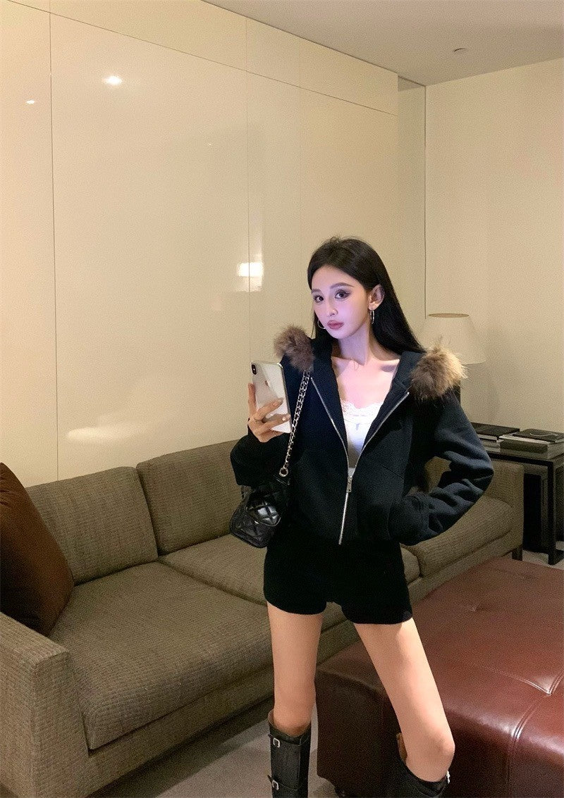 Jan. 奶貓狙擊 通勤慵懶毛毛連帽外套 黑
