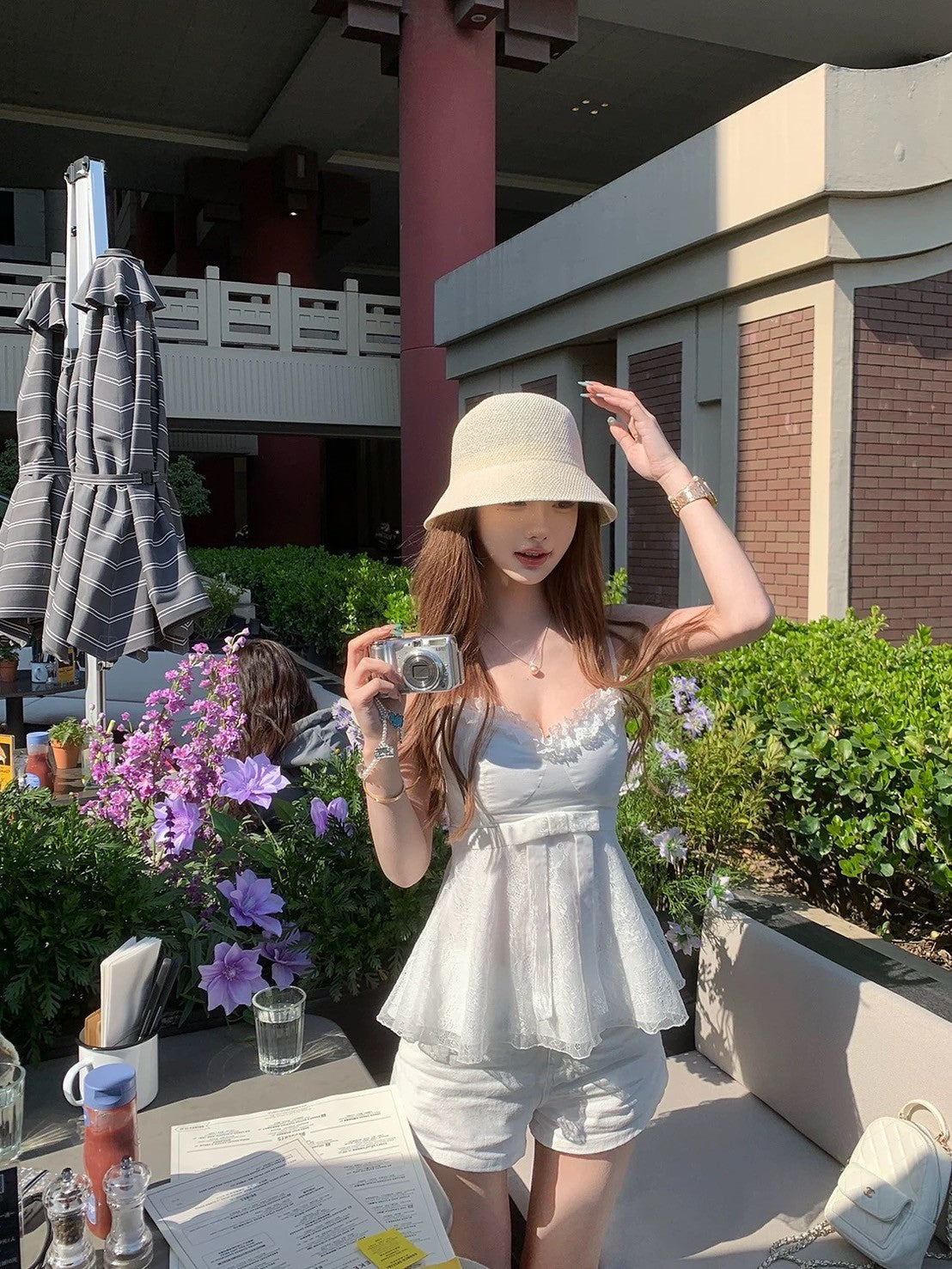Jun. 初戀白月光氣質蝴蝶結收腰重工背心 純白