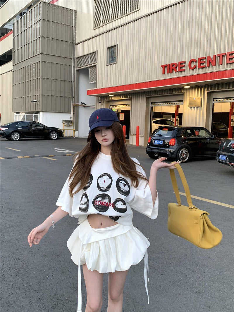 Jun. 初階芭蕾花苞蓬蓬半身裙 美式印花寬鬆上衣