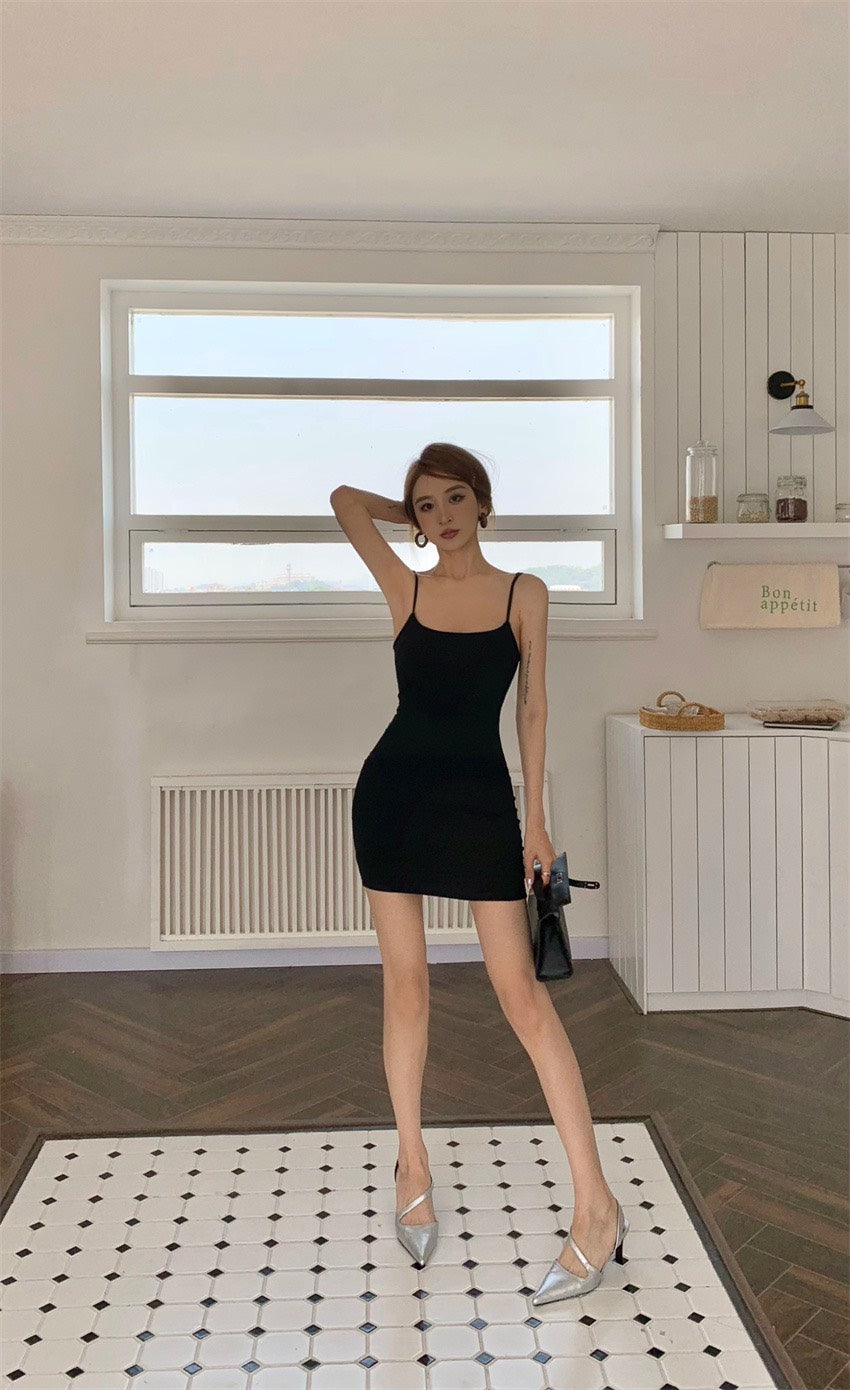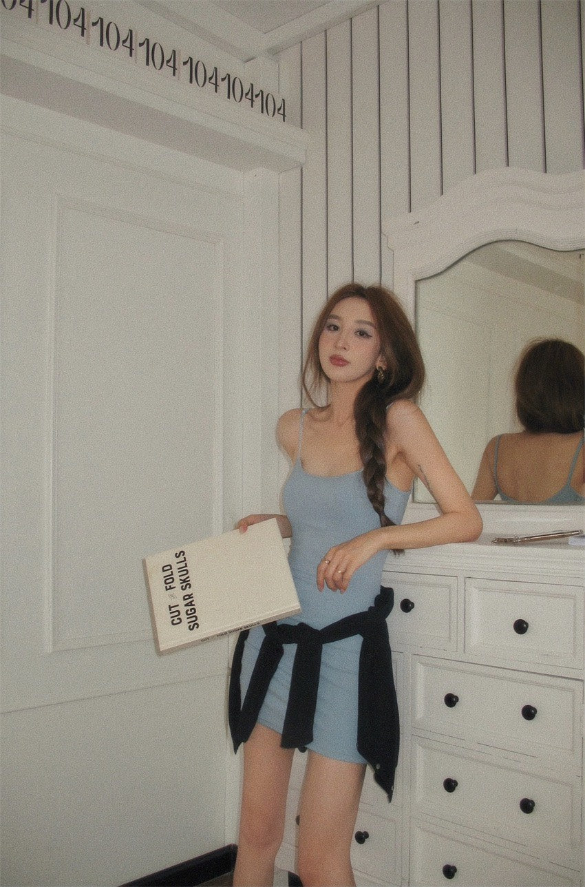 Jun. 夏款可調肩卡戴珊超模裙 藍/黑