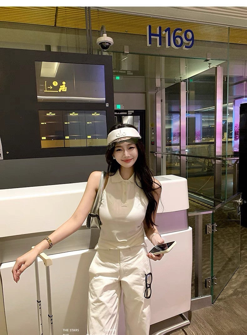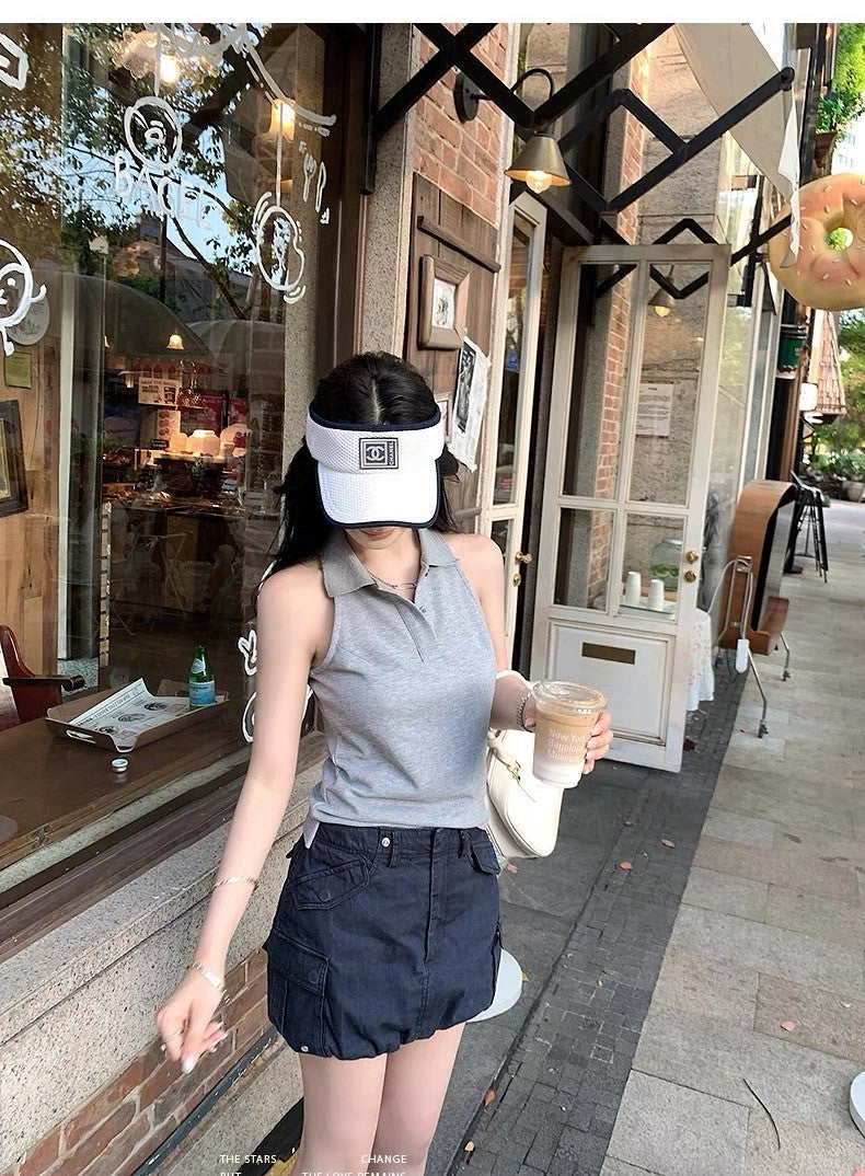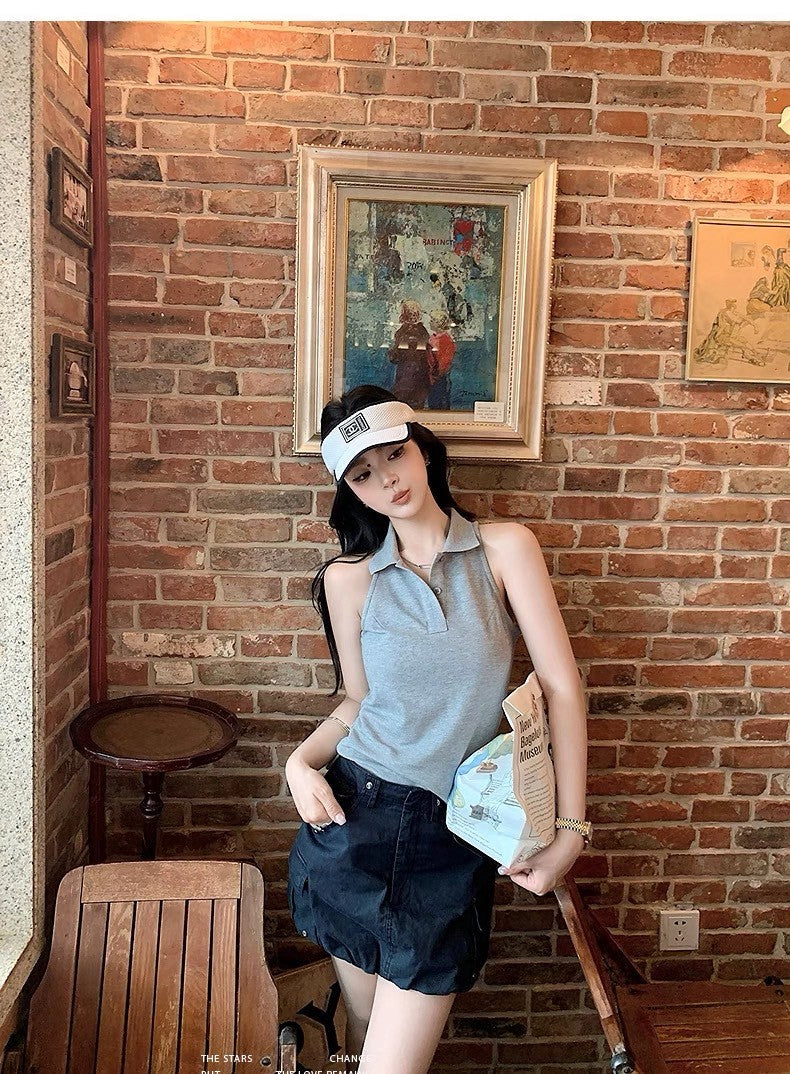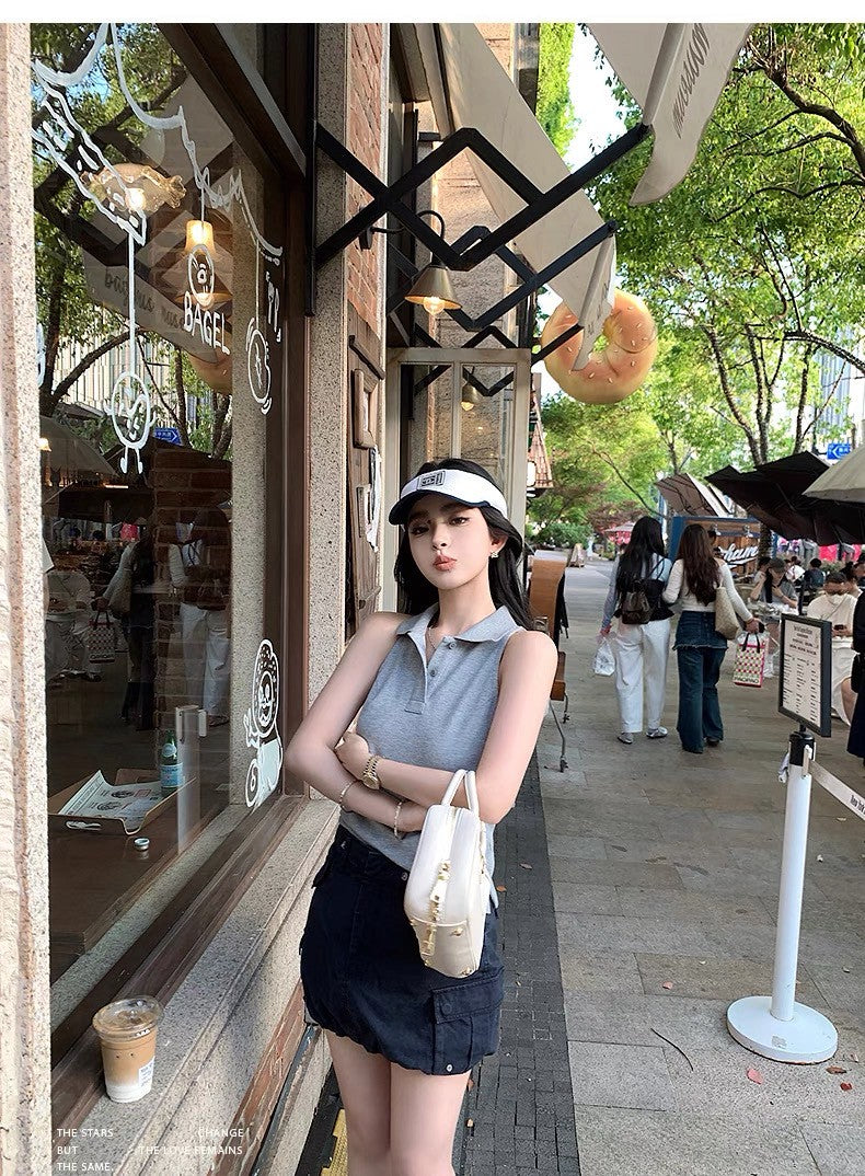 Jun. 大膽穿韓系學院polo領好版型無袖鈕扣背心 白/灰