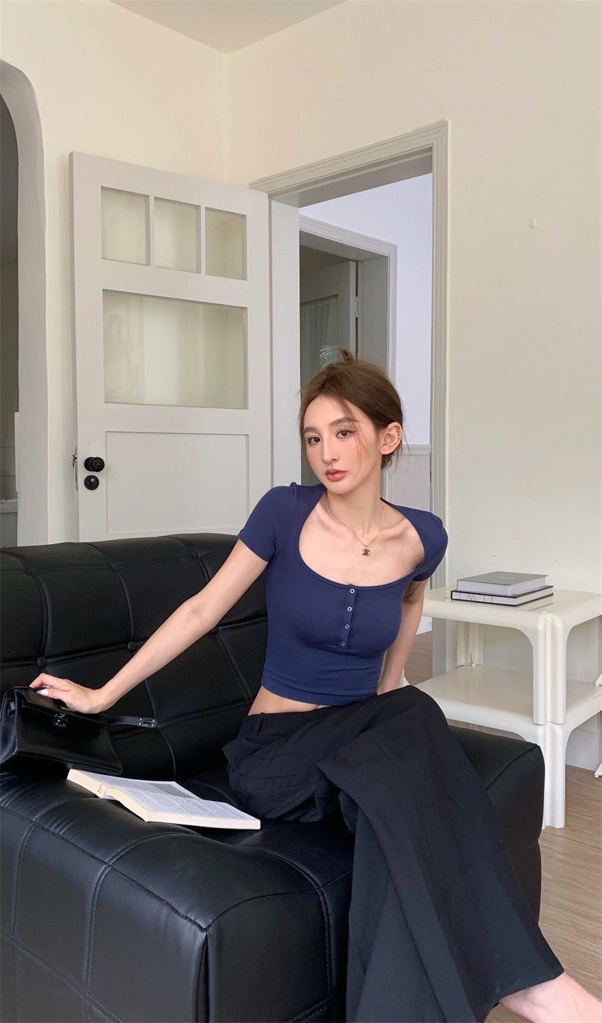 Jun. 歐美復古顯瘦鈕扣領短款上衣 3色