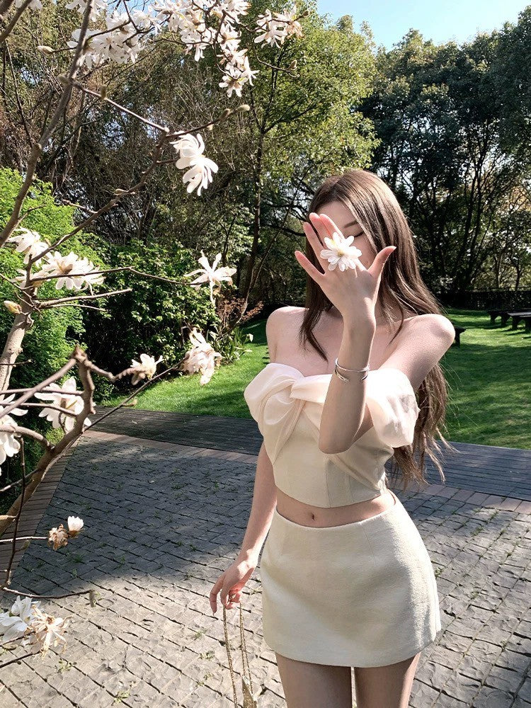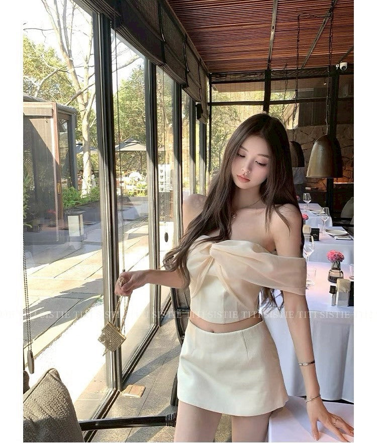 Jun. 氣質夏日養成 一字抹胸半身褲套裝