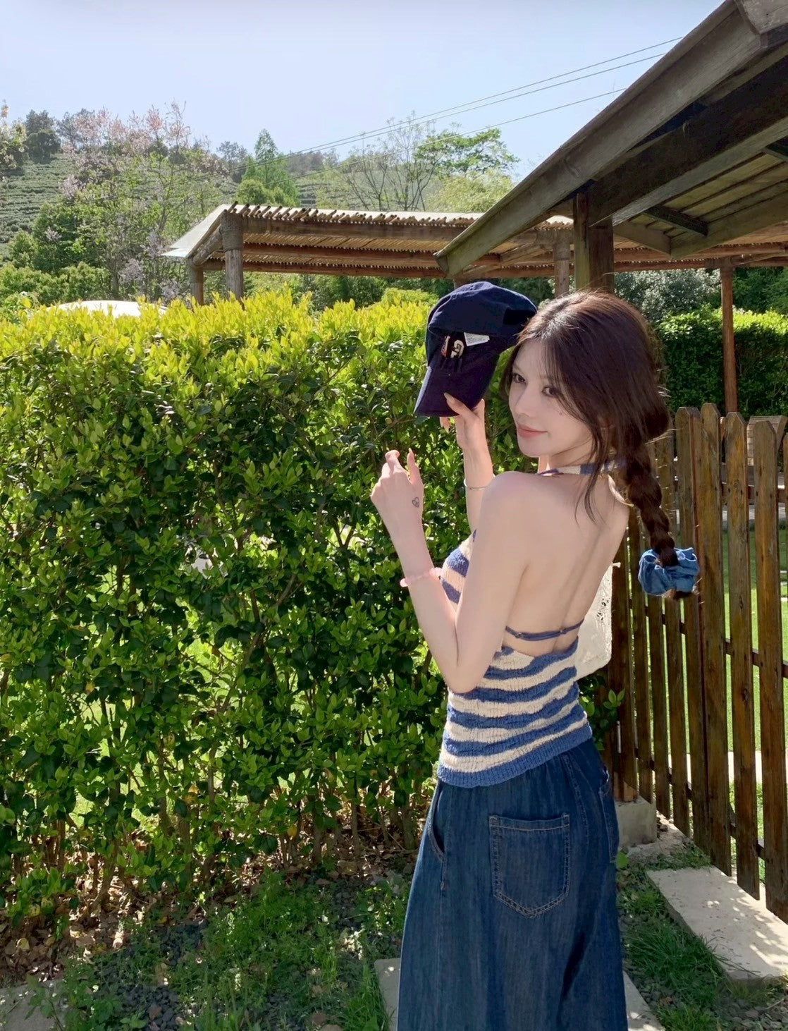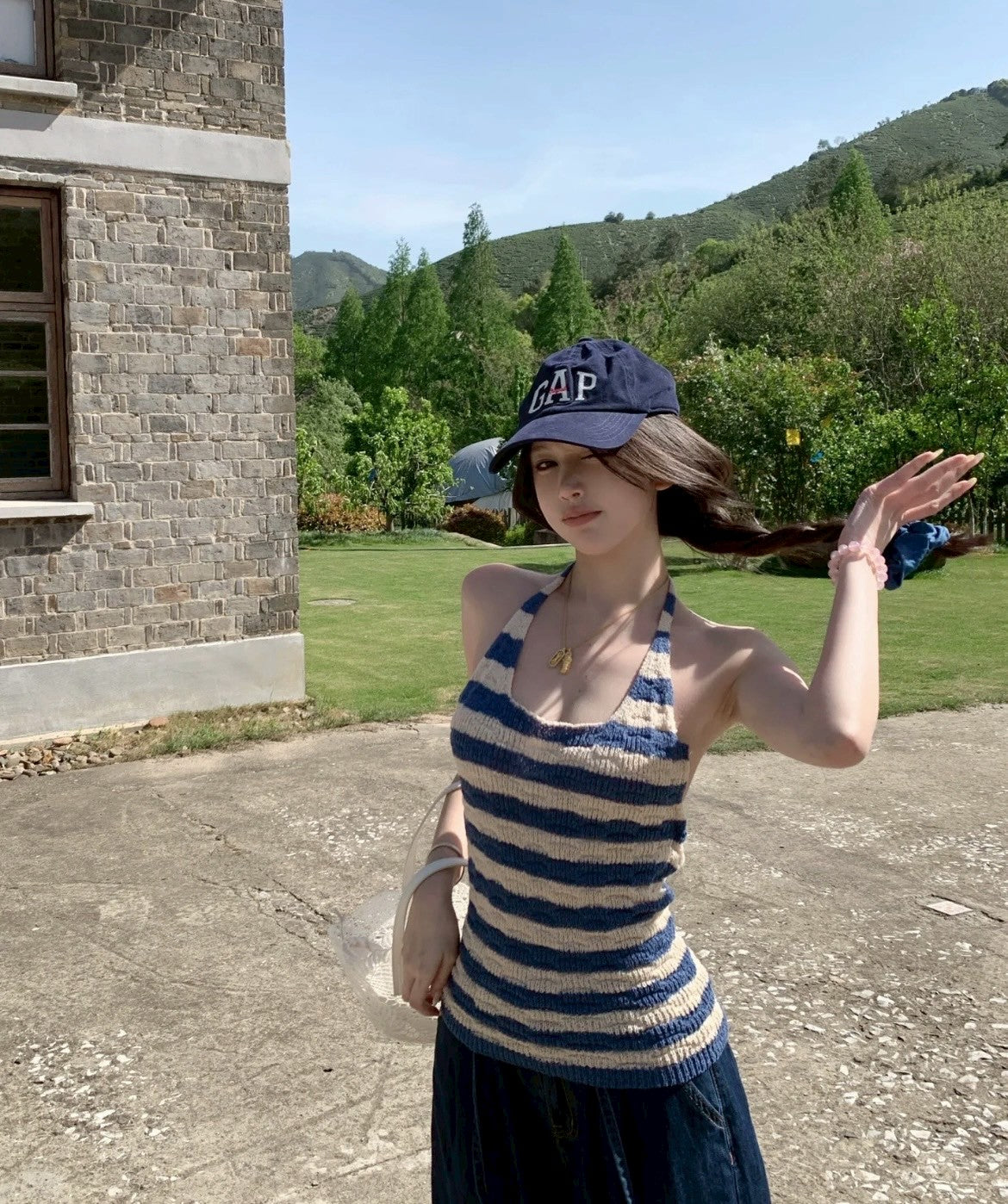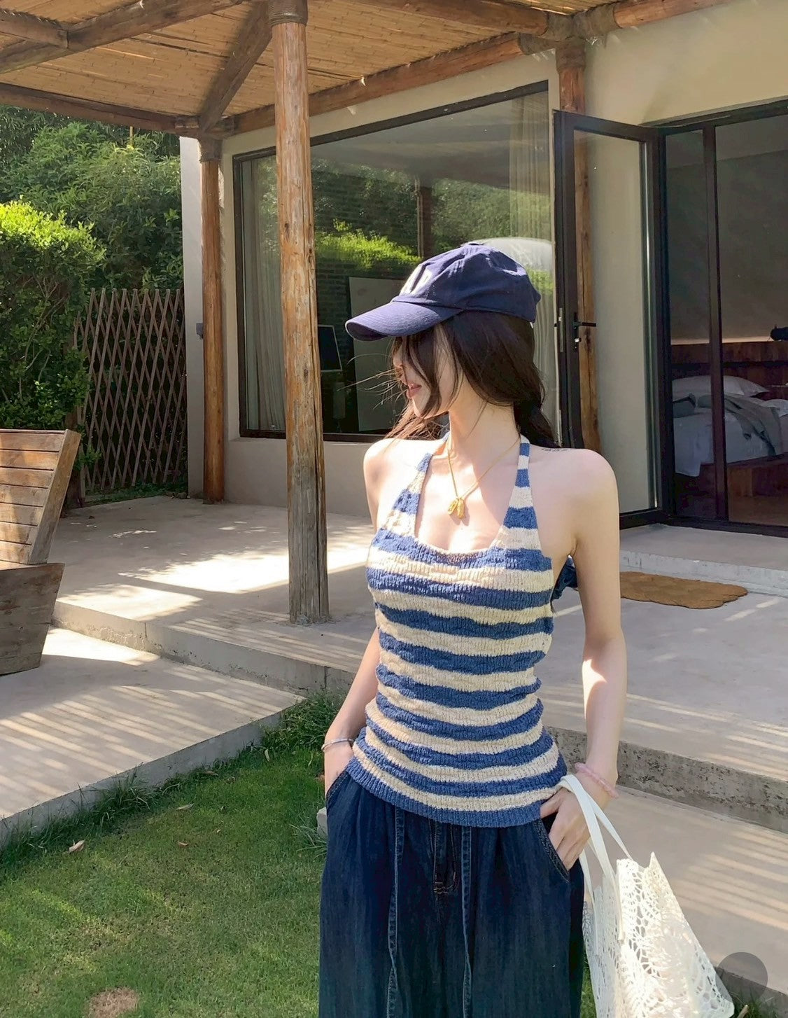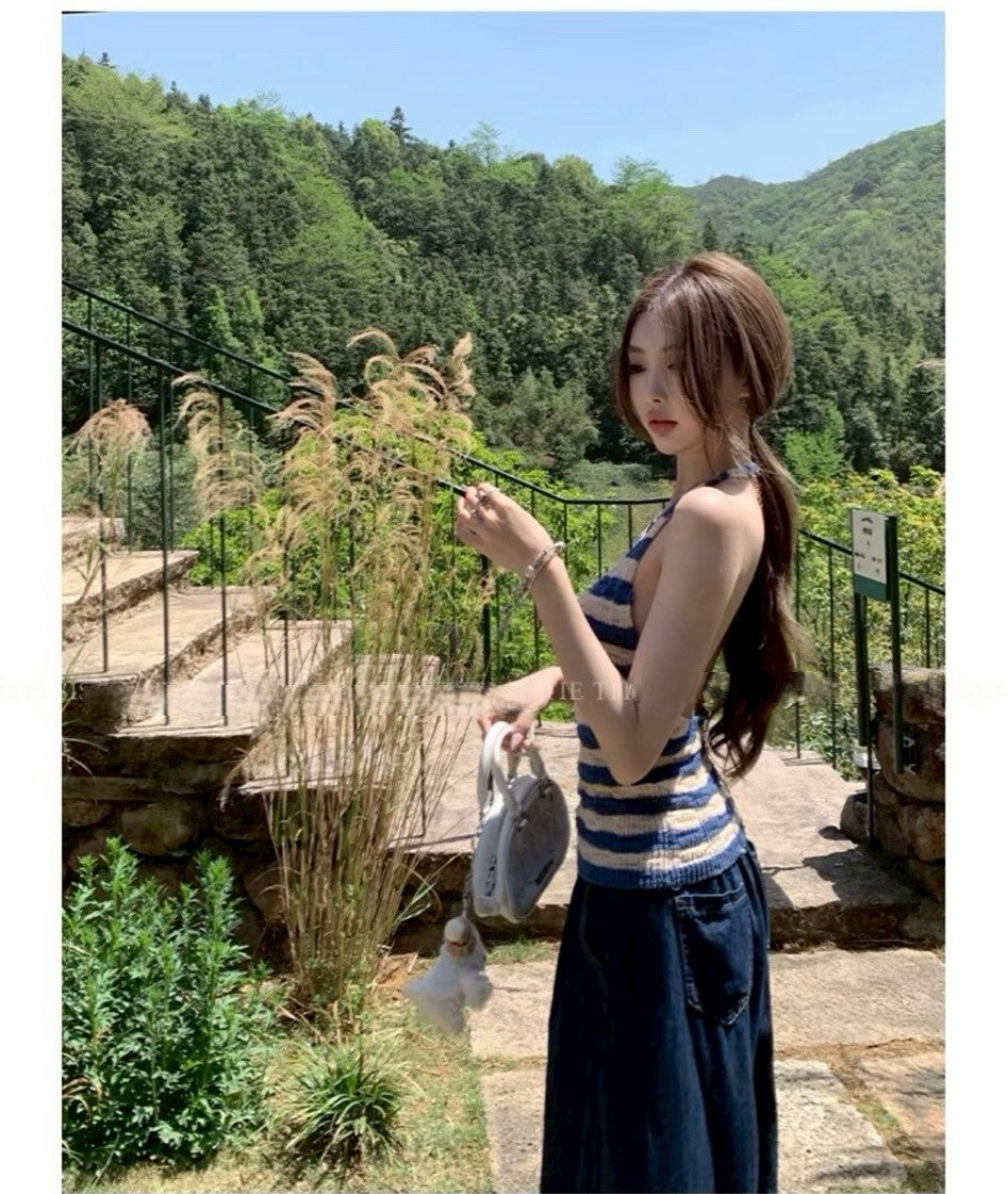 Jun. 海鹽涼風 冰沙紗線露背拼色針織背心