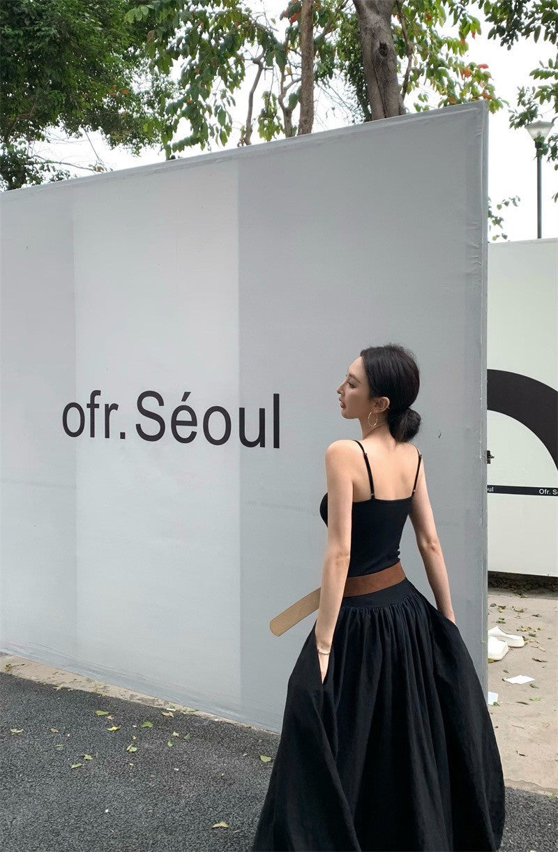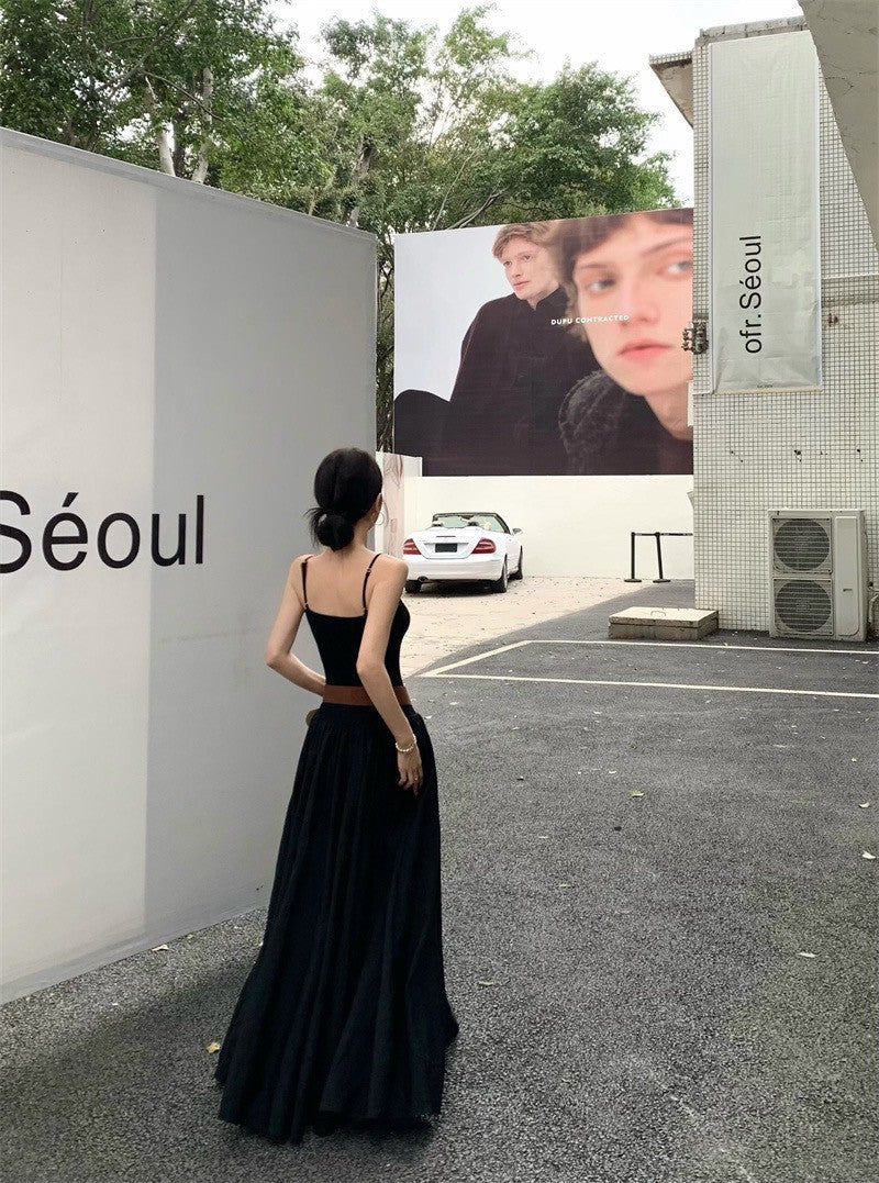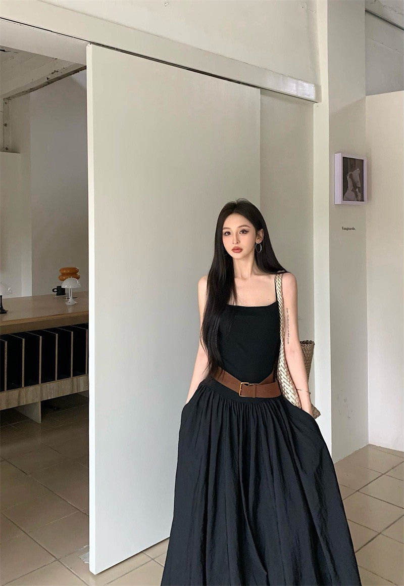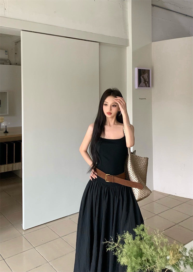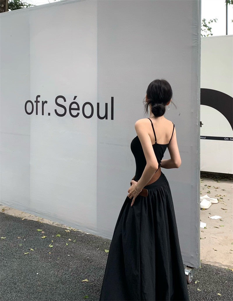 Jun. 溫柔通勤可調肩拼接連身裙 黑色