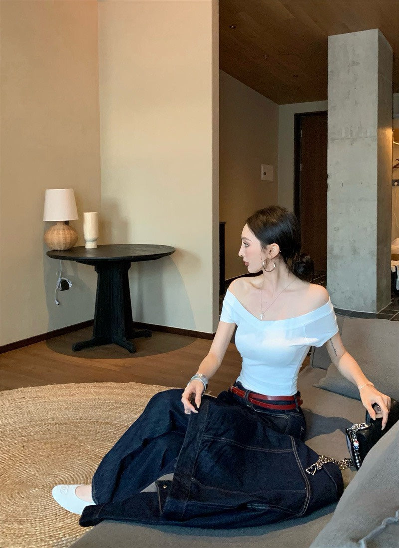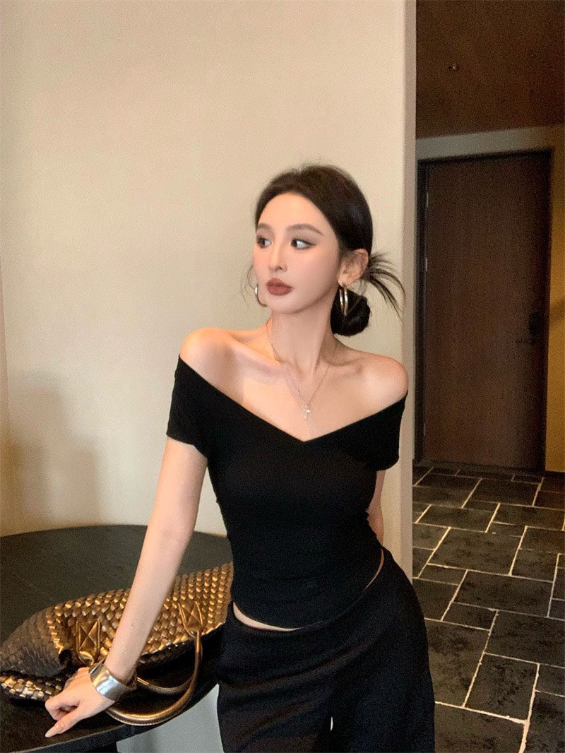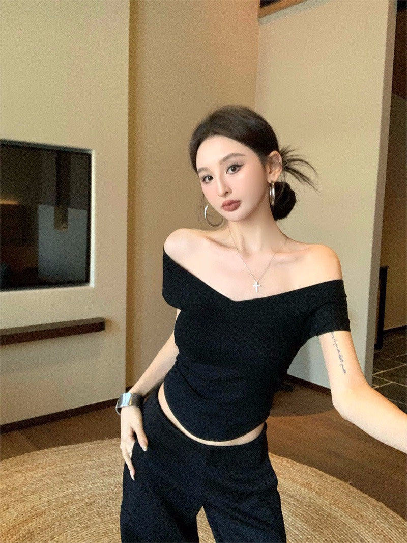 Jun. 簡約大氣 修身2穿領彈力上衣 白/黑