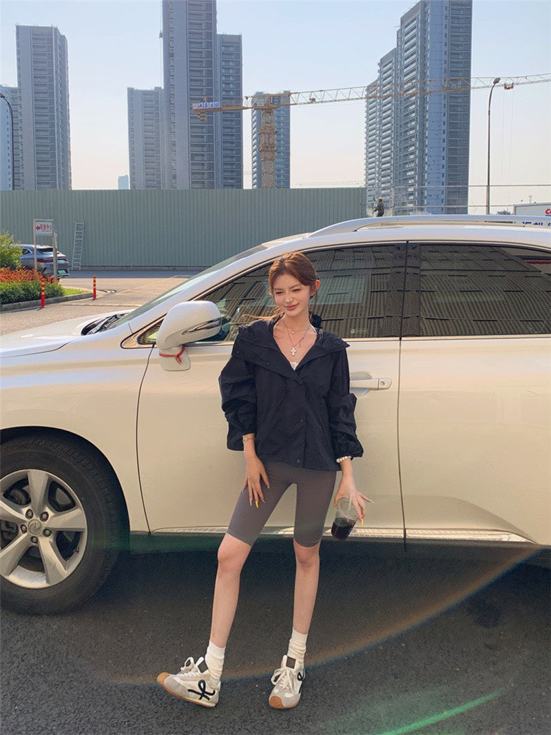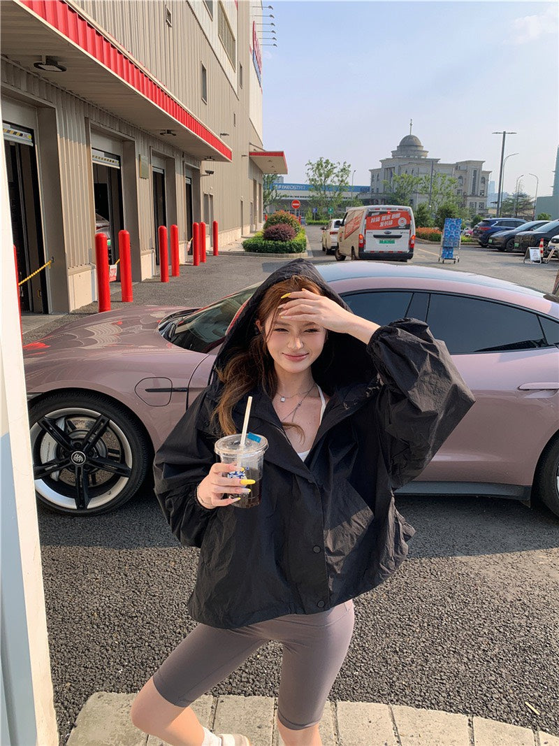 Jun. 美式寬鬆輕薄防曬連帽工裝外套 黑色