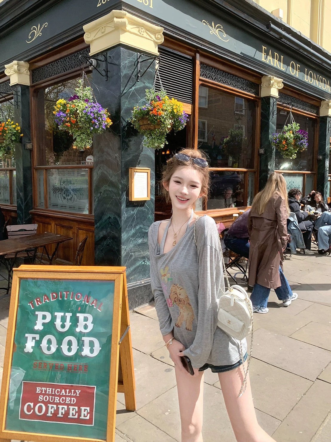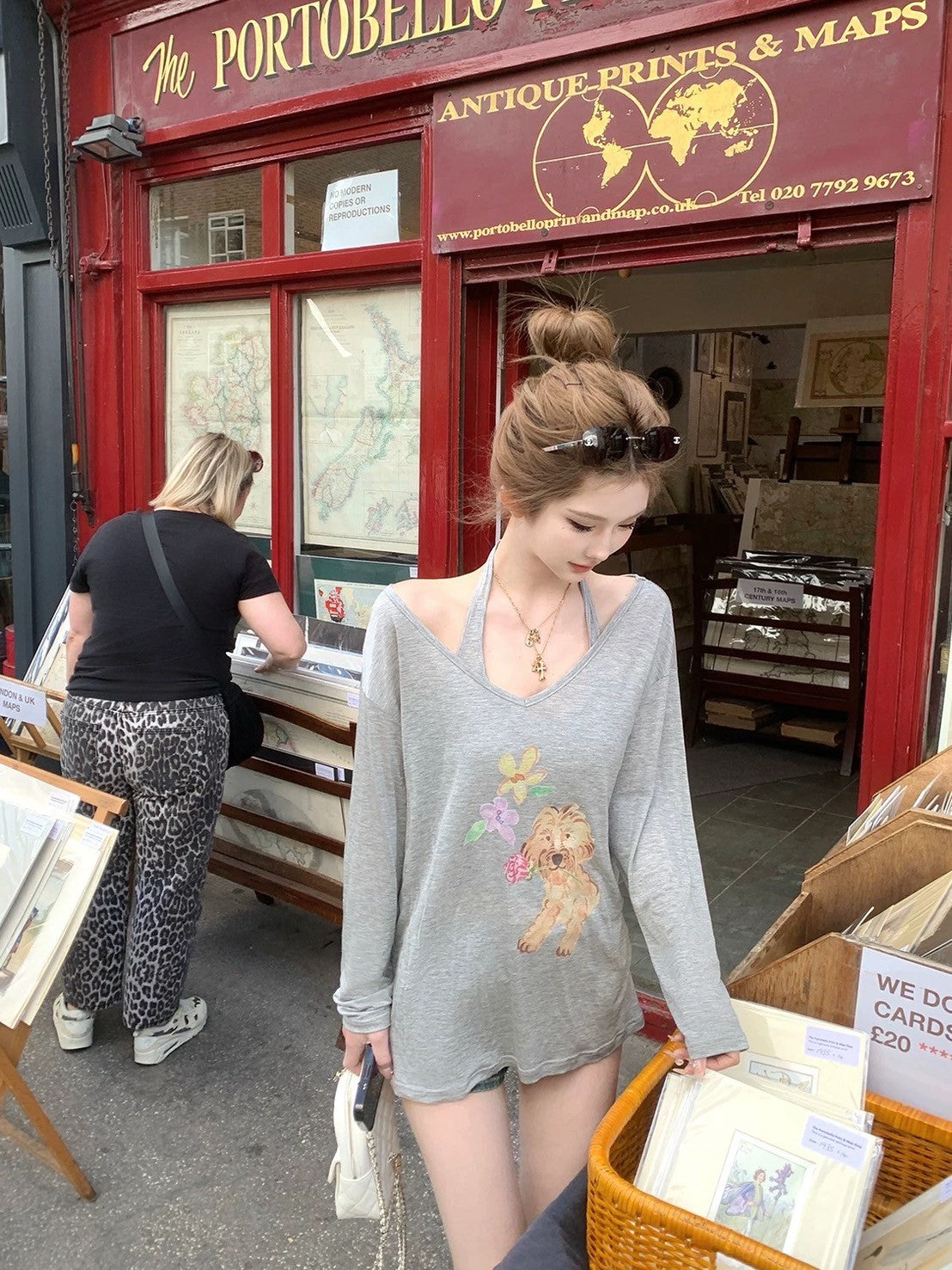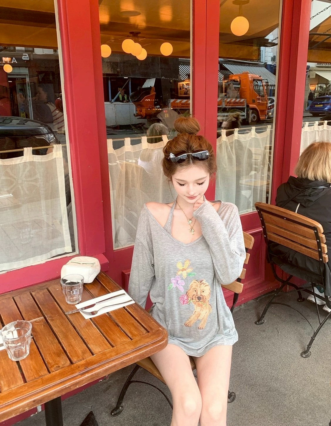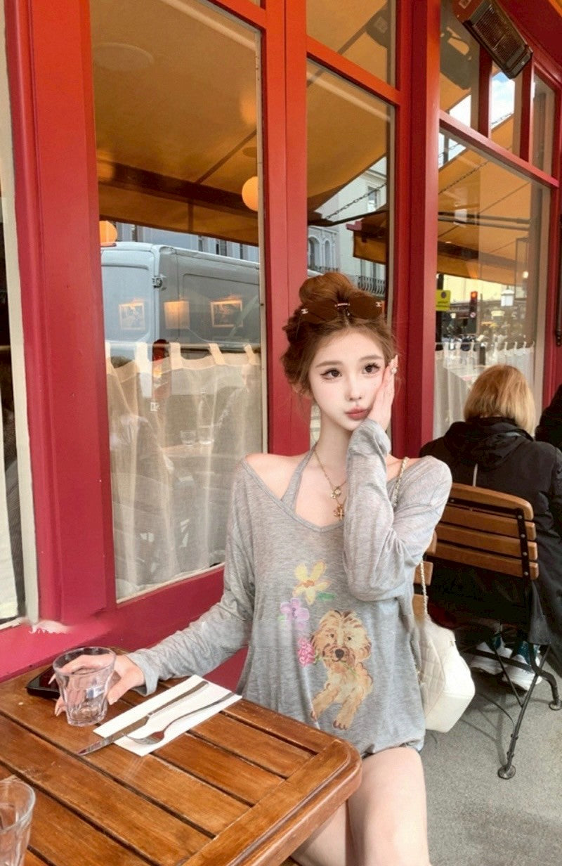 Jun. 萌狗勾 天絲小狗印花兩件式防曬上衣 灰色